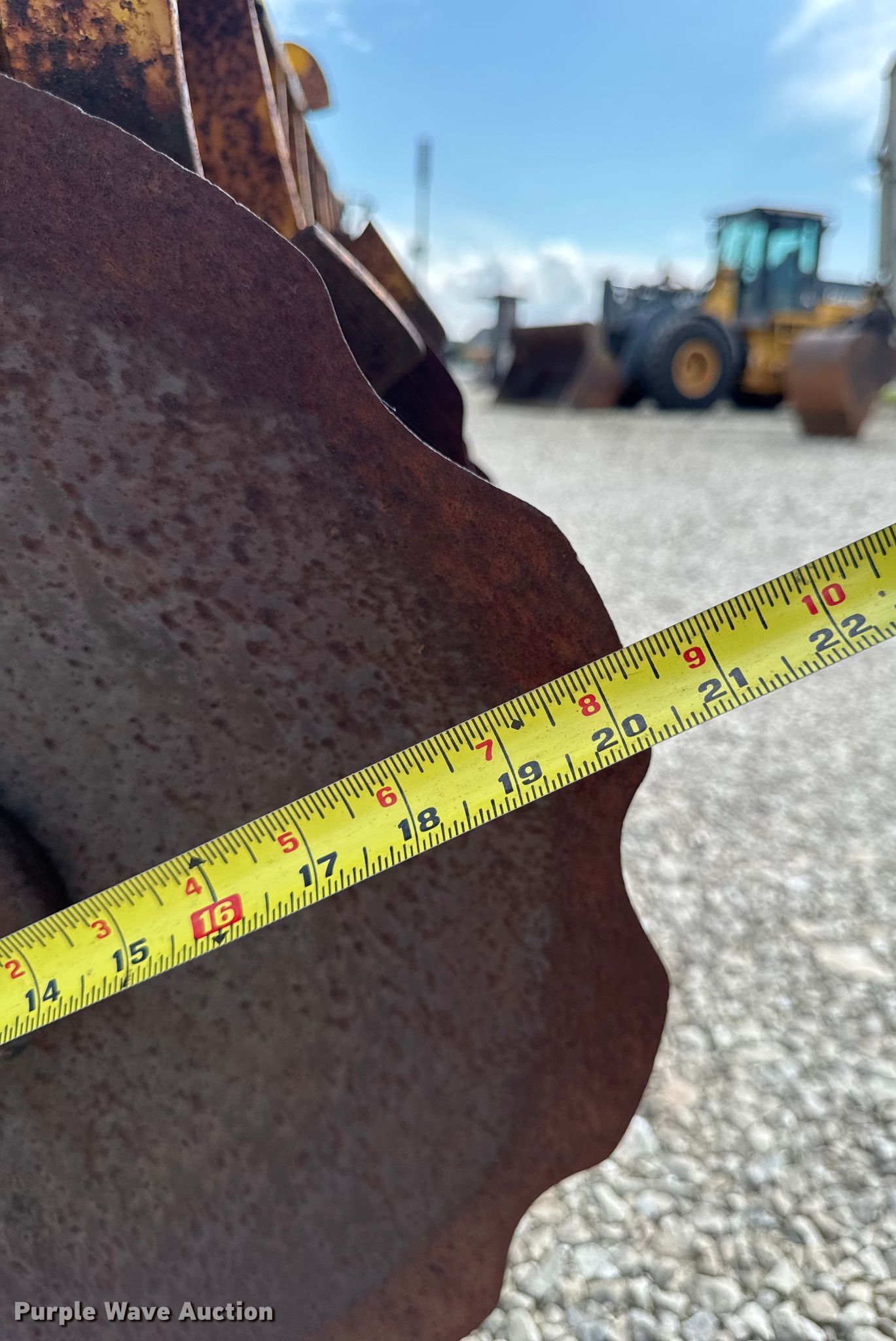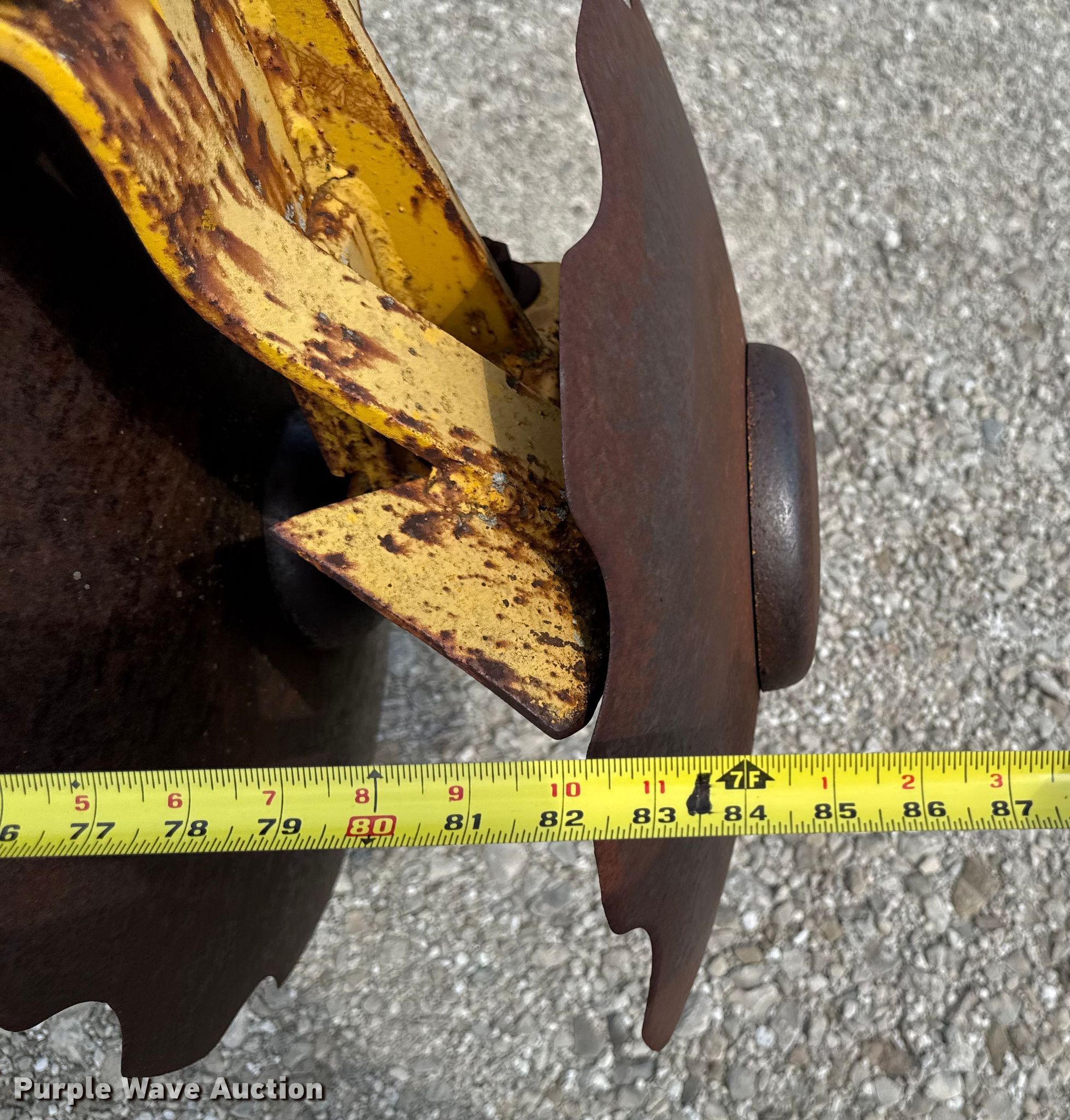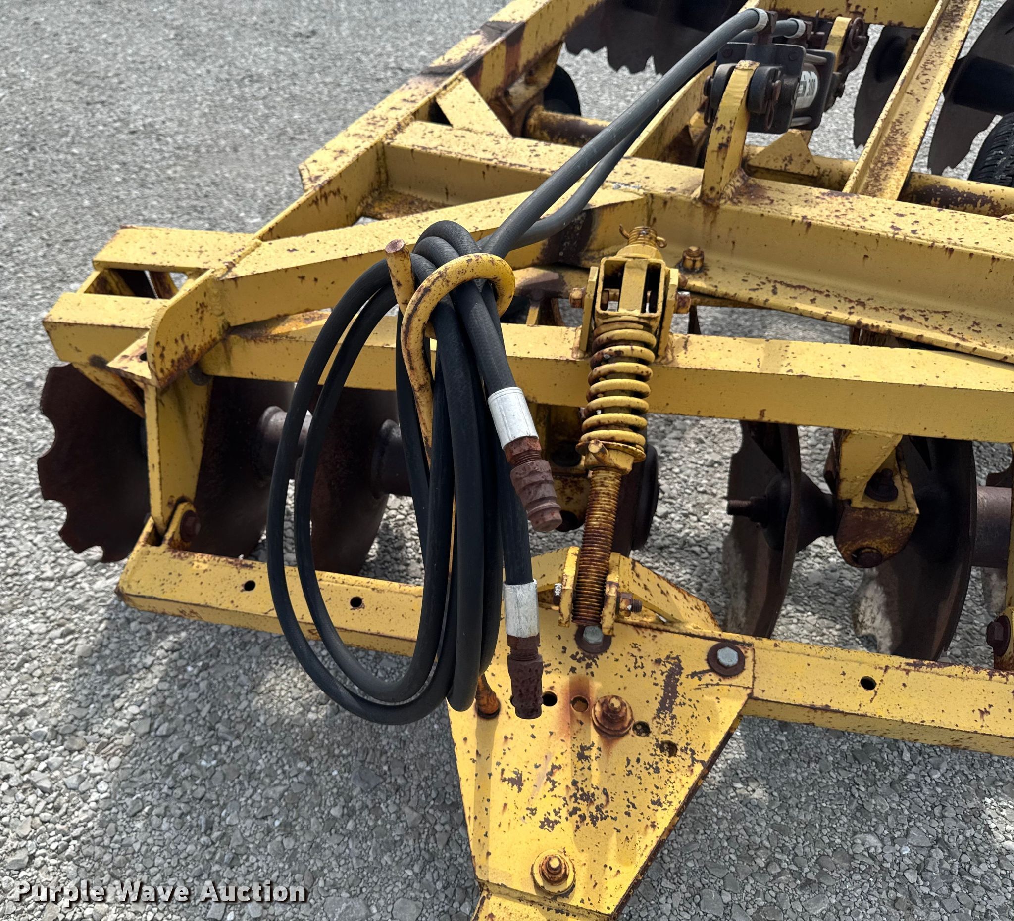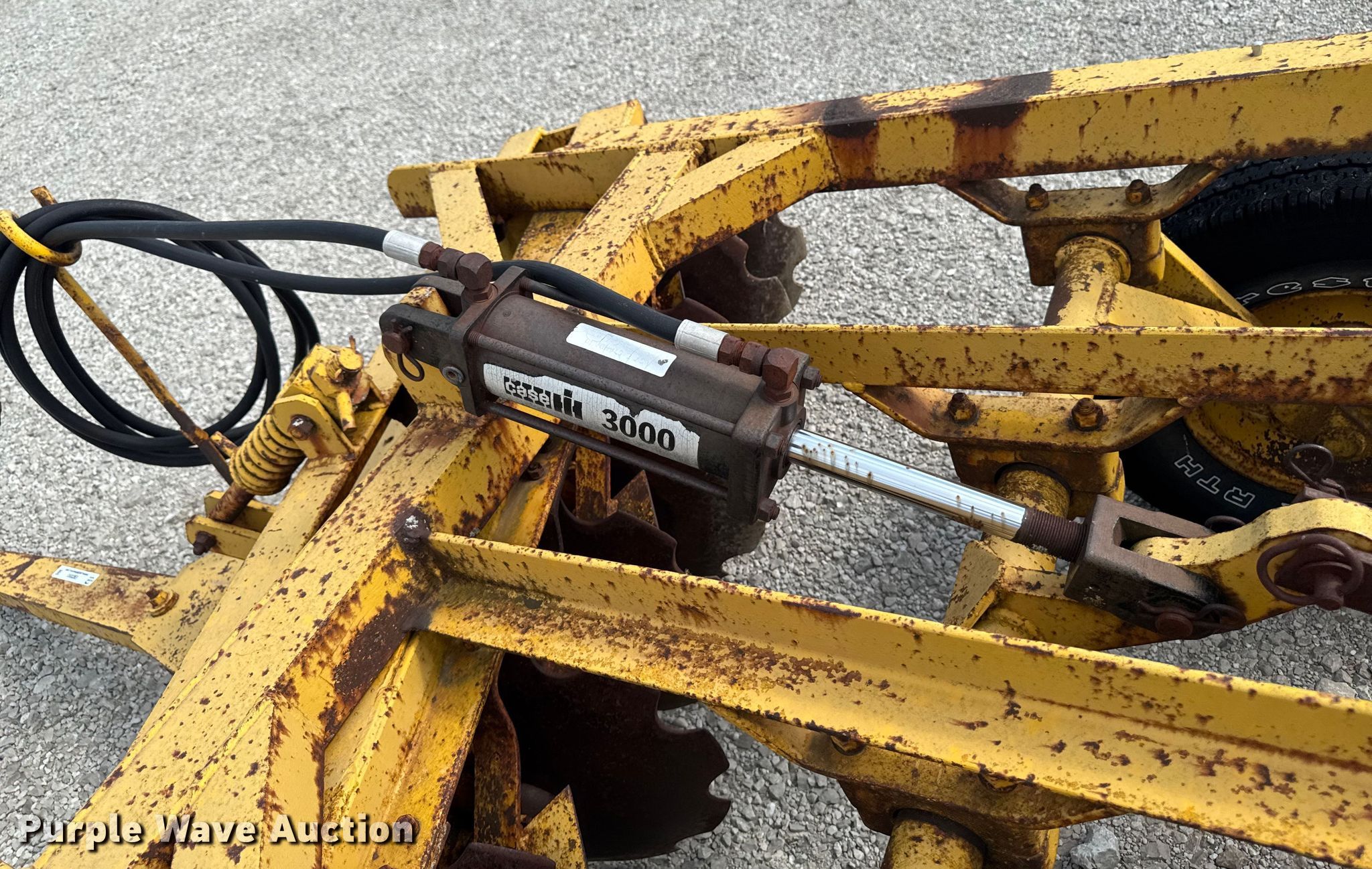 AMCO 2022-BG off-set disk. Overall width: 7', Serial: 807. Features Front blades Diameter: 22", Spacing: 10", Rear blades Diameter: 20", Spacing: 10", Disk scrapers, Operation Hydraulic lift, Leveler: Manual. Tires Tire size: LR78-15LT. Pella Concrete Contractors Inc. Pella, IA 50219