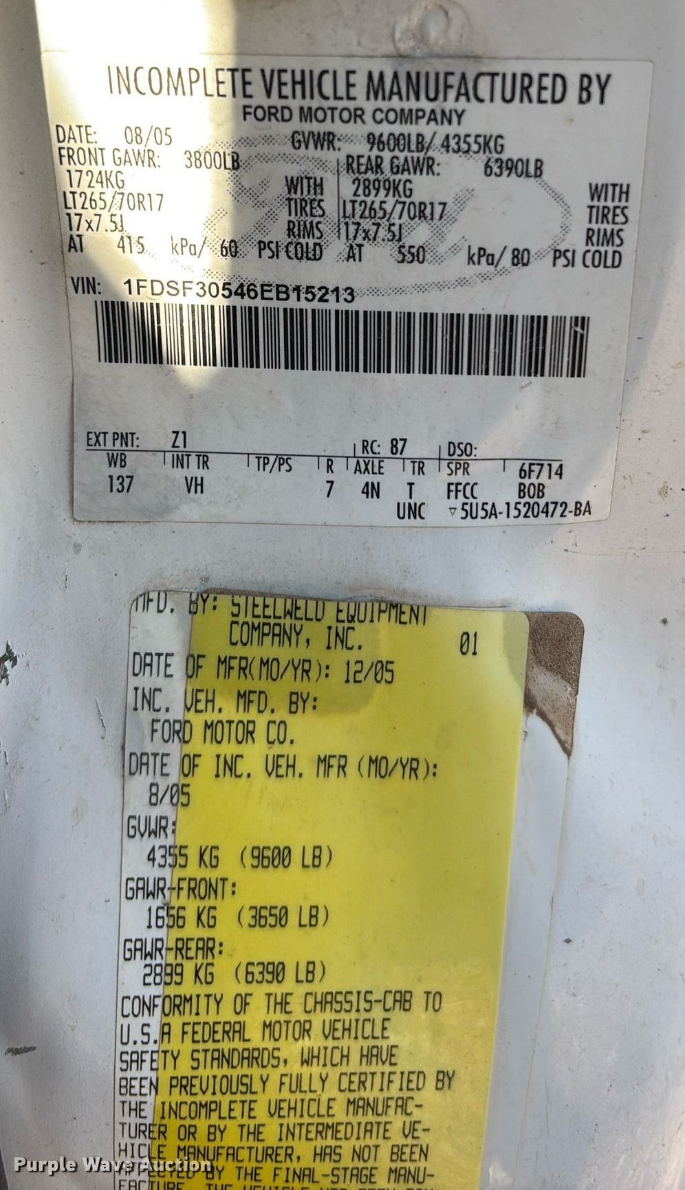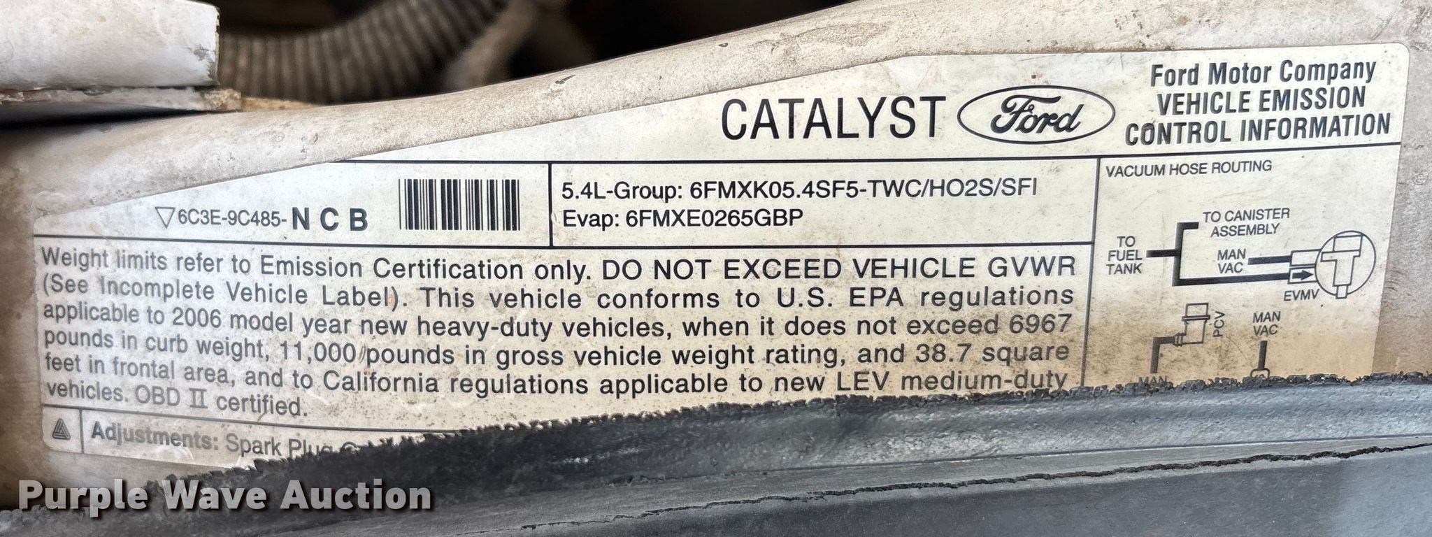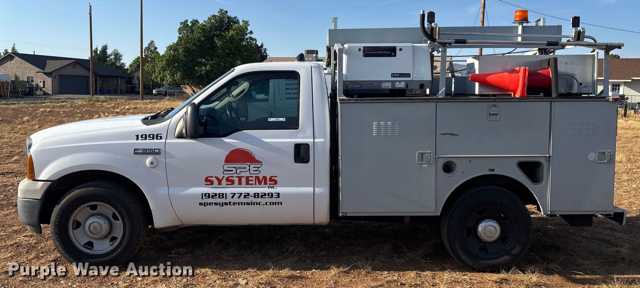 2006 Ford F350 Super Duty XL utility bed pickup truck. Miles: 150,031 on odometer, Hours: 5,704 on meter, VIN: 1FDSF30546EB15213. Engine Displacement: 5.4L V8 SOHC, Cylinders: 8, Fuel type: Gas. Transmission Automatic. Chassis Axles: Single, Suspension: Spring, Brakes: Hydraulic, GVWR: 9,600 lbs, Wheelbase: 137". Interior AC, Heat, Auxiliary controls. Features Bed Utility bed, Steelweld, Length: 8', Width: 79", Generator Onan CMM 7000 EFI, Hours: 898 on meter, Fuel type: Gas, Air compressor SteelWeld.. Tires Size: LT265/70R17. Notes Hitch not included, Dash warning indicator: Airbag, Fuel pump issues, needs replaced. Arizona title. Title distribution may be delayed up to 14 days from verification of funds. SPE Systems. Prescott Valley, AZ 86314
