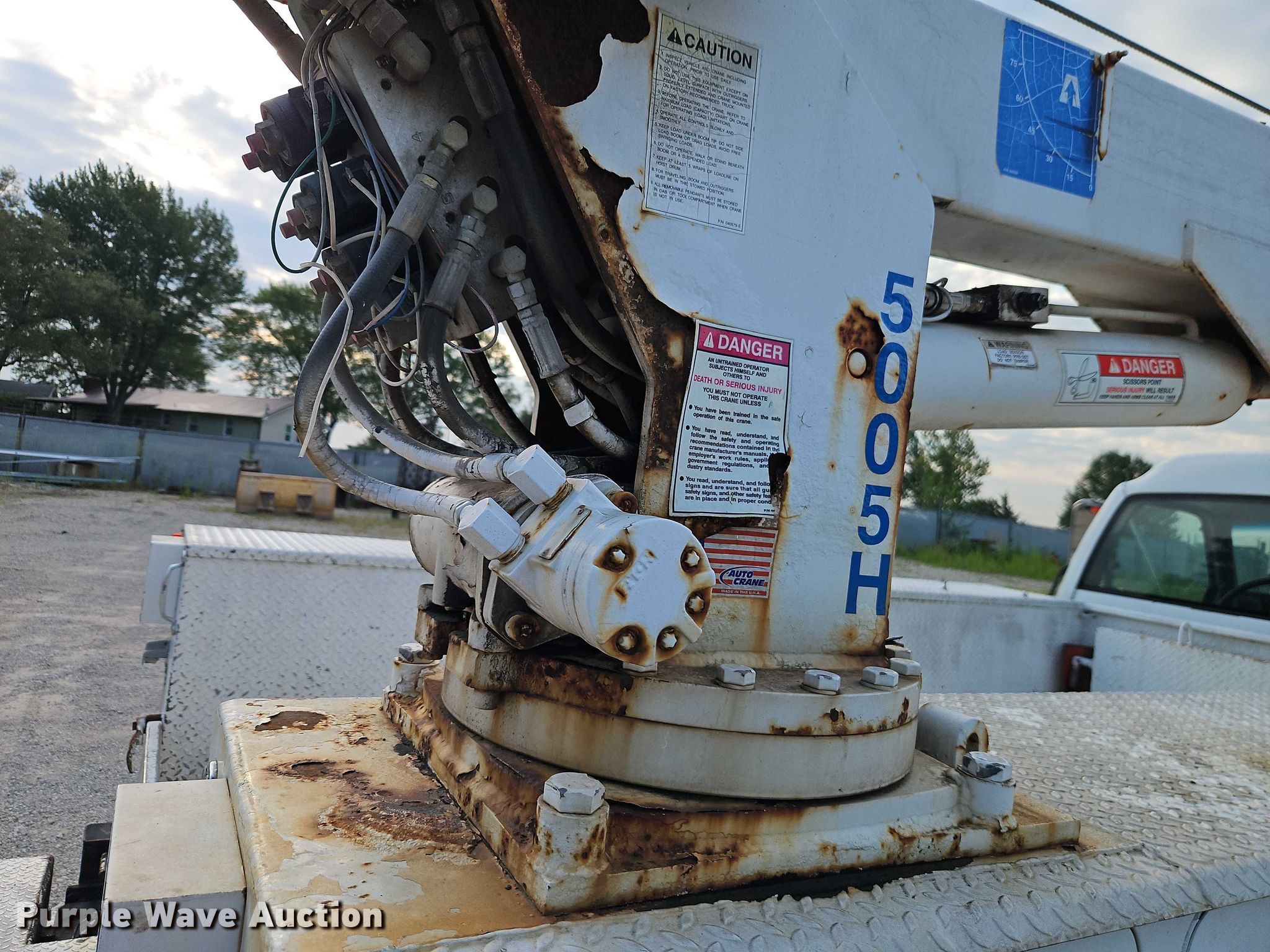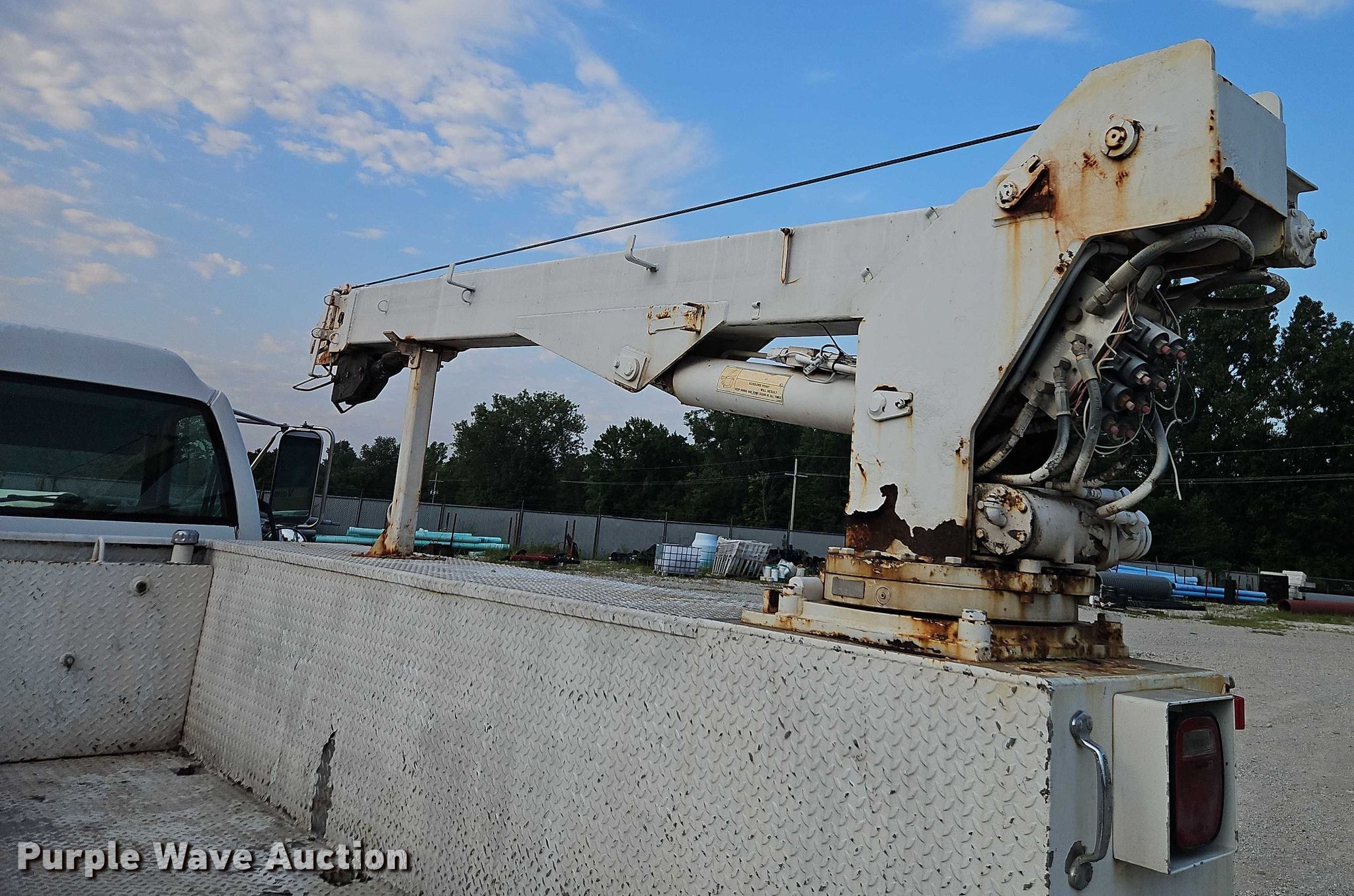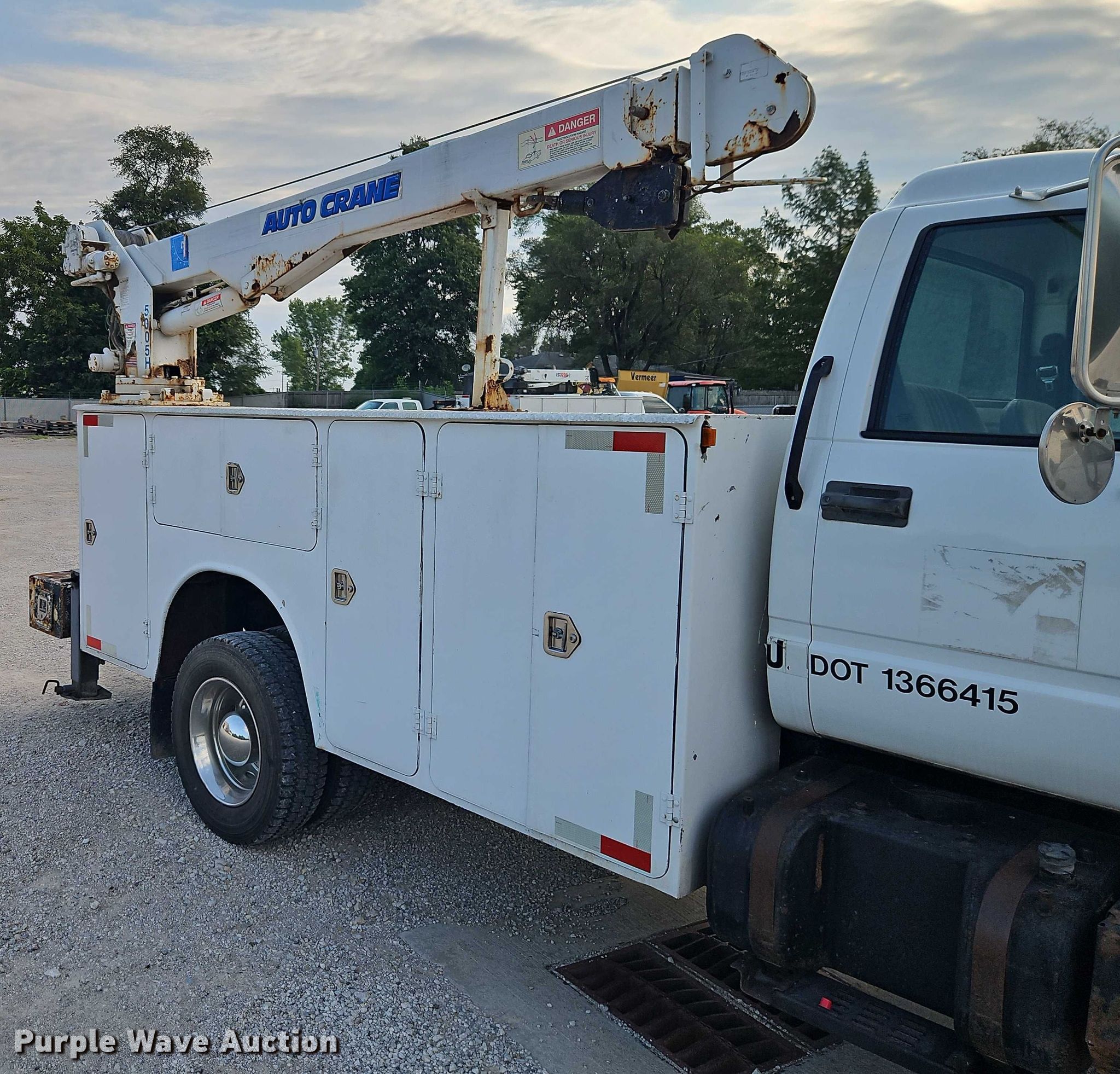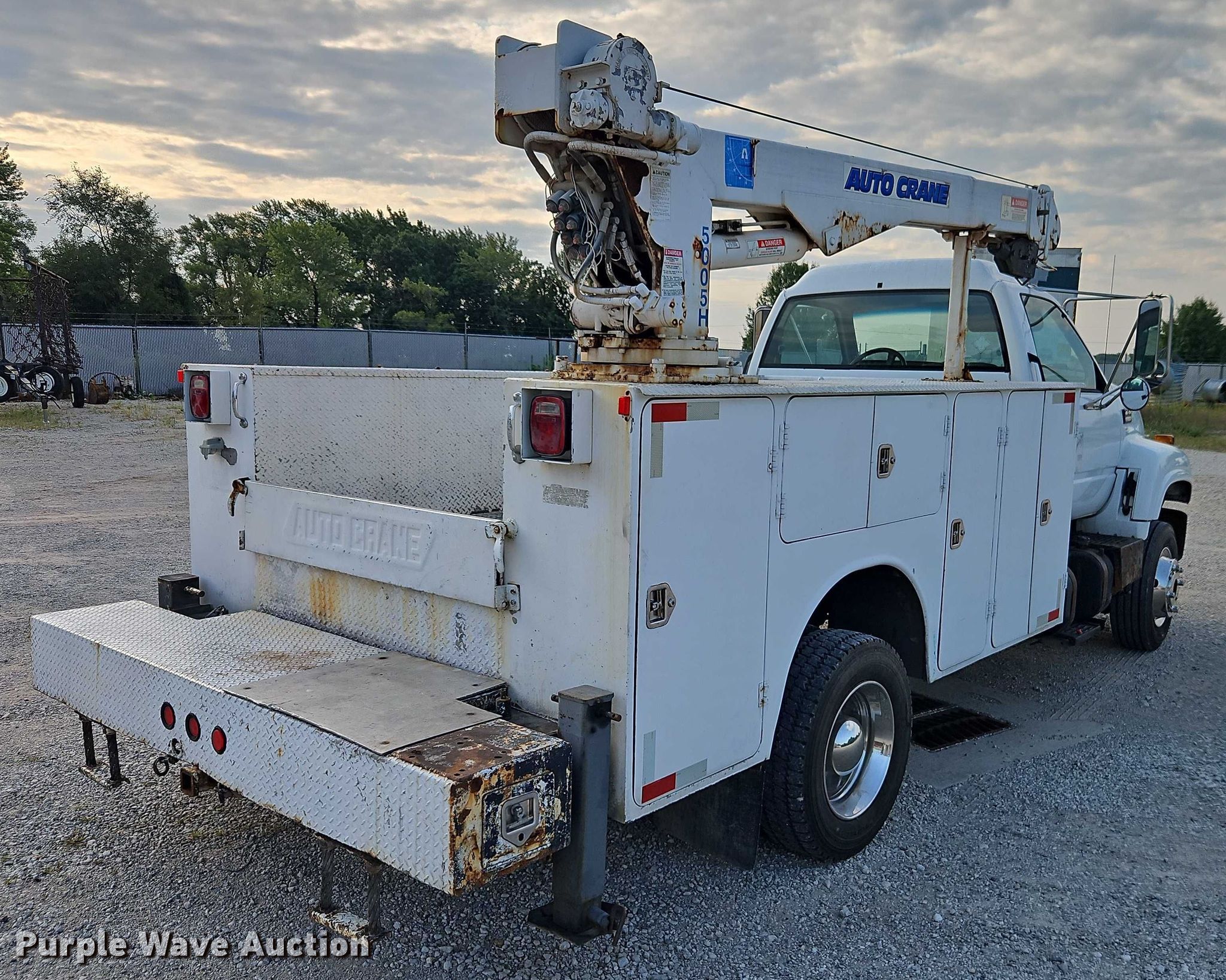 2001 GMC C6500 utility / service truck. Miles: 293,230 on odometer, Hours: 12,702 on meter, VIN: 1GDJ6H1C71J510167. Engine Caterpillar 3126, Displacement: 7.2L, Cylinders: 6, Fuel type: Diesel, HP: 456. Transmission Manual, Speed: 6. Chassis Axles: Single, Suspension: Spring, Brakes: Hydraulic, Wet kit, GVWR: 25,950 lbs. Interior AC, Heat, Cruise control. Features Bed Utility bed, Auto Crane, Length: 13', Width: 96", Torch bottle rack, Crane Auto Crane 5005H, Maximum boom length: 22' Maximum lift capacity: 5,000 lbs.. Tires Size: 245/70R19.5. Missouri title. Title distribution may be delayed up to 14 days from verification of funds. Central Plumbing. Cleveland, MO 64734