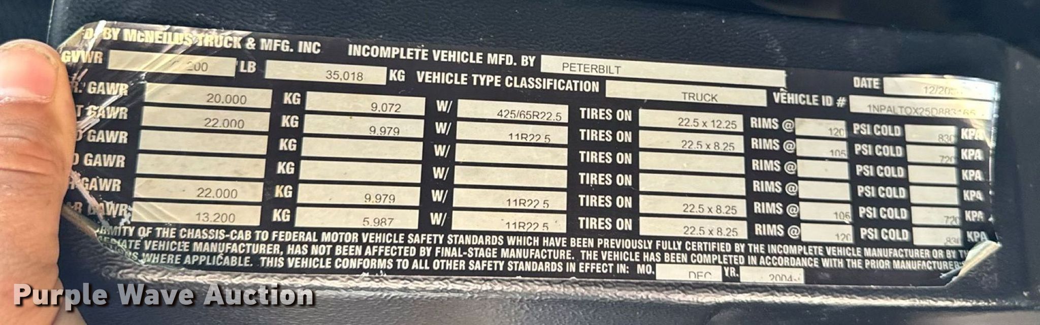 Purple Wave is selling a used Construction Dump Truck in Iowa. This item is a 2005 Peterbilt 357 dump truck with the following: Miles: 231,819 on odometer, Hours: 28,896 on meter, VIN: 1NPALT0X25D883165