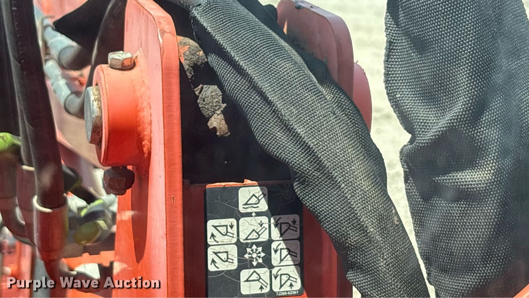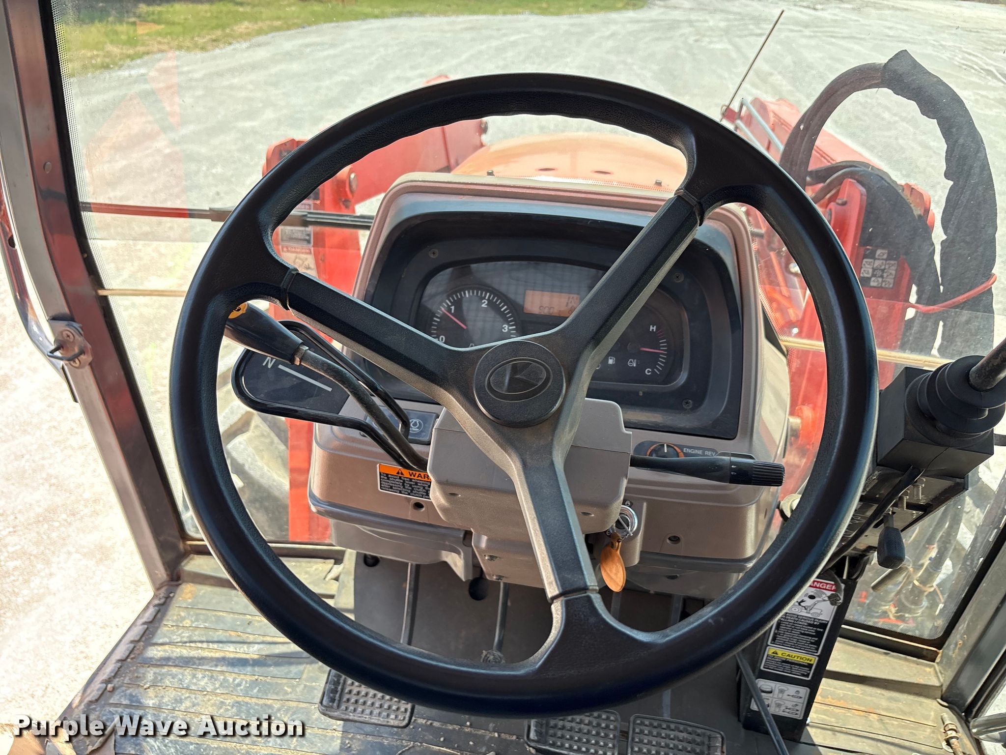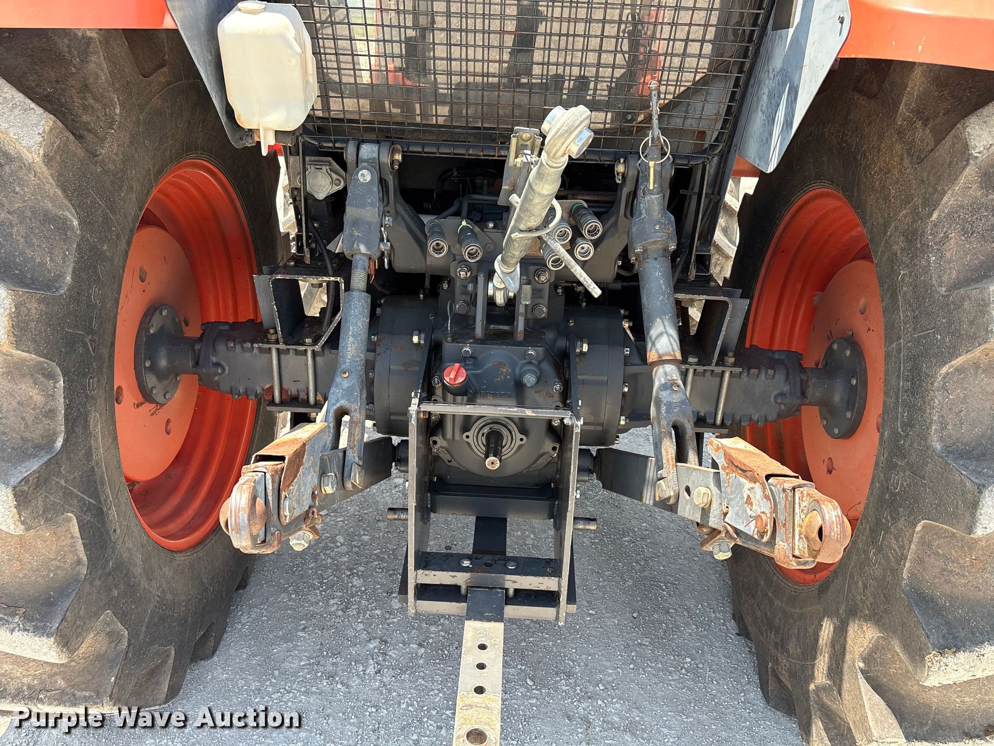 Kubota M100X MFWD tractor. Hours: 3,002 on meter, Serial: M100X50026. Engine Kubota, Cylinders: 5, Fuel type: Diesel. Transmission Powershift, 16F-16R, Left-hand reverser, Differential lock. Operators station AC, Heat. Features PTO: 540, Three point Top link, Seven pin outlet, ISOBUS outlet, Front: 2, Rear: 6, Loader ready, Loader Kubota, Quick attach, Self-leveling, Controls: Joystick. Tires Front: 340/85R24, Rear: 18.4-34-LS-2. Notes Non-operational PTO, Non-operational three point hitch, Mirrors broken, Warning indicator: Fault Code, Jump start required during on-site data collection. Larrett Energy. Venus, TX 76084