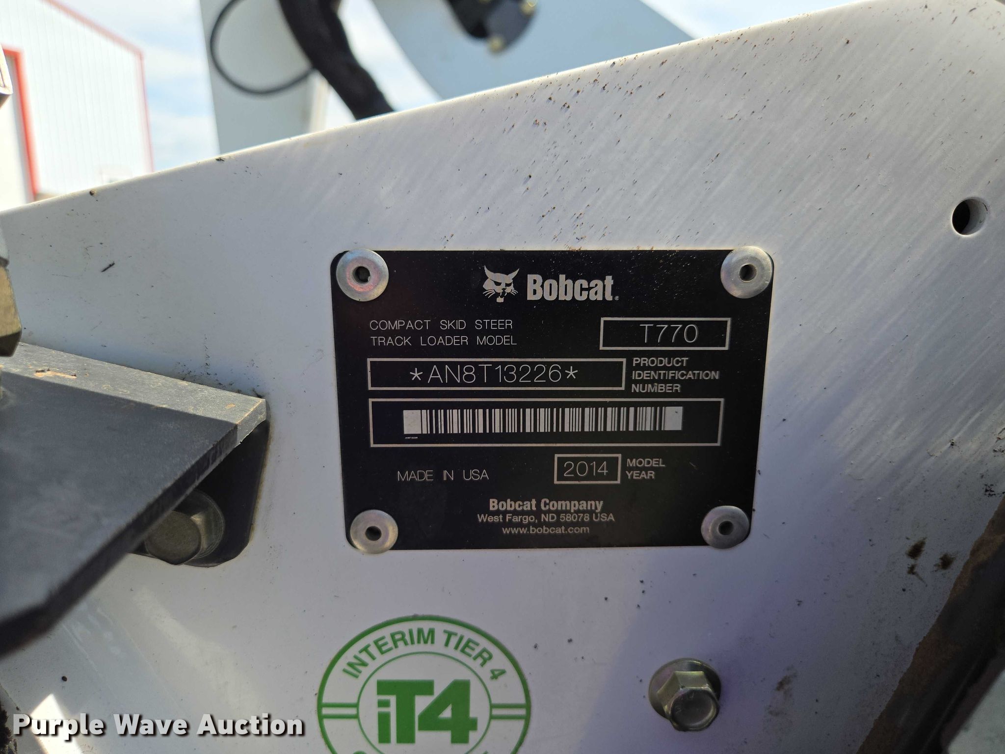 Purple Wave is selling a used Tracked Skid Steer Loader in Missouri. This item is a 2014 Bobcat T770 tracked skid steer loader with the following: Hours: 3,056 on meter, Serial: AN8T13226