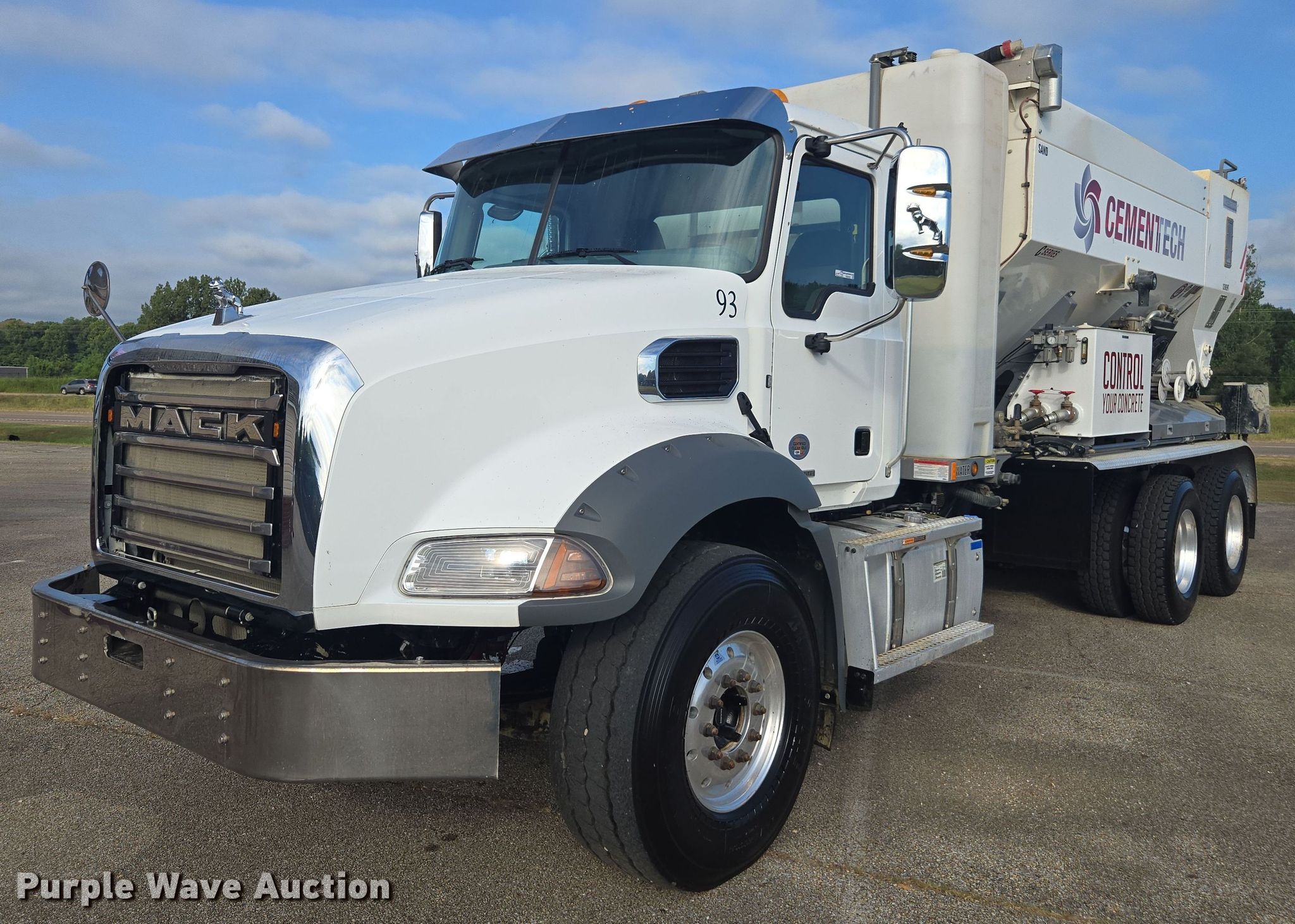 2024 Mack Granite volumetric ready mix truck. Miles: 11,630 on odometer, Hours: 1,221 on meter, VIN: 1M2GR2GC5RM042715. Engine Mack MP7-425M, Serial: 650821, Displacement: 10.8L, Cylinders: 6, Fuel type: Diesel. Transmission Allison, Automatic. Chassis Axles: Tandem, Differential lock: Inter-axle, Suspension: Spring, Brakes: Air, PTO, GVWR: 66,000 lbs FAWR: 20,000 lbs, IAWR: 23,000 lbs, RAWR: 23,000 lbs. Interior AC, Heat, Heated mirrors, Power windows, Power locks, Cruise control. Features Mixer 2024 Cementech C60, Serial: C605495HC, Capacity: 10 cu.yd., Discharge: Rear, Bins: Aggregate, Sand, Powder, Water tank capacity: 450 gallons, Chute Extensions: 2, Chute type: Aluminum.. Tires Front: 425/65R22.5, Rear: 11R22.5. Mississippi title. Title distribution may be delayed up to 30 days from verification of funds. Patton Construction LLC. Ecru, MS 38841
