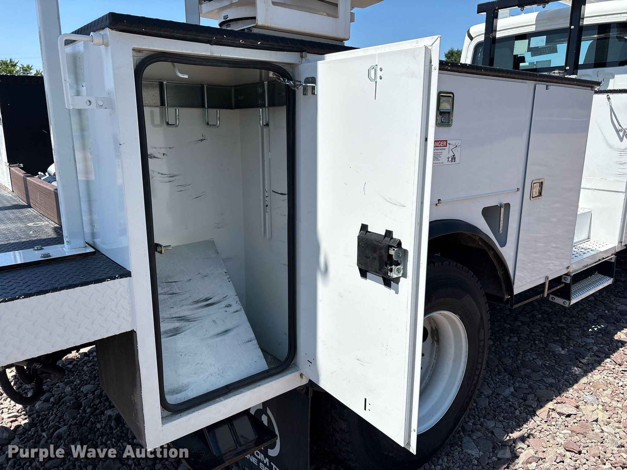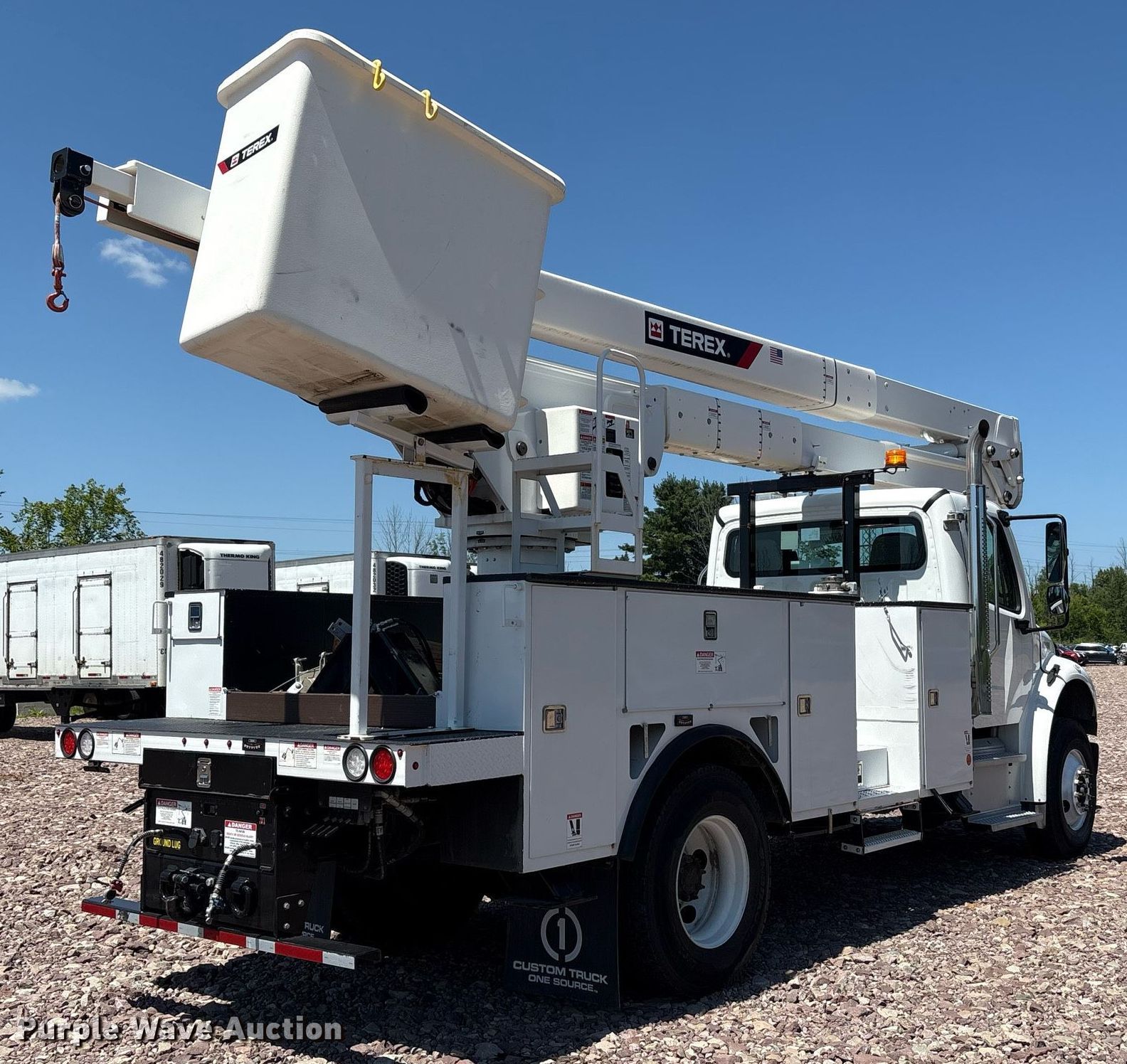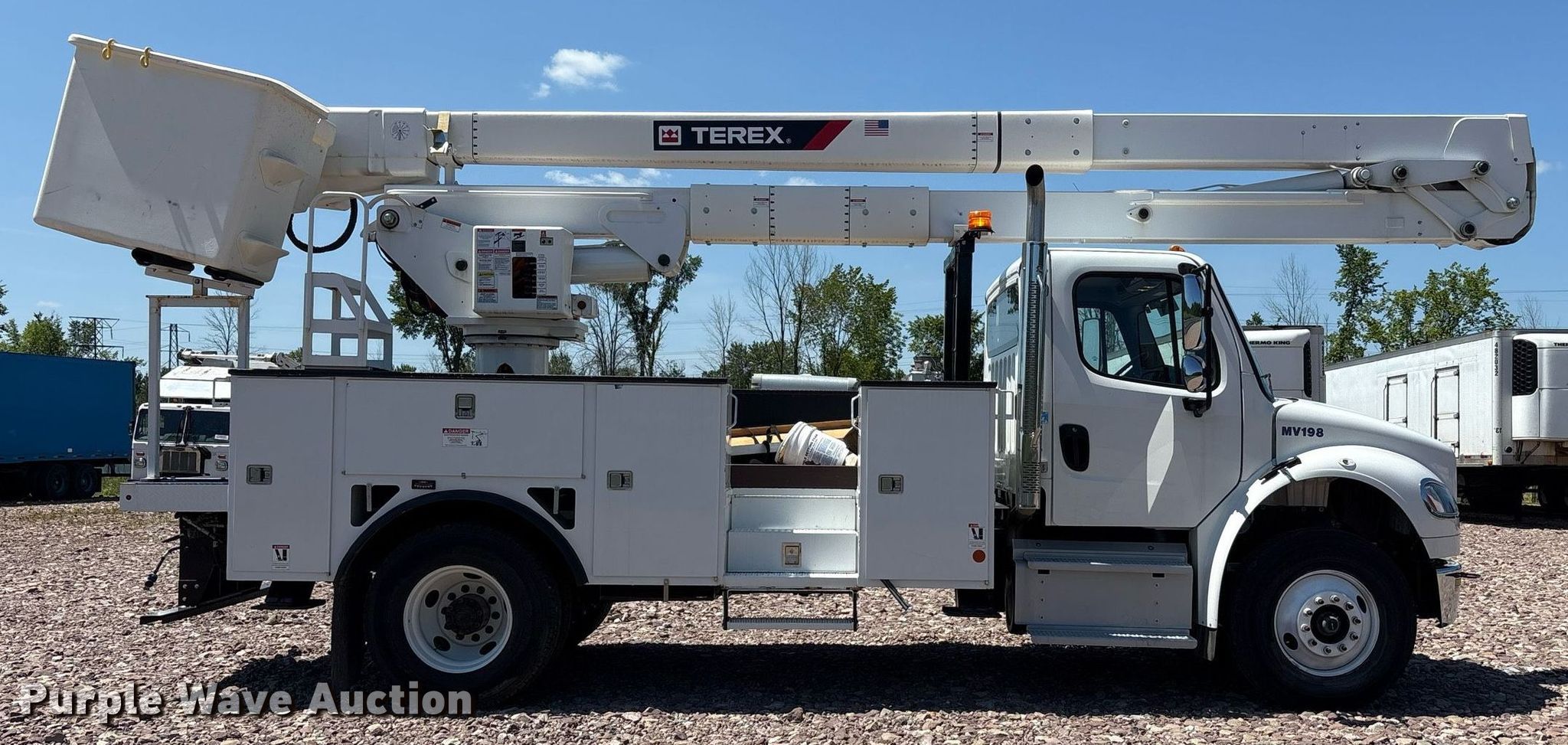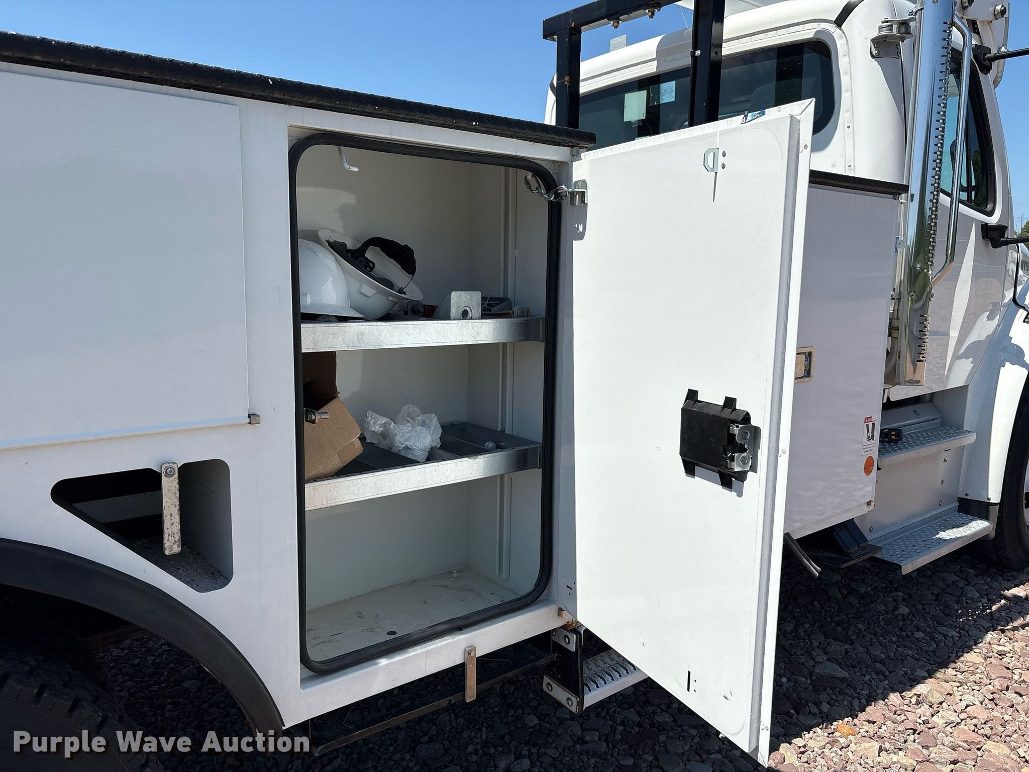 Purple Wave is selling a used Bucket Truck in New York. This item is a 2023 Freightliner Business Class M2 bucket truck with the following: Miles: 11,443 on odometer, Hours: 489 on meter, VIN: 1FVACXFE9PHNX3504, Unit #: 63772055