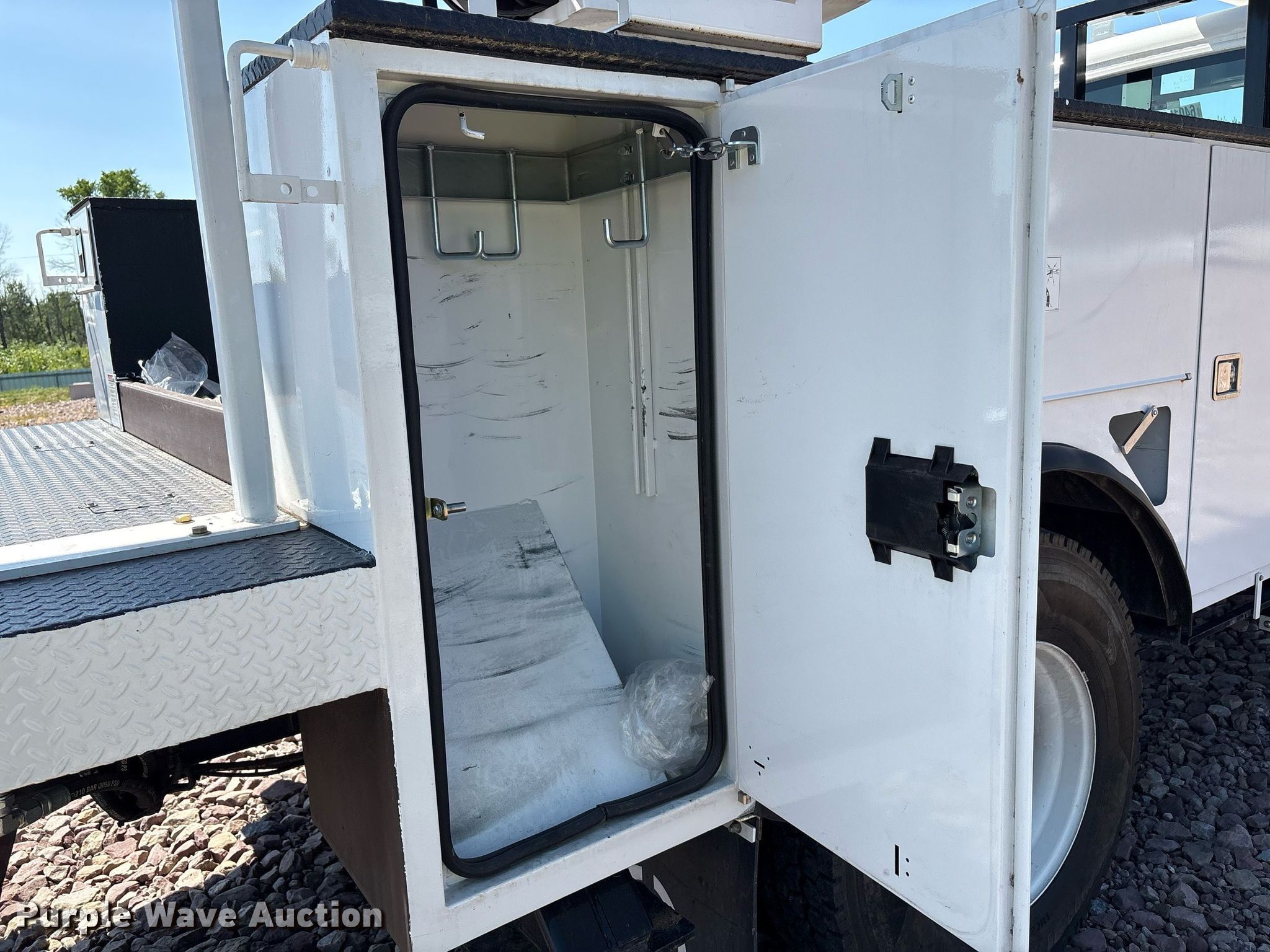 2023 Freightliner Business Class M2 bucket truck. Miles: 9,413 on odometer, Hours: 407 on meter, VIN: 1FVACXFE2PHNX3506, Unit #: 64015285. Engine Cummins L9, Displacement: 9.0L, Cylinders: 6, Fuel type: Diesel, HP: 300. Transmission Allison 3000 RDS, Automatic. Chassis Axles: Single, Suspension: Spring, Brakes: Air, PTO, GVWR: 33,000 lbs. Interior AC, Heat, Heated mirrors, Power windows, Power locks, Cruise control, Auxiliary controls, Brake controller. Features Bed Utility bed, Dakota Bodies CTSTK168LB0TC55, Serial: DB55657, Length: 14', Width: 94", Boom 2022 Terex Optima-TC55, Maximum lift capacity: 700 lbs, Maximum lift height: 55', Boom type: Articulating, Man basket, Boom controls Ground, Platform/ basket.. Tires Size: 11R22.5. Repossessed item, stored at a secured facility. Please review REQUIRED REMOVAL INSTRUCTIONS. Titles will be distributed after confirmation of payment and removal. West Virginia title. Title distribution may be delayed up to 60 days from verification of funds. Lender Owned. Central Square, NY 13036