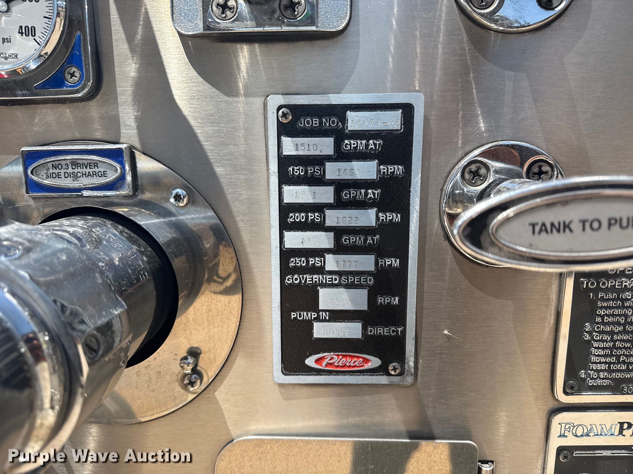 Purple Wave is selling a used Fire Truck or Emergency Vehicle in Oklahoma. This item is a 2002 Pierce Tilt cab pumper fire truck with the following: Kilometers: 49,895 on odometer, Hours: 33,806 on meter, VIN: 4P1CT02E42A002061, Unit #: 2002176