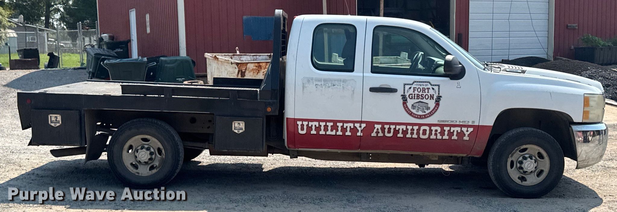 2008 Chevrolet Silverado 2500HD Ext. Cab flatbed pickup truck. Miles: 179,973 on odometer, VIN: 1GCHK29K78E112015. Engine Displacement: 6.0L V8 OHV, Cylinders: 8, Fuel type: Gas. Transmission Automatic, Four wheel drive. Interior AC, Heat, Heated mirrors, Power windows, Power locks, Cruise control. Features Bed Flatbed, Length: 8' 6", Width: 82", Hitch: Gooseneck. Tires Size: LT245/75R16. Notes Dash warning indicator: Check engine, Windshield chipped or cracked, Engine issues, needs replaced. Oklahoma title. Title distribution may be delayed up to 14 days from verification of funds. City of Fort Gibson. 200 West Poplar Street. Fort Gibson, OK 74434