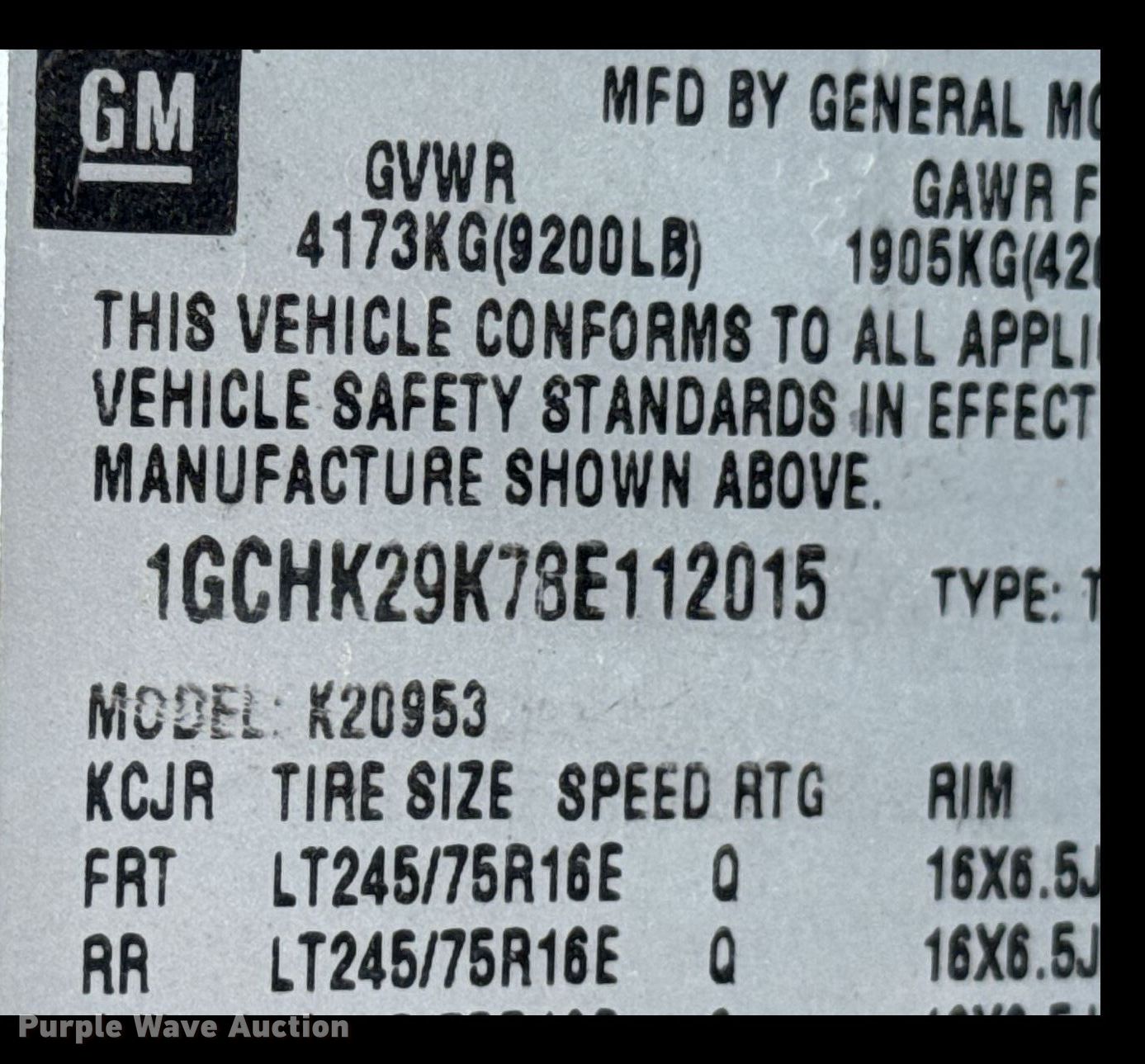 - VIN: 1GCHK29K78E112015