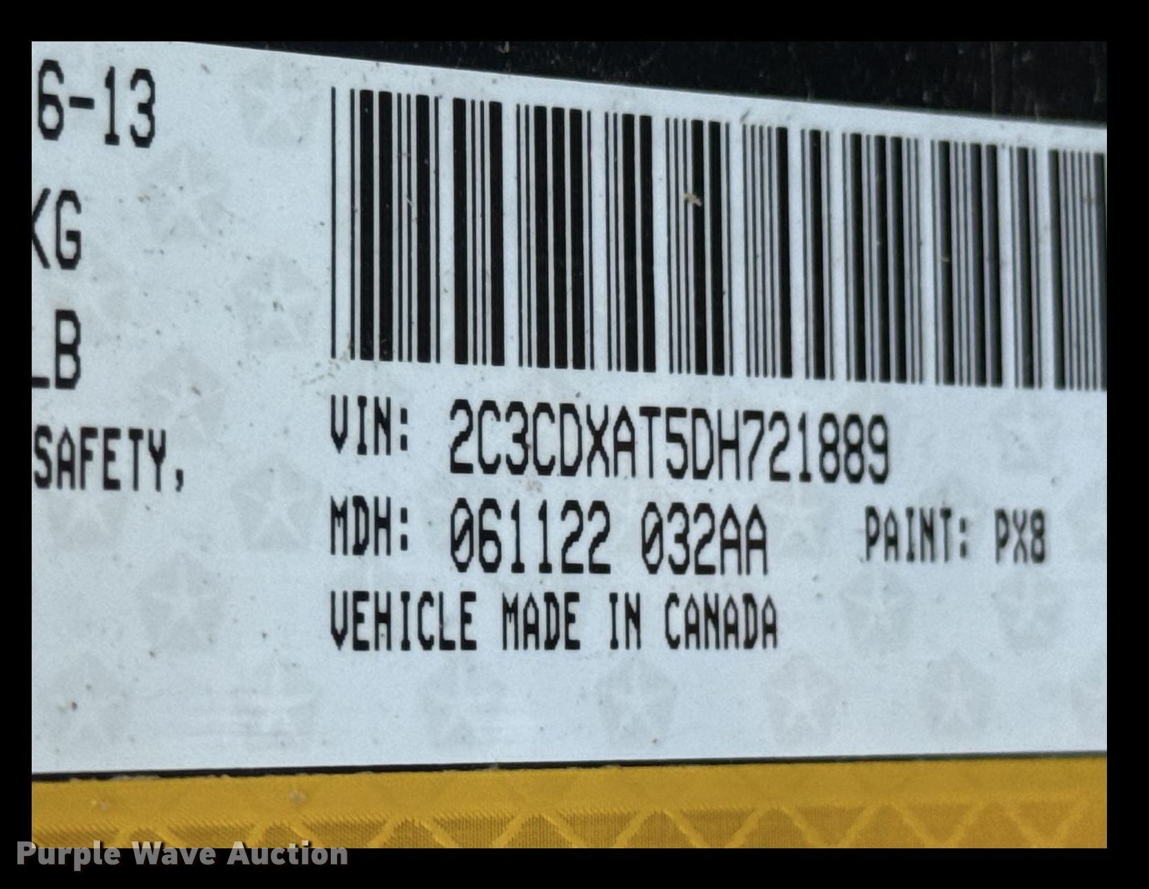- VIN: 2C3CDXAT5DH721889