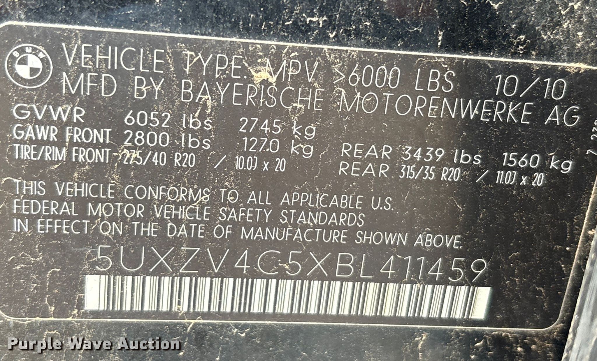 - VIN: 5UXZV4C5XBL411459