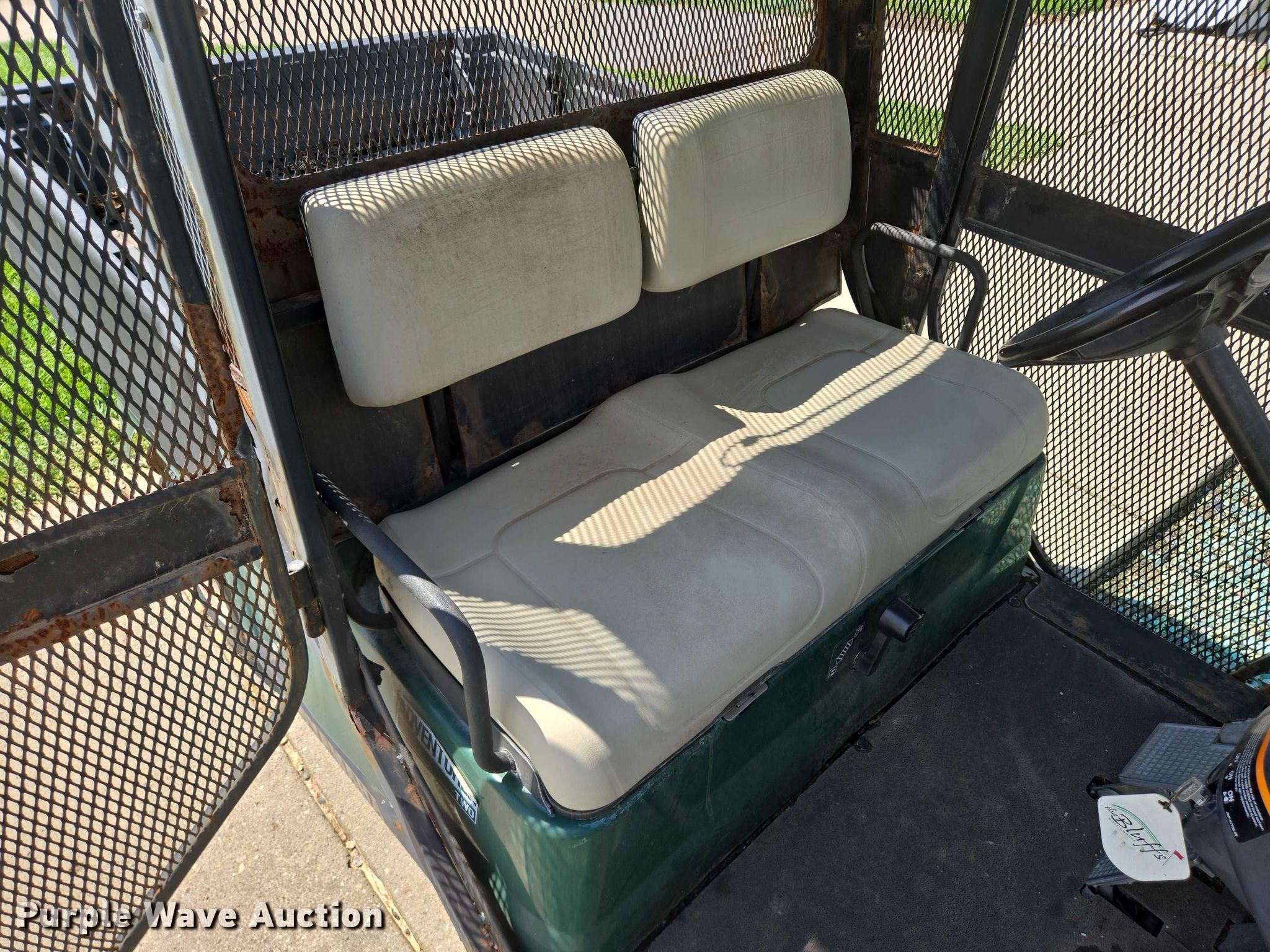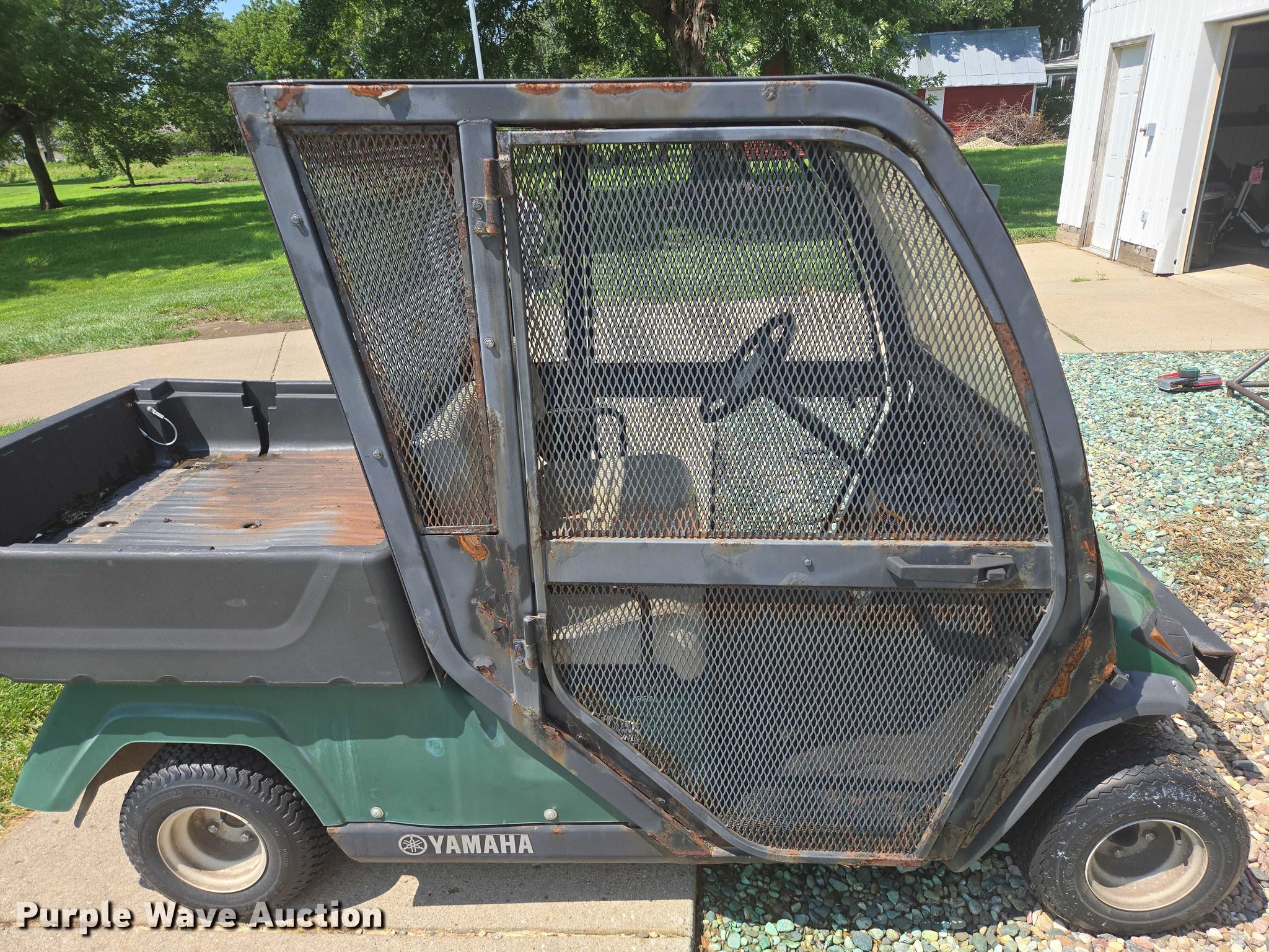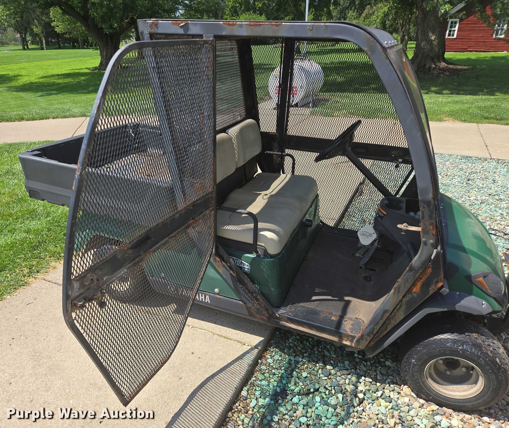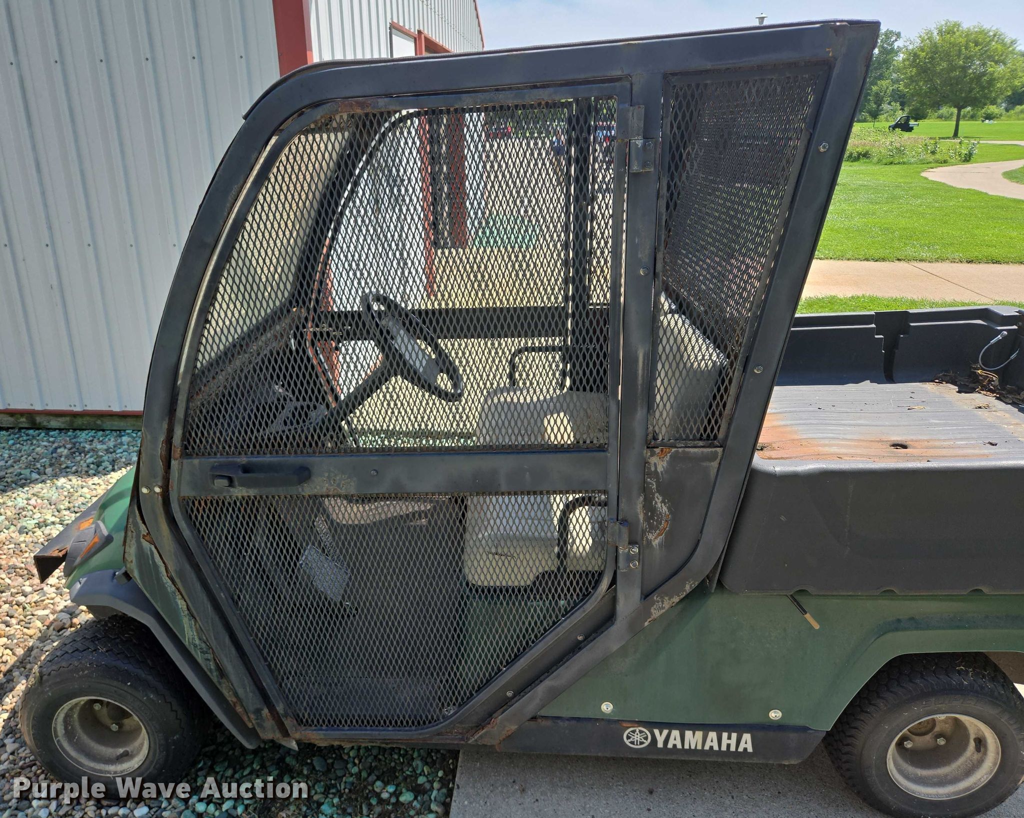 Yamaha YTF2X3 golf cart. Hours: 1,249 on meter, Serial: JW7-F4236-60. Engine Cylinders: 1, Fuel type: Gas. Transmission Automatic. Operators station Canopy. Features Receiver hitch, Dump bed 46" L x 47" W, Dump bed type: Manual. Tires Size: 18x8.50-8. Notes Possible transmission issues, does not move , Jump start required during on-site data collection, Unknown operating condition. City of Vermillion, SD. Vermillion, SD 57069