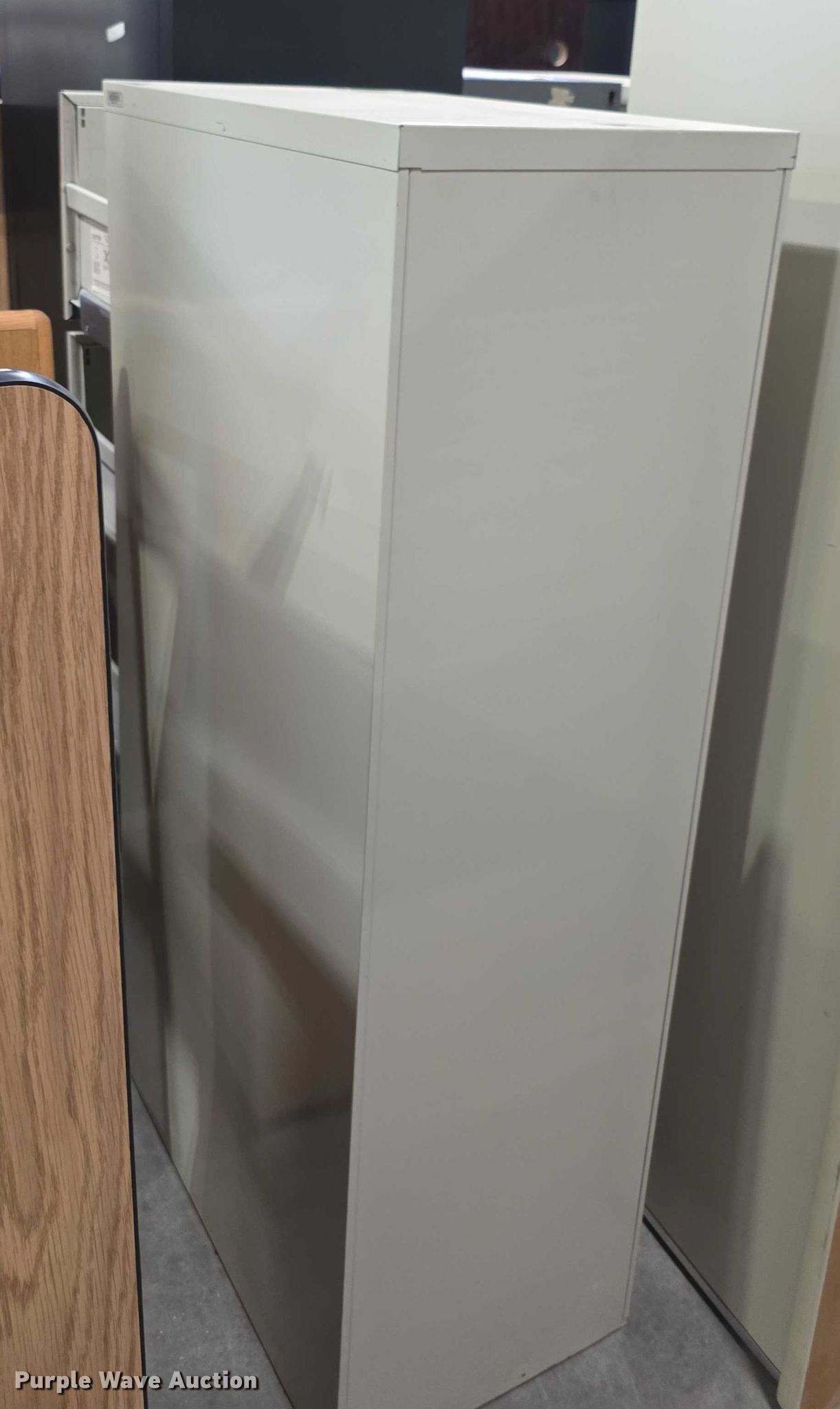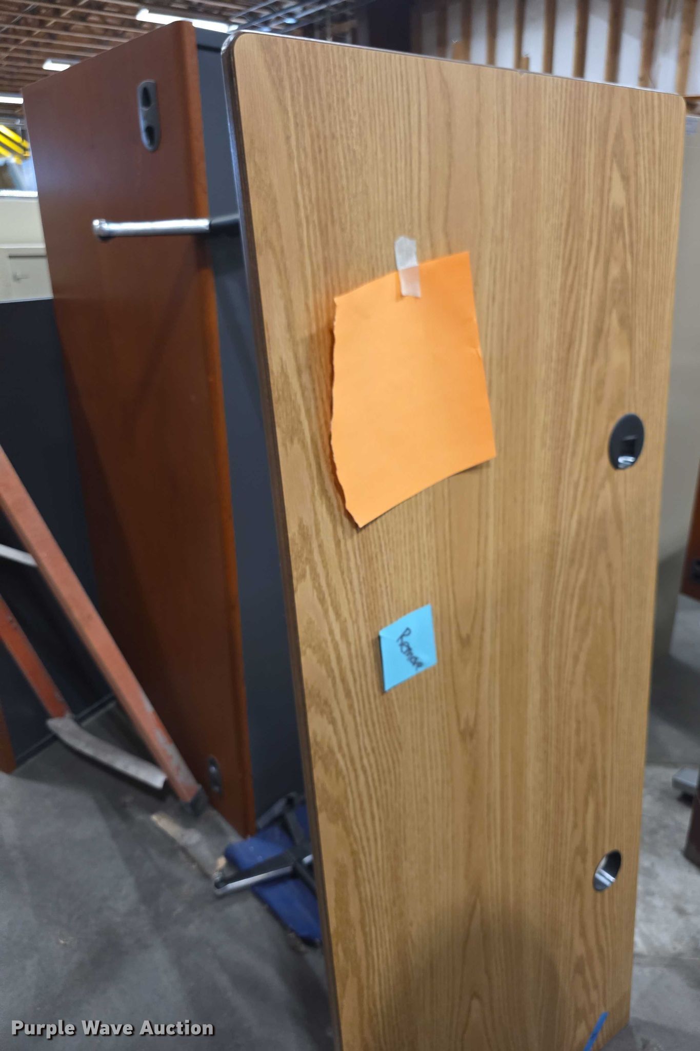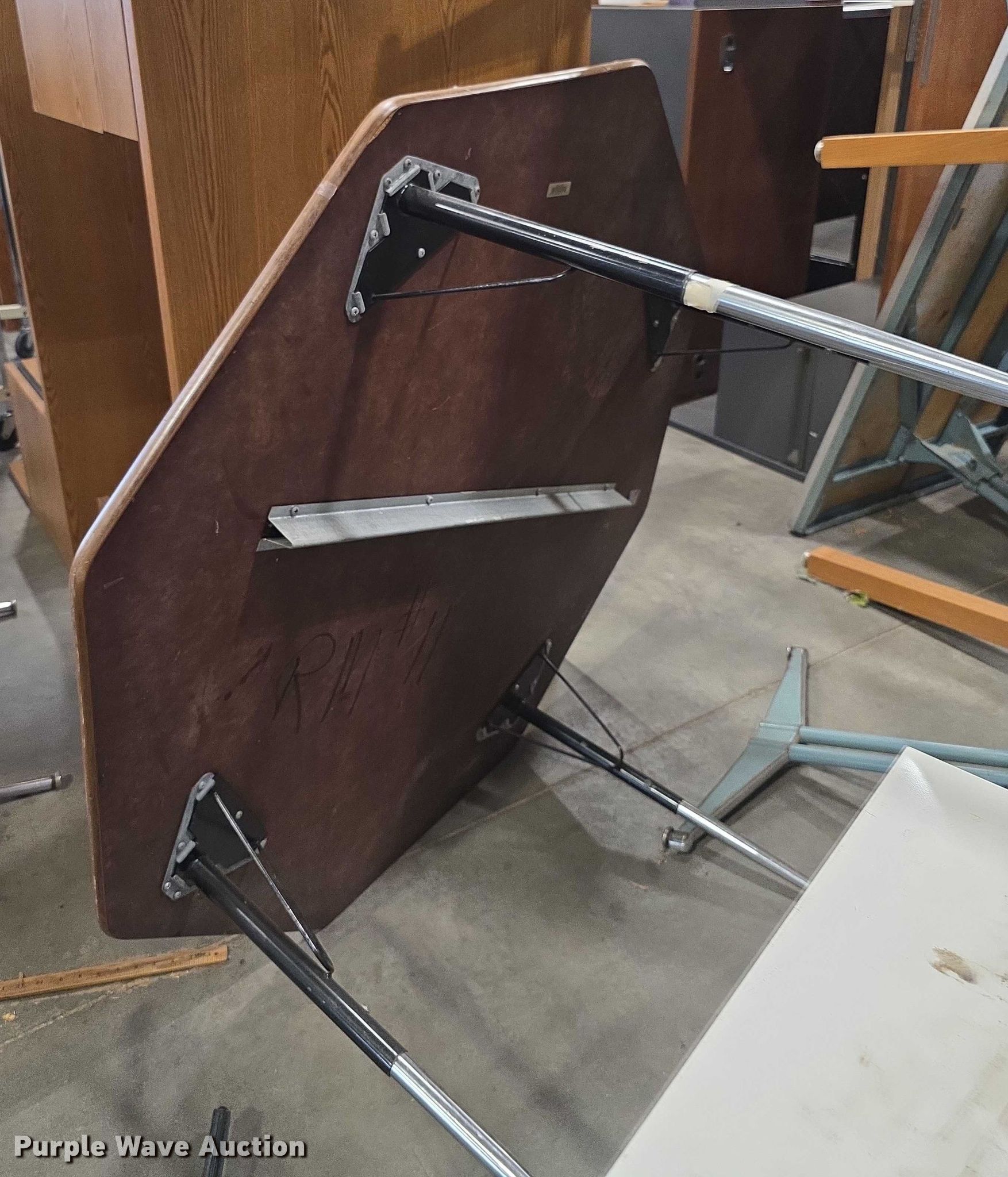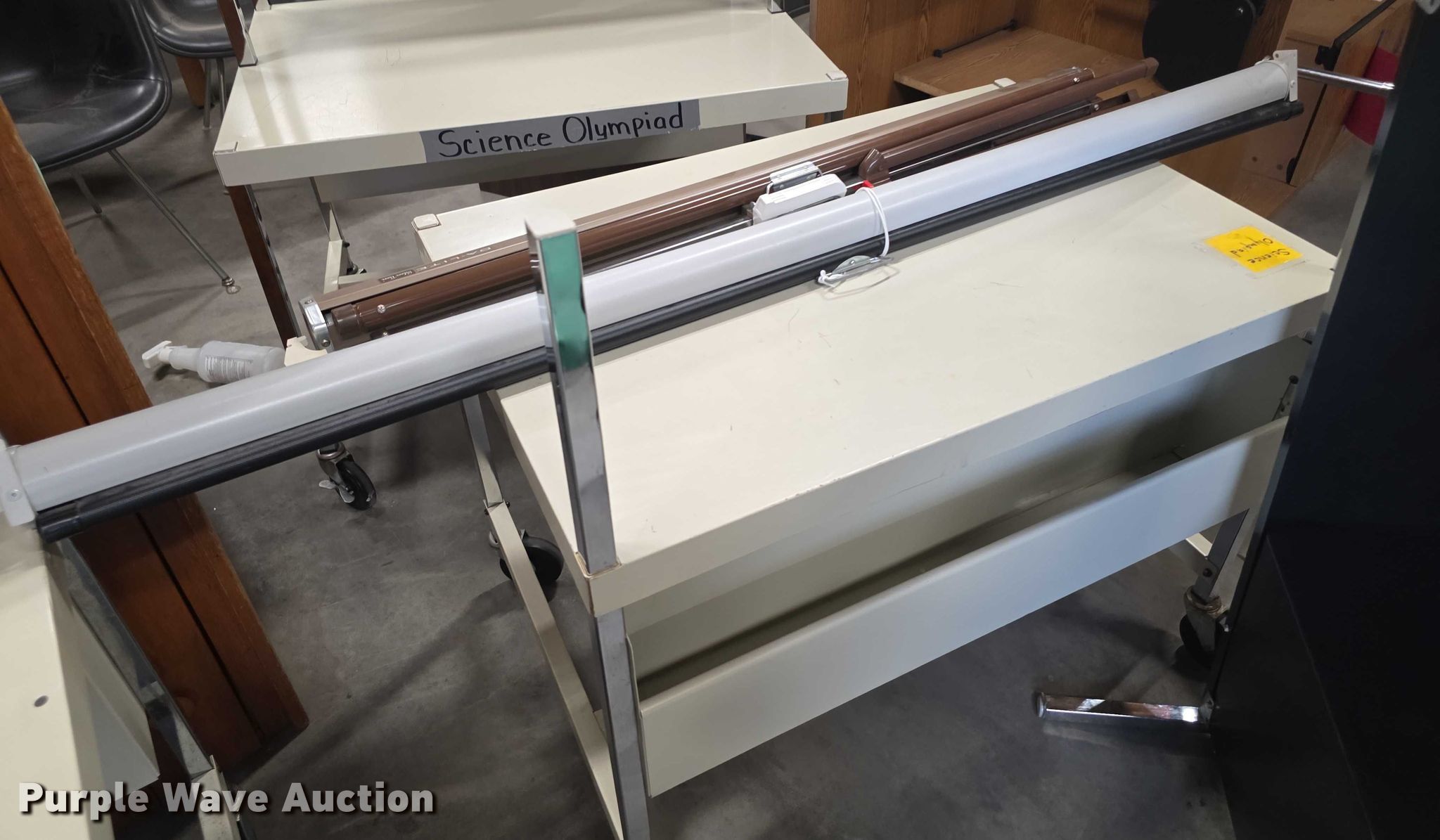 Purple Wave is selling a used Furniture in Kansas. This item is a Furniture with the following: (2) chairs, (15) desks, (11) filing cabinets, (18) tables, (7) Bookcases, (2) Podiums, (2) Projector screens, Cabinet, Step ladder