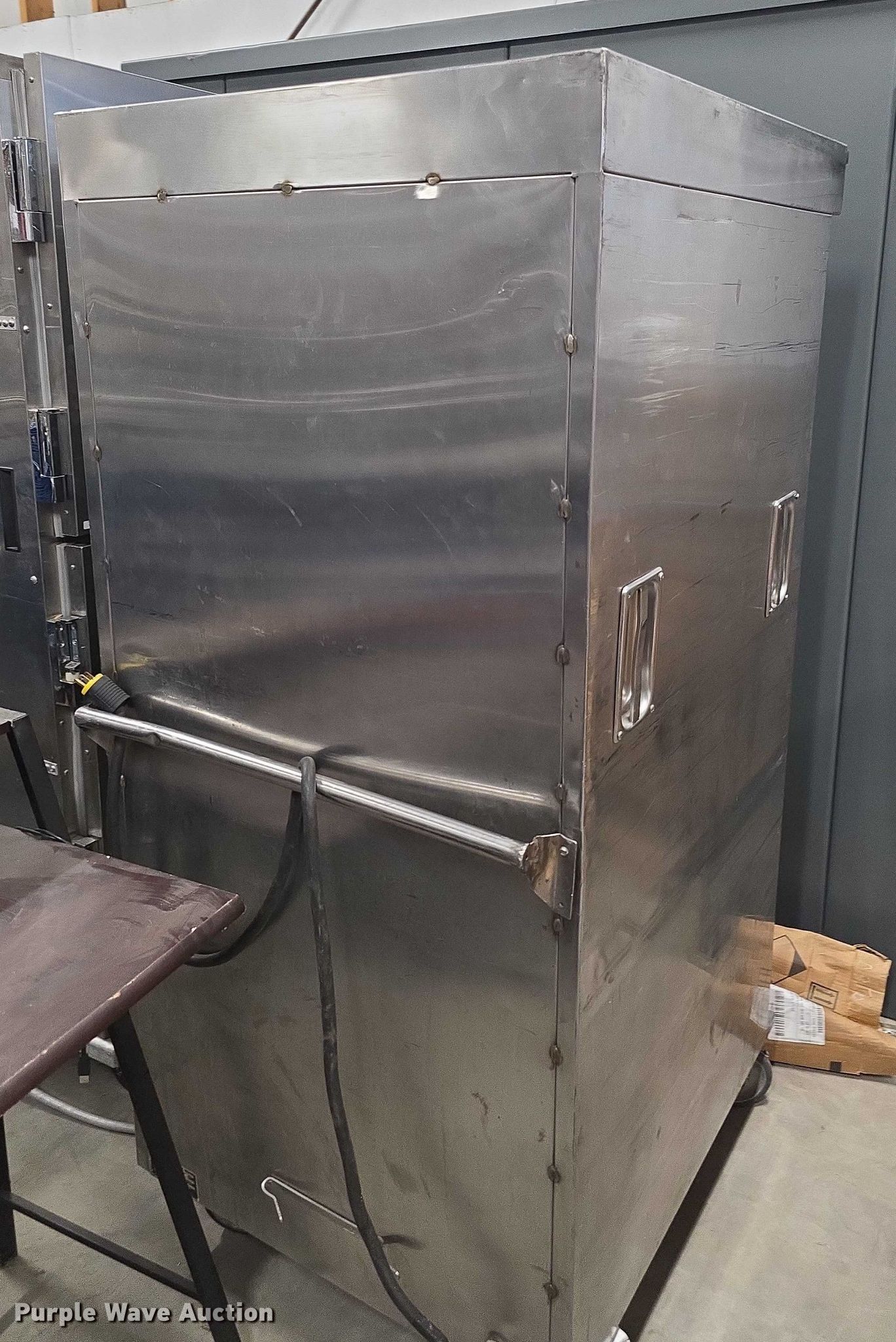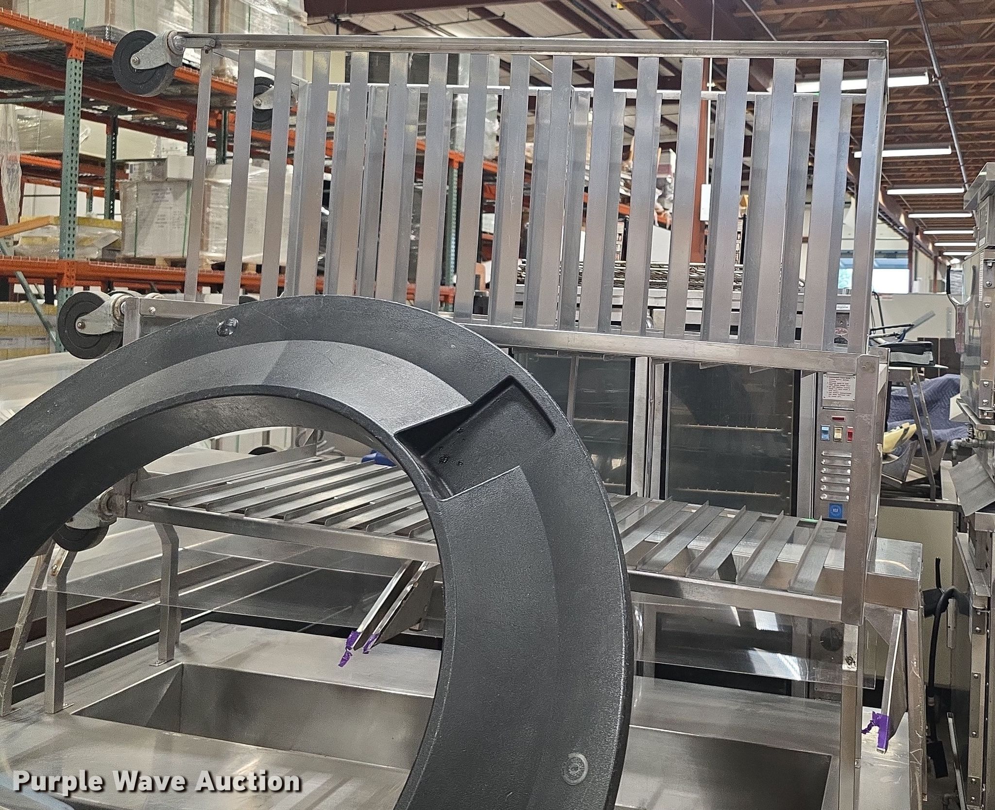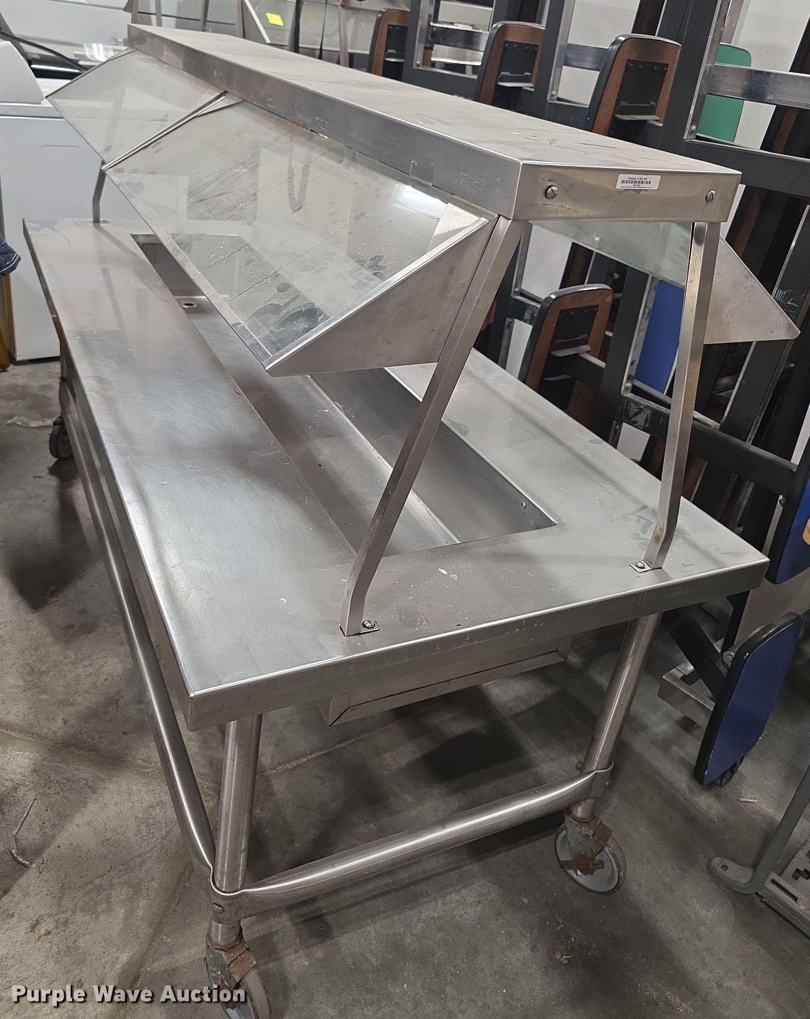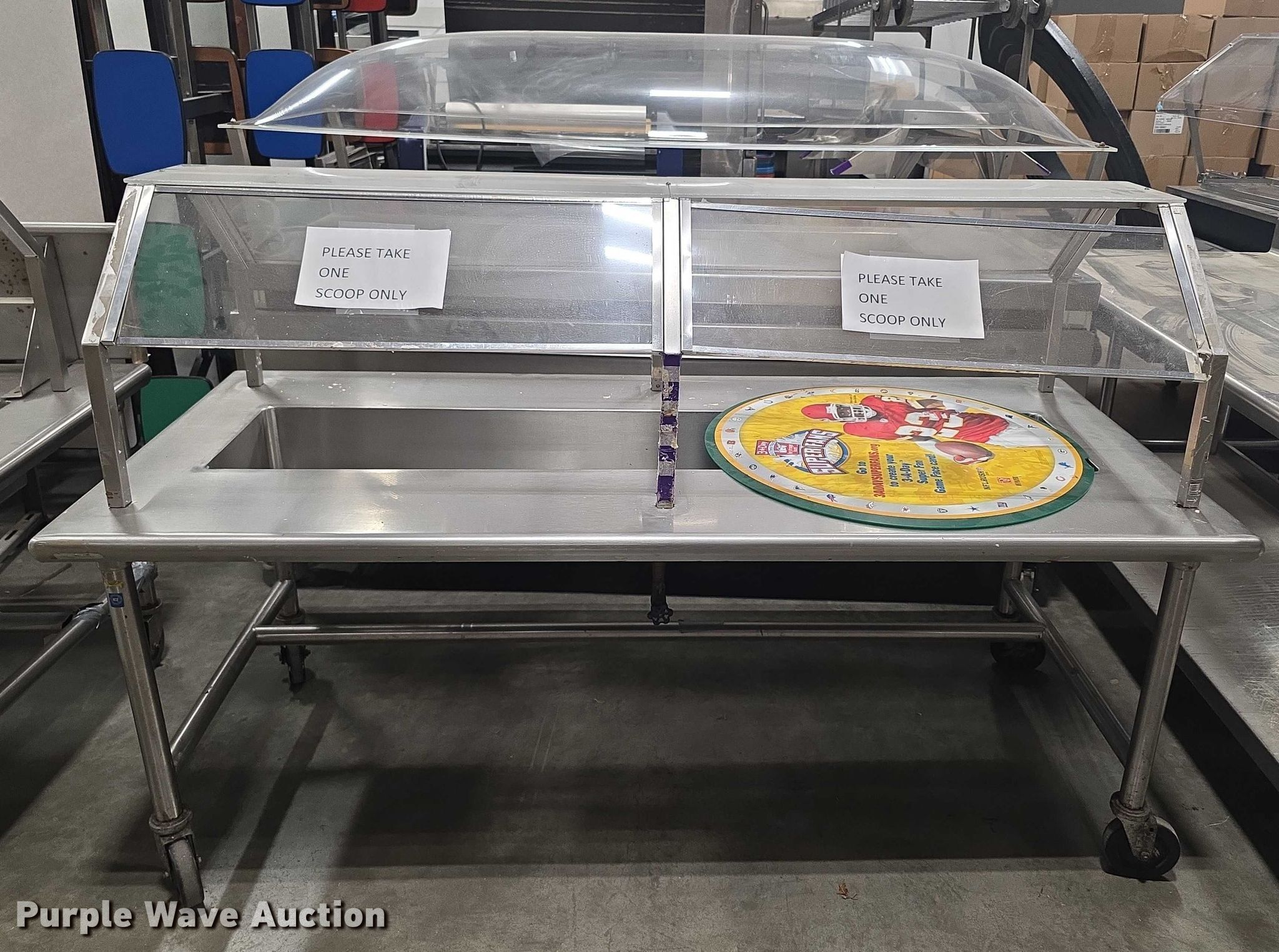 Purple Wave is selling a used Restaurant Equip. in Kansas. This item is a Restaurant equipment with the following: Steam tables, Ice cream freezer, Sheet pan rack, Blodgett double stacked convection ovens, Lunchroom tables, Dryer, Cold tables, Serving trays, Warming cabinets and more