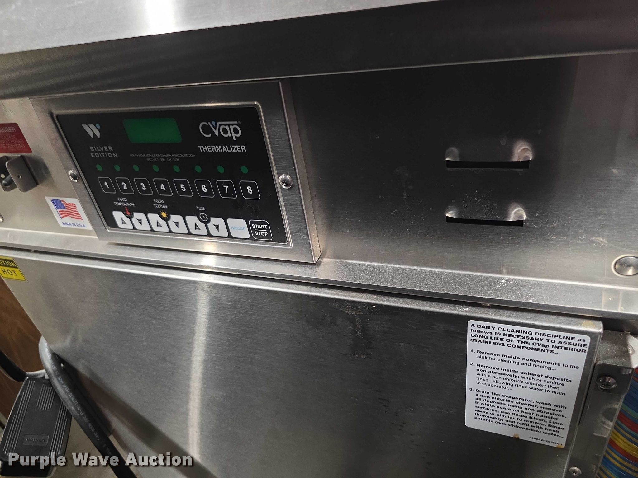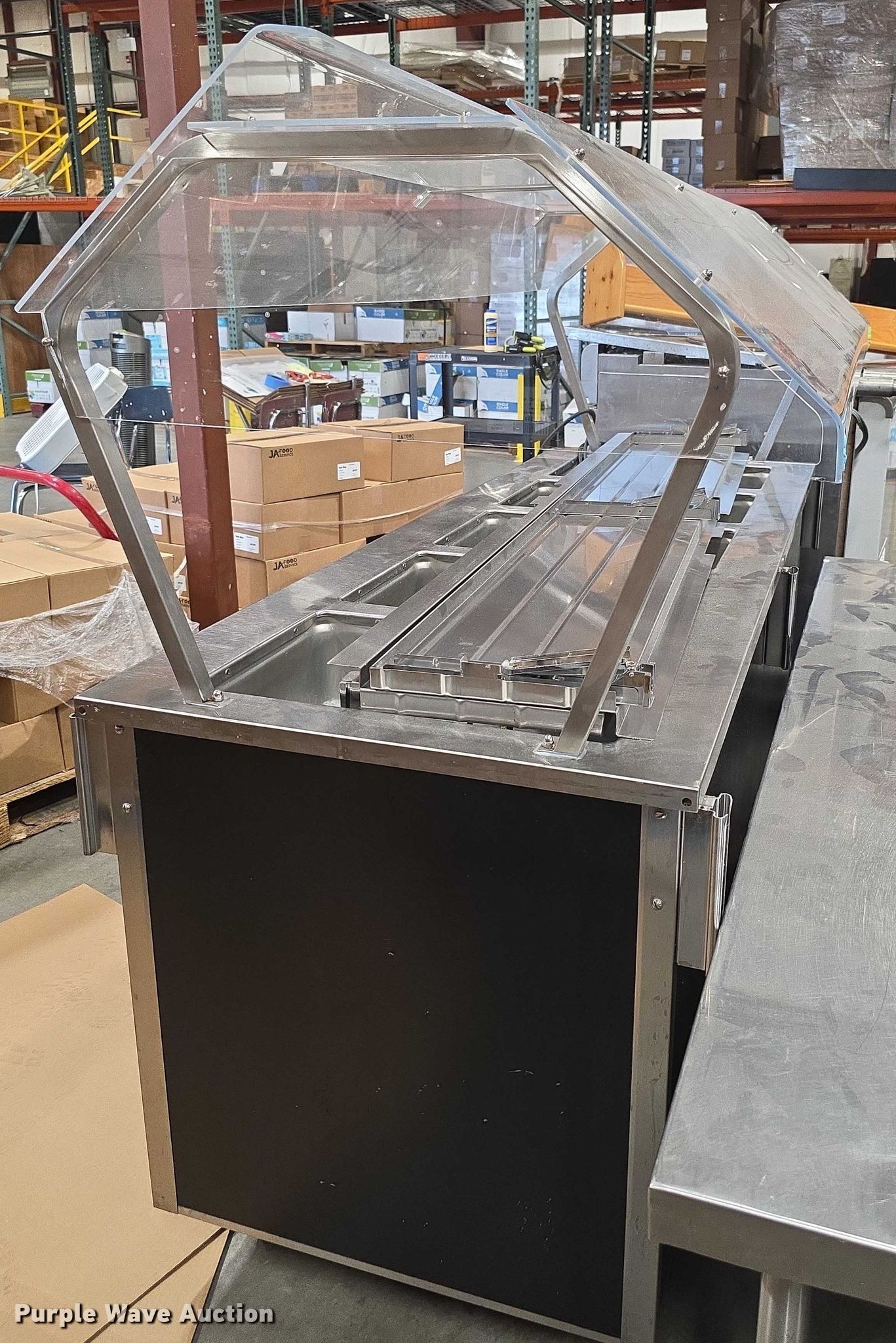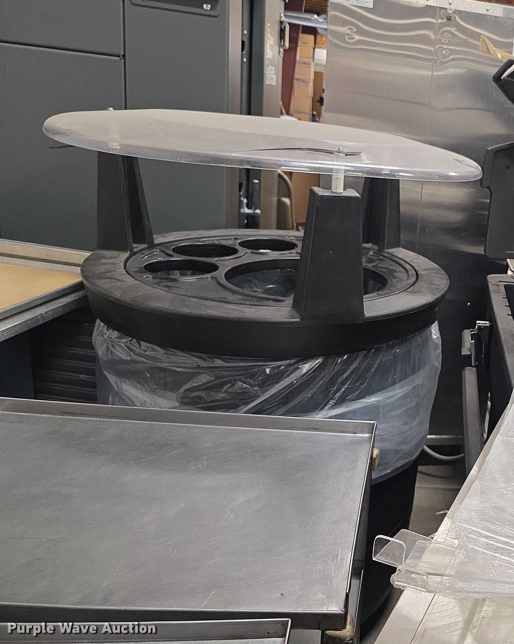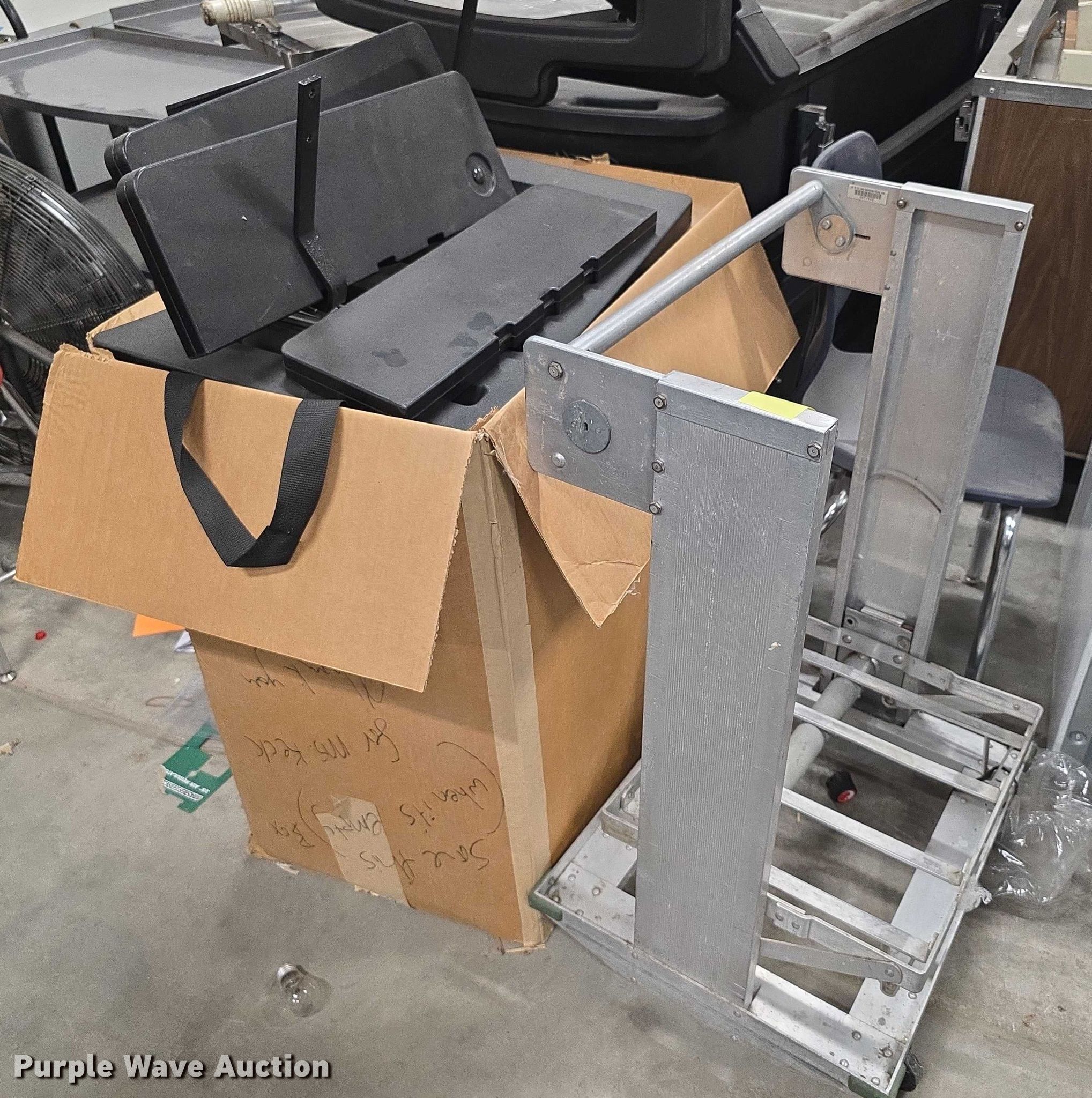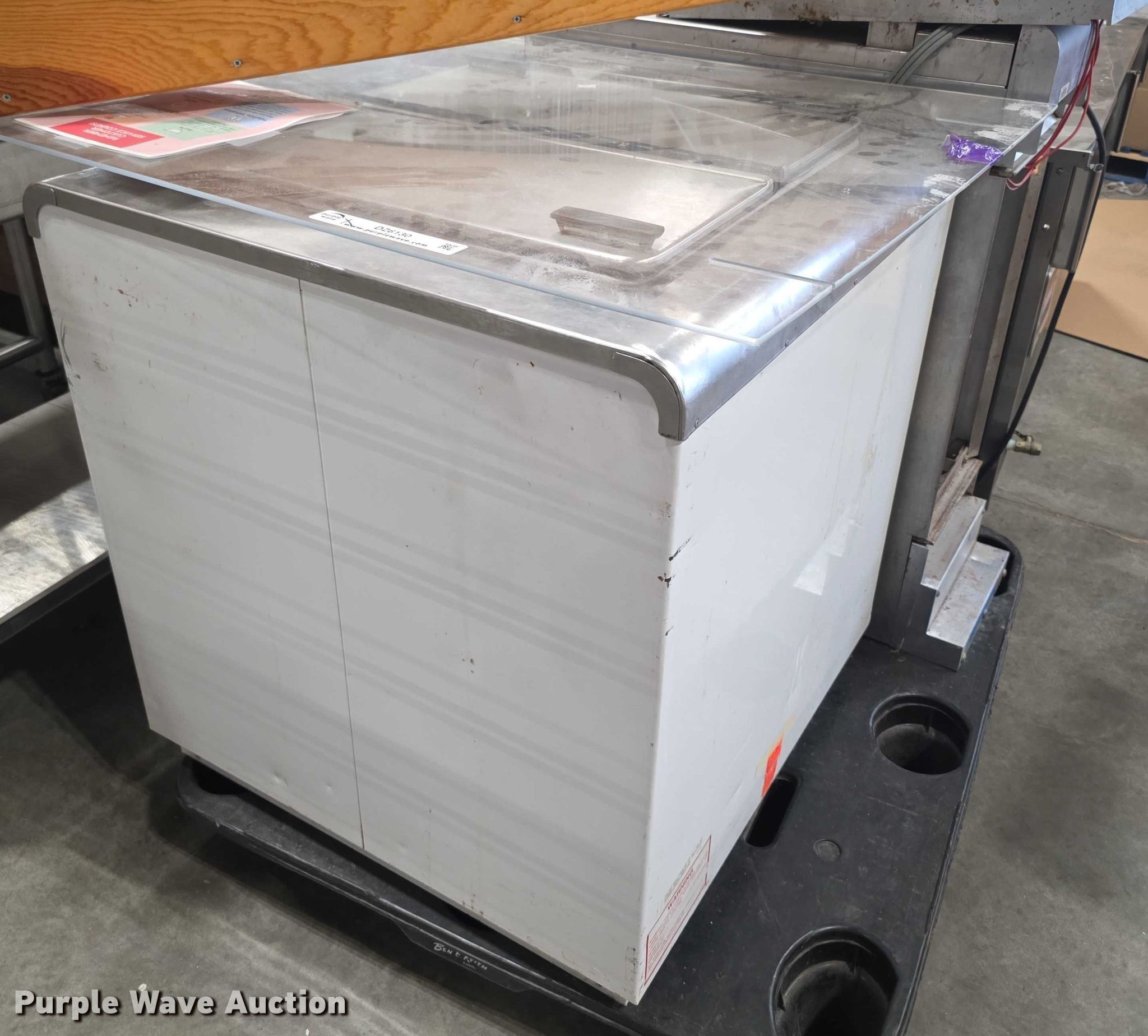 Purple Wave is selling a used Restaurant Equip. in Kansas. This item is a Restaurant equipment with the following: Steam tables, Ice cream freezer, Sheet pan rack, Blodgett double stacked convection ovens, Lunchroom tables, Dryer, Cold tables, Serving trays, Warming cabinets and more