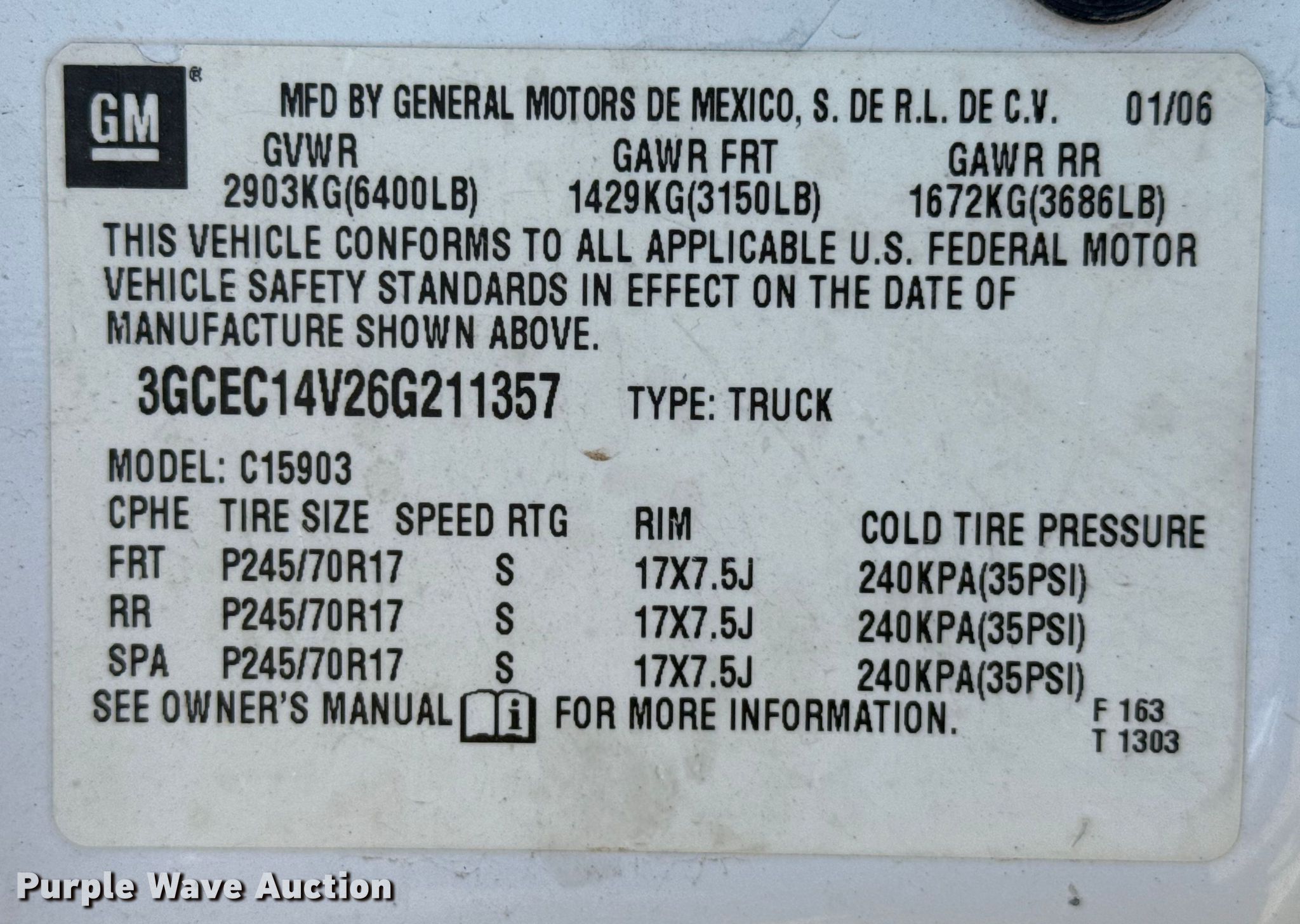 Purple Wave is selling a used 1/2 Ton Pickup or Van in Oklahoma. This item is a 2006 Chevrolet Silverado 1500 pickup truck with the following: Miles: 166,986 on odometer, VIN: 3GCEC14V26G211357