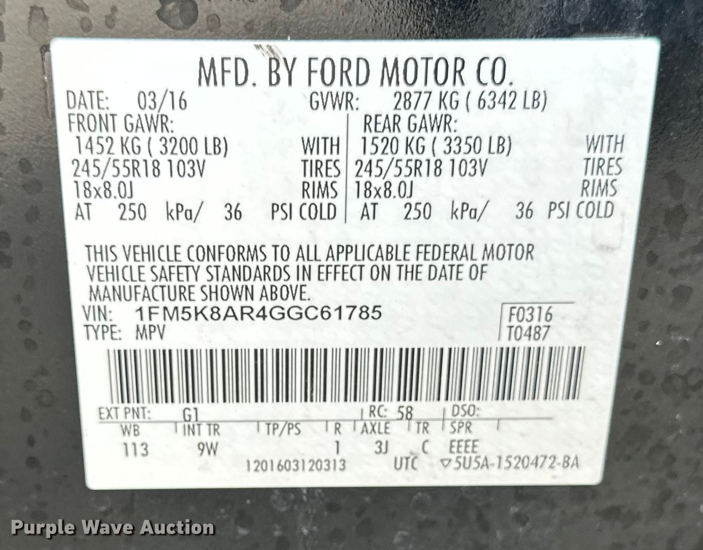 - VIN: 1FM5K8AR4GGC61785