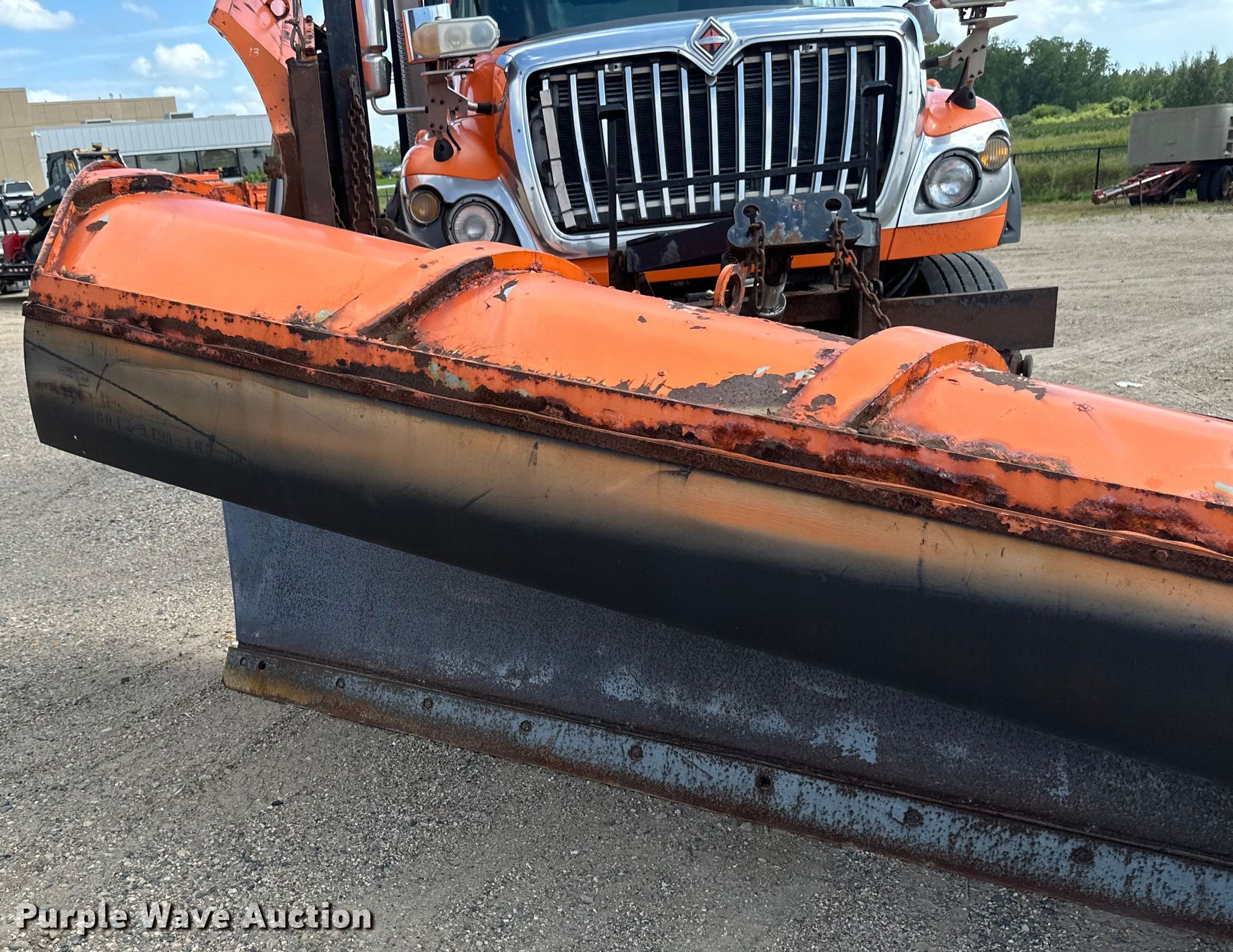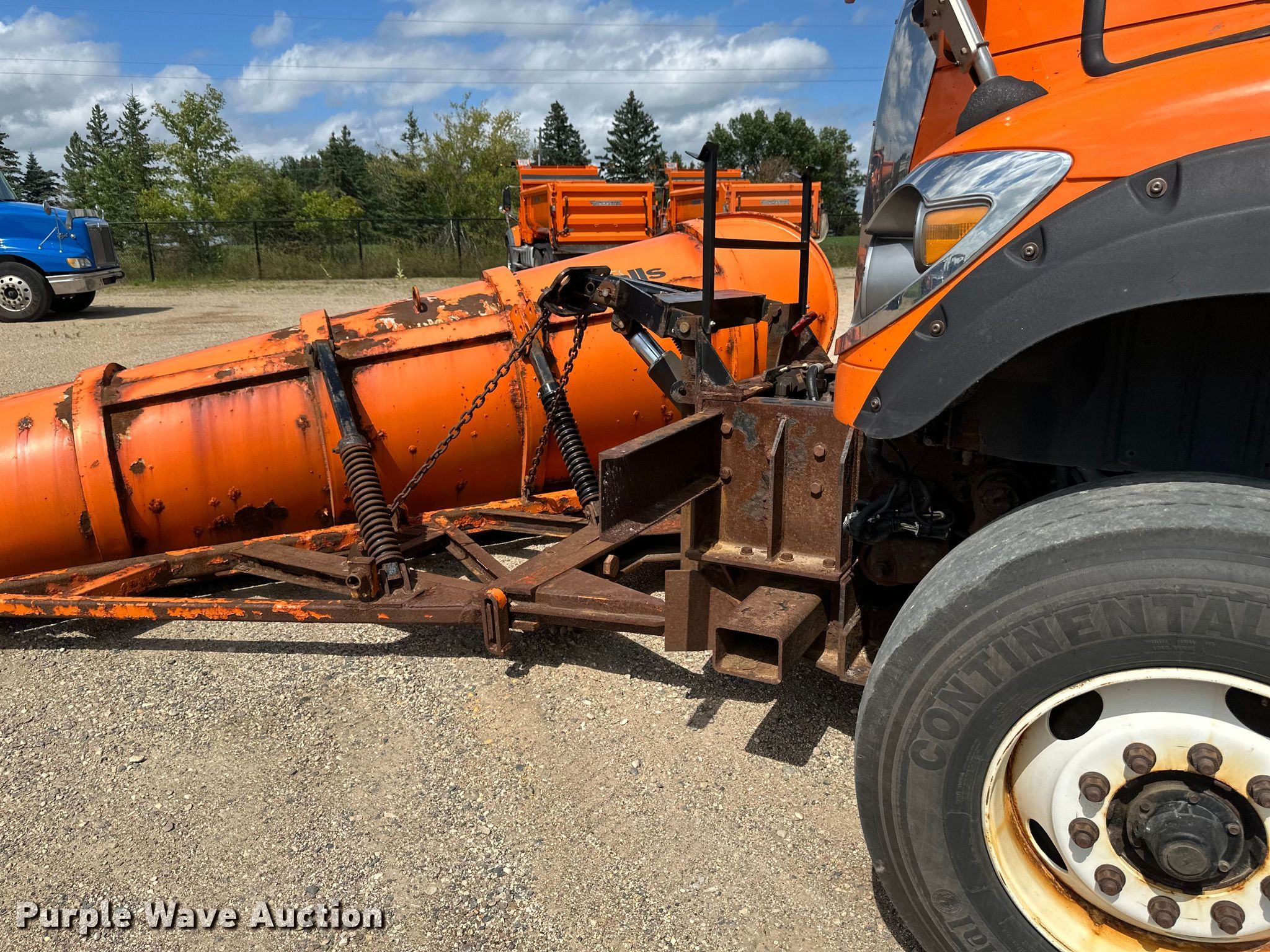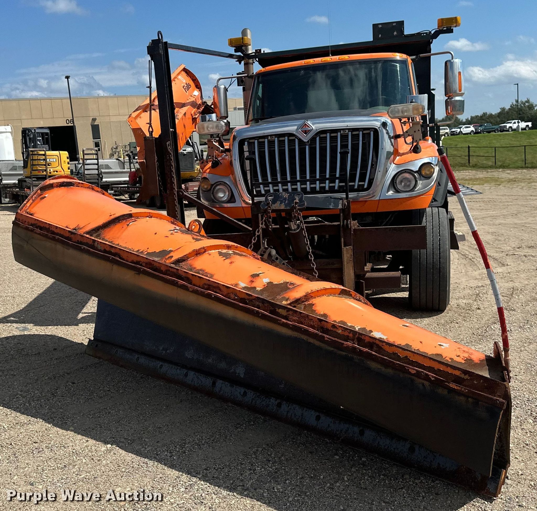2012 International 7600 dump truck. Miles: 222,684 on odometer, Hours: 8,640 on meter, VIN: 1HTGRSJT6CJ454702. Engine International, Displacement: 13.0L, Cylinders: 6, Fuel type: Diesel, Engine brake. Transmission Eaton Fuller, Manual, Speed: 10. Chassis Axles: Tandem, Differential lock: Full, Suspension: Spring over walking beam, Brakes: Air, PTO, Front mount PTO, GVWR: 58,000 lbs, Wheelbase: 540". Interior AC, Heat, Heated mirrors, Power windows, Cruise control. Features Bed Dump bed, Tow master 150 Edge RC, Length: 16', Width: 96", Side height: 46", Bed type: Steel, Ram: Single, End gate: Air operated, Spreader Falls 1ASD6CDSS-6P-1S-LM, Plow Falls, Width: 144", Wing plow Width: 120", Mid-mount plow Width: 132", Salt brine tank. Tires Front: 385/65R22.5, Rear: 11R22.5. Notes Engine replaced December 2021. View repairs. Minnesota title. Title distribution may be delayed up to 14 days from verification of funds. Becker County Highway Department. Detroit Lakes, MN 56501