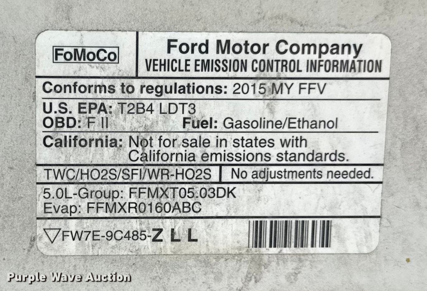 2015 Ford F150 XL SuperCab pickup truck. Miles: 80,879 on odometer, VIN: 1FTFX1EF8FKE06100. Engine Displacement: 5.0L V8, Cylinders: 8, Fuel type: Gas. Transmission Automatic, Four wheel drive. Interior AC, Heat, Power windows, Power locks, Cruise control. Tires Size: 265/70R17. Notes Dash warning indicator: TPMS. Kansas title. Title distribution may be delayed up to 14 days from verification of funds. Tonganoxie, KS 66086