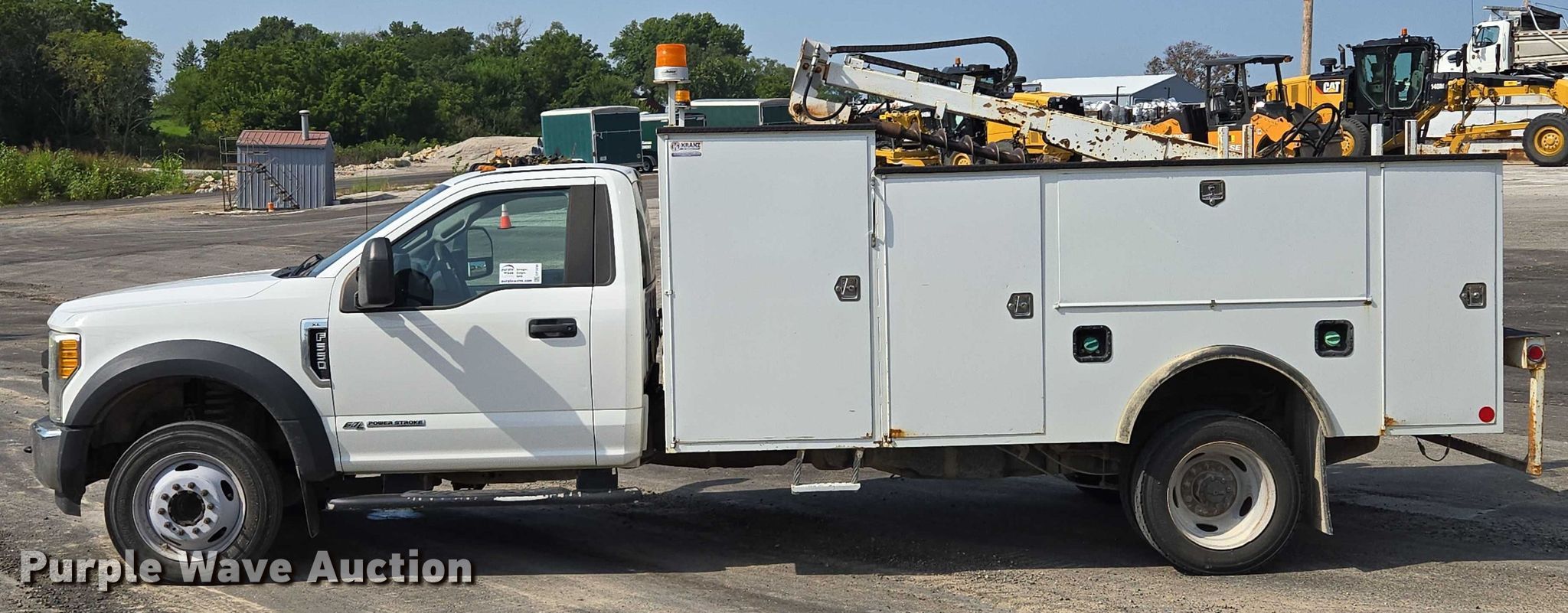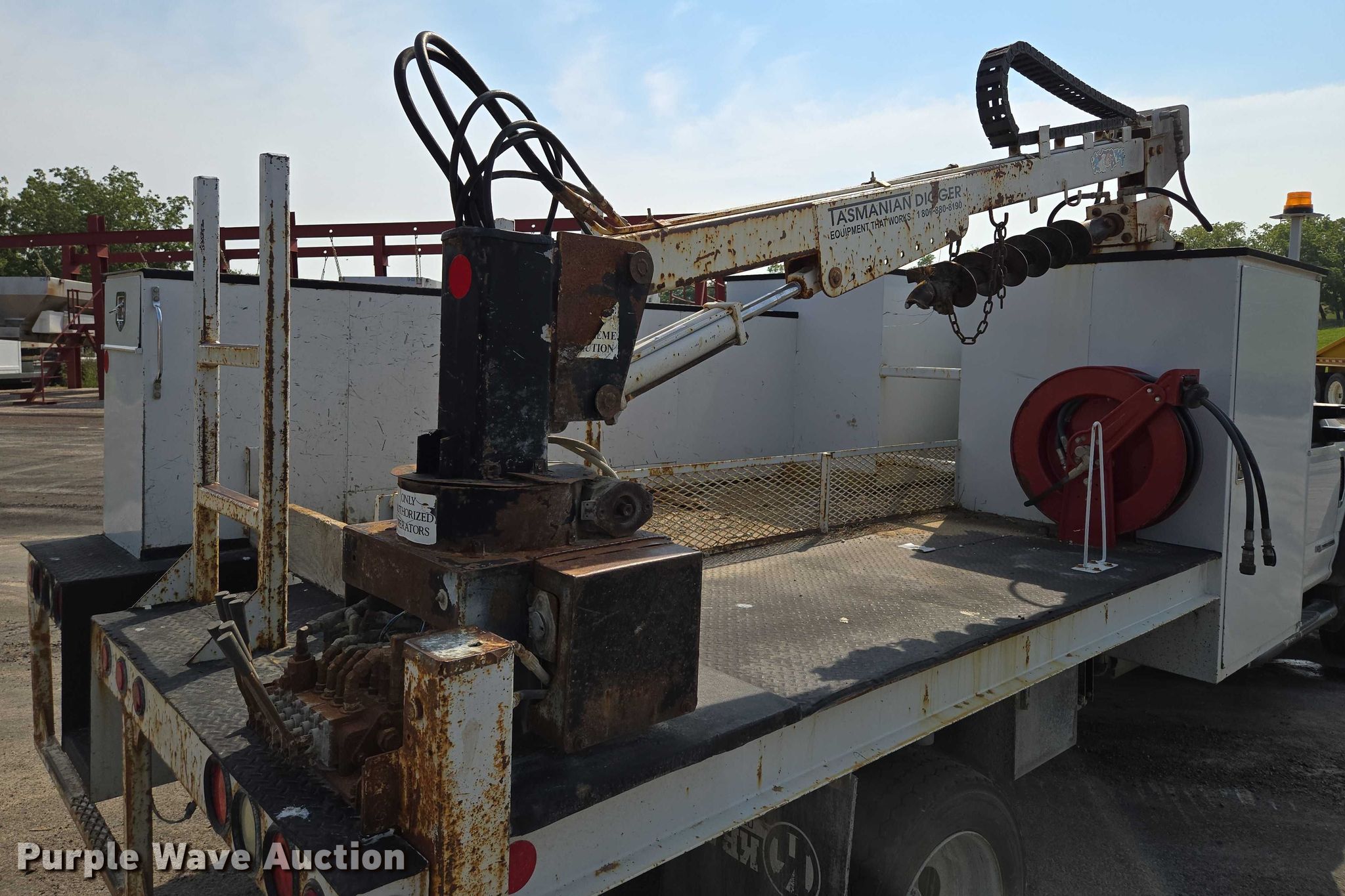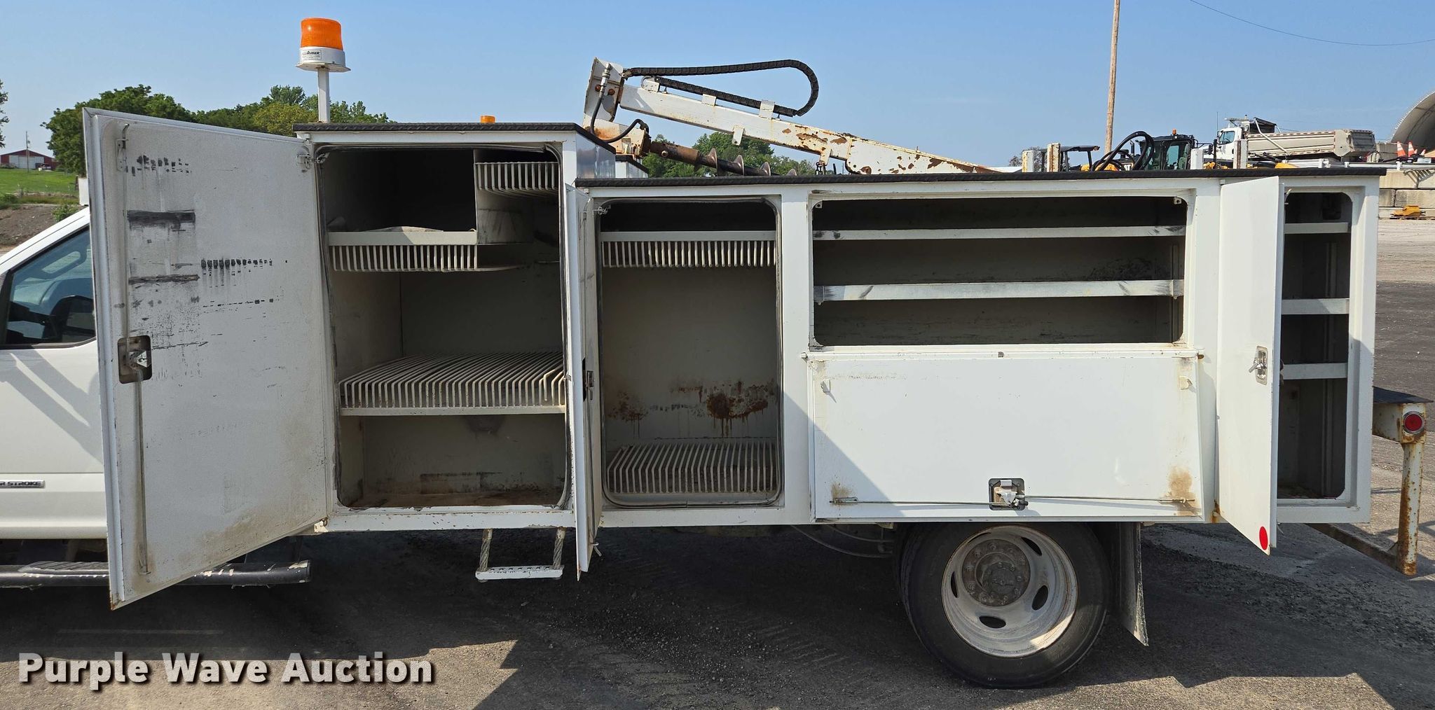 2017 Ford F550 utility / service truck. Miles: 199,625 on odometer, VIN: 1FDUF5GT4HEB23386. Engine Displacement: 6.7L, Cylinders: 8, Fuel type: Diesel. Transmission Automatic. Chassis Axles: Single, Suspension: Spring, Brakes: Hydraulic. Interior AC, Heat, Cruise control, Auxiliary controls. Features Bed Utility bed, Length: 13', Width: 96", Oil/lube system Hose reels, Boom Tasmanian Digger, Auger bit: 48" L x 7" diameter. Tires Size: 225/70R19.5. Notes Stanley hydraulic pipe puller. Kansas title. Title distribution may be delayed up to 14 days from verification of funds. Leavenworth County. Leavenworth, KS 66048