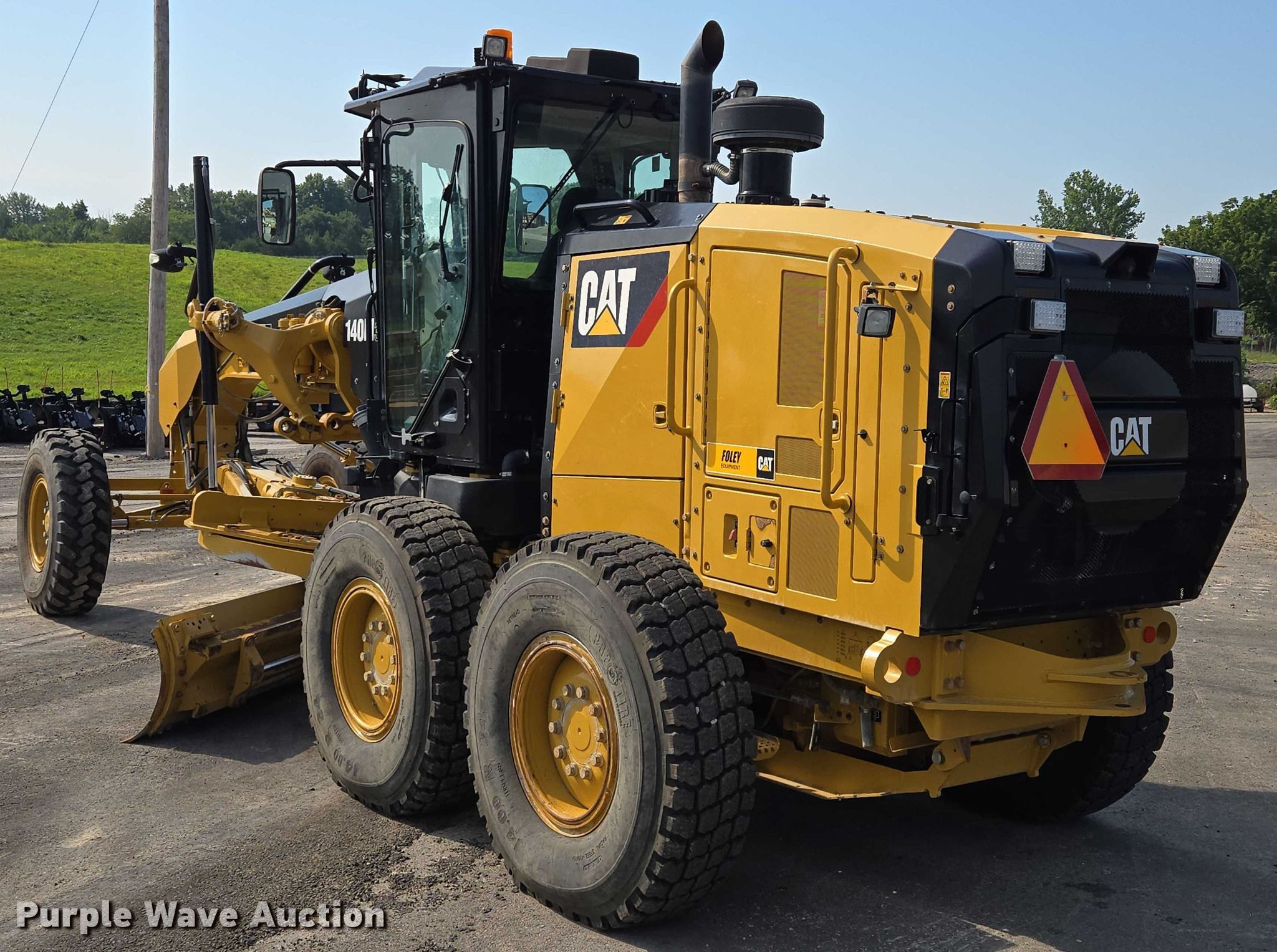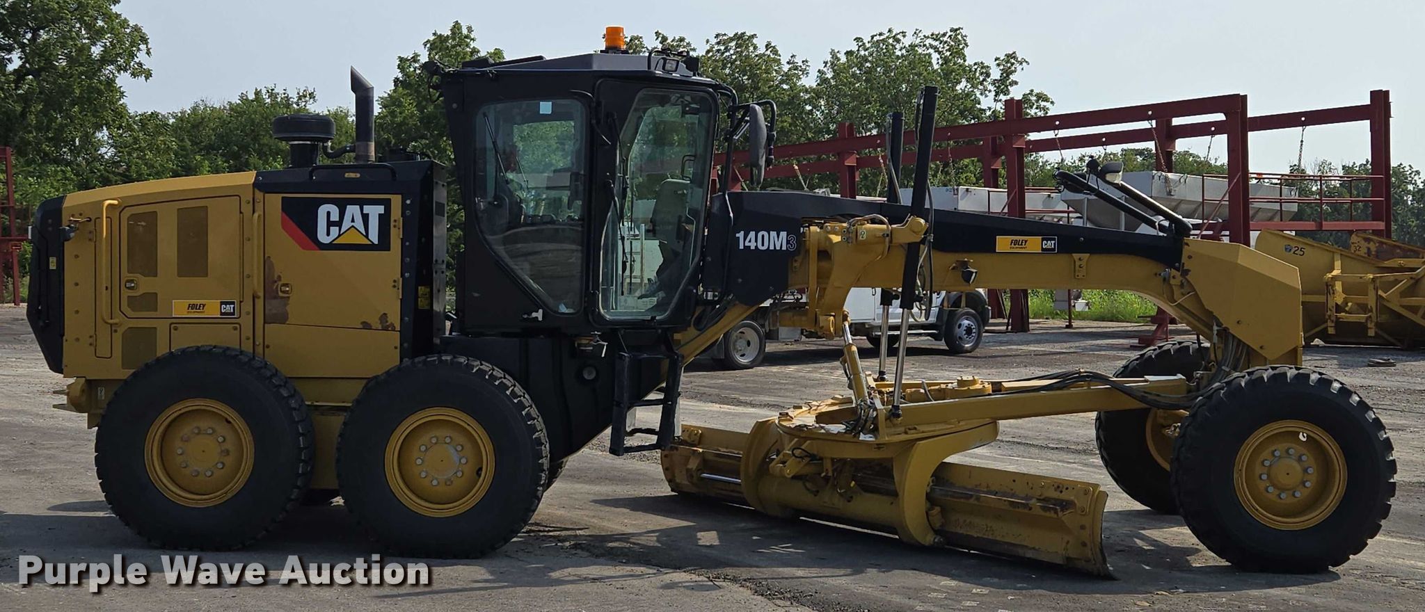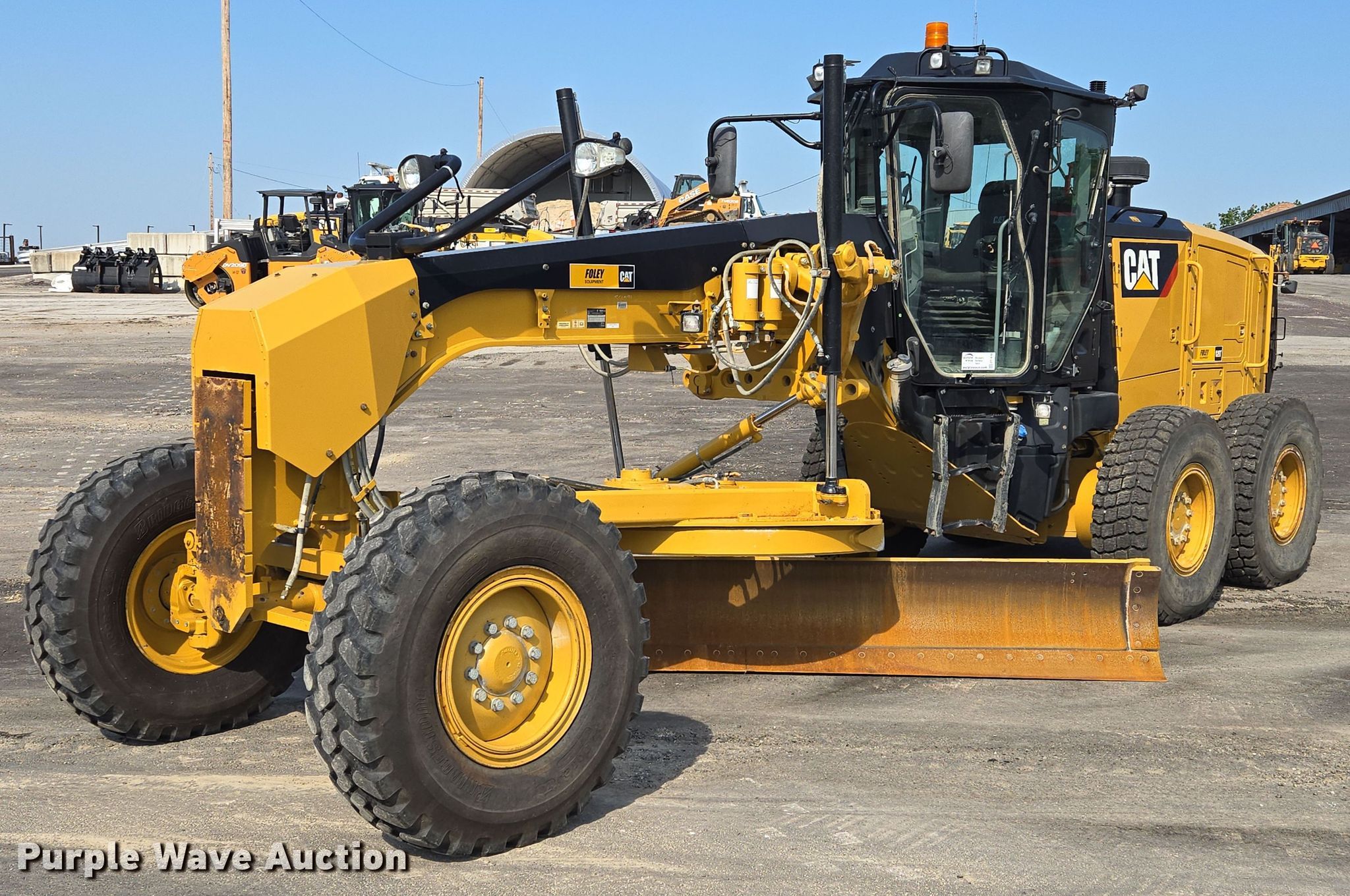 Purple Wave is selling a used Motor Grader in Kansas. This item is a 2018 Caterpillar 140M3 motor grader with the following: Hours: 6,714 on meter, Serial: CAT0140MVN9D01269