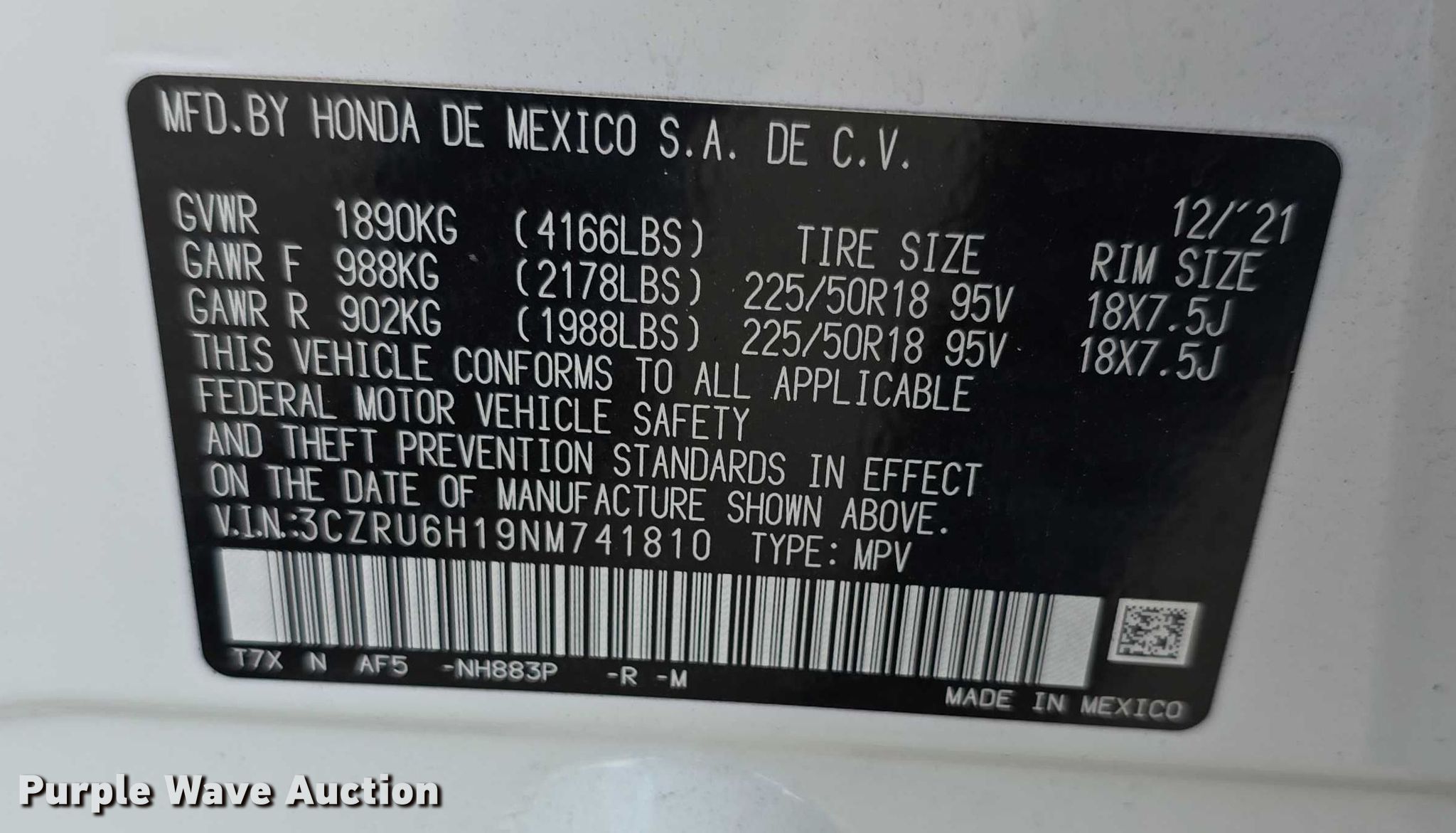 Purple Wave is selling a used Passenger Vehicle in Kansas. This item is a 2022 Honda HR-V Sport SUV with the following: Miles: 45,524 on odometer, VIN: 3CZRU6H19NM741810