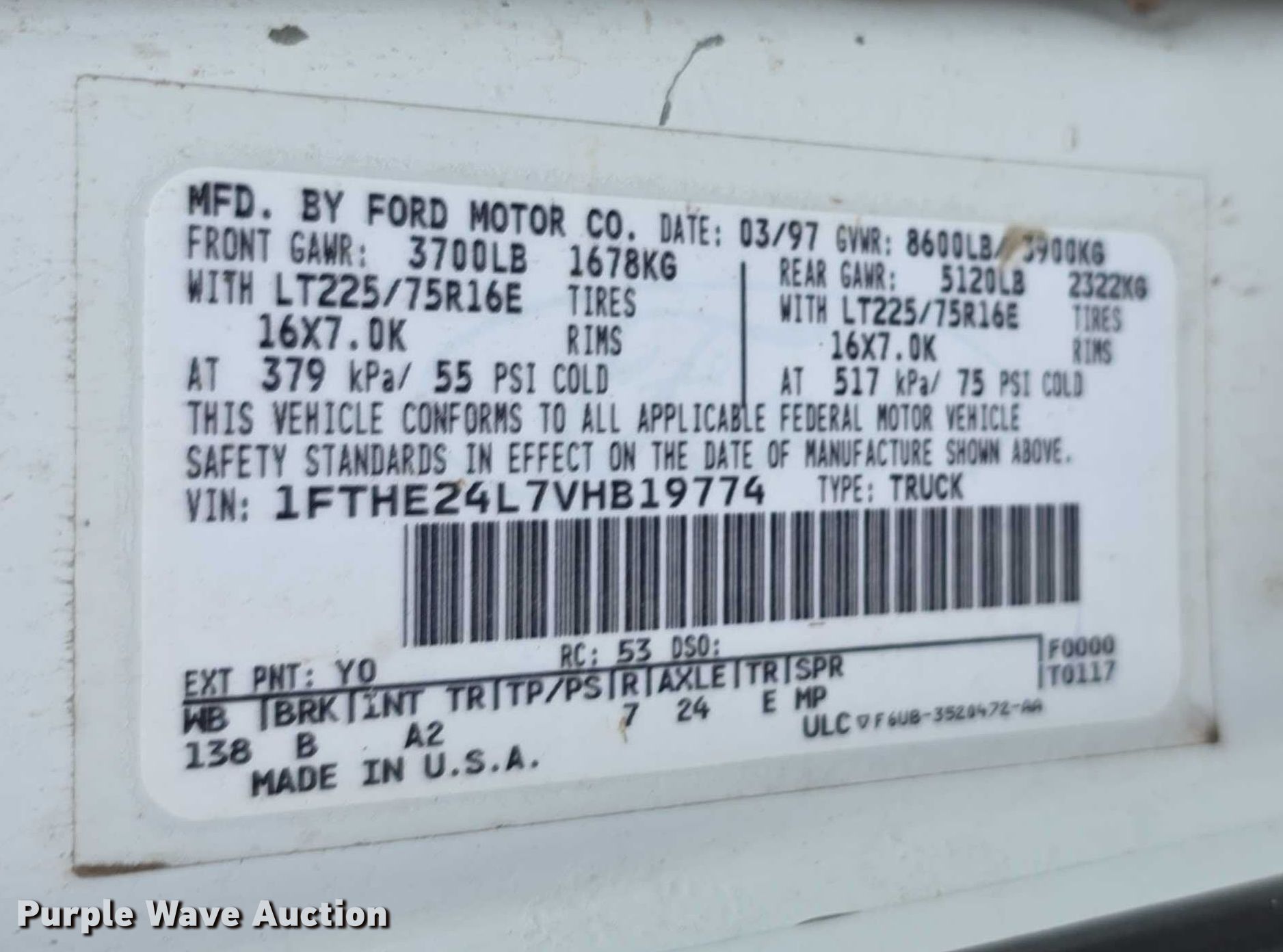 Purple Wave is selling a used 3/4 or 1 Ton Pickup or Van in Kansas. This item is a 1997 Ford Econoline E250 van with the following: Miles: 119,239 on odometer, VIN: 1FTHE24L7VHB19774, Unit #: 20