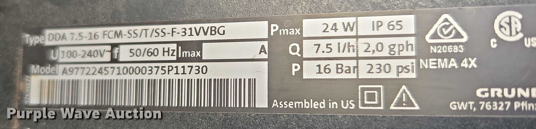 Purple Wave is selling a used Pump in Oklahoma. This item is a (3) Grundfos chemical pumps with the following: Sale #: 2610-KP, PSI: 230