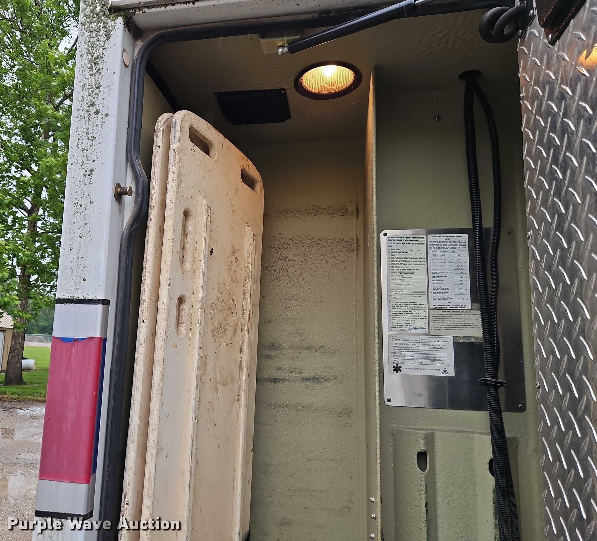 Purple Wave is selling a used Fire Truck or Emergency Vehicle in Missouri. This item is a 1999 Ford E450 ambulance with the following: Miles: 218,047 on odometer, VIN: 1FDXE40FXXHA79096