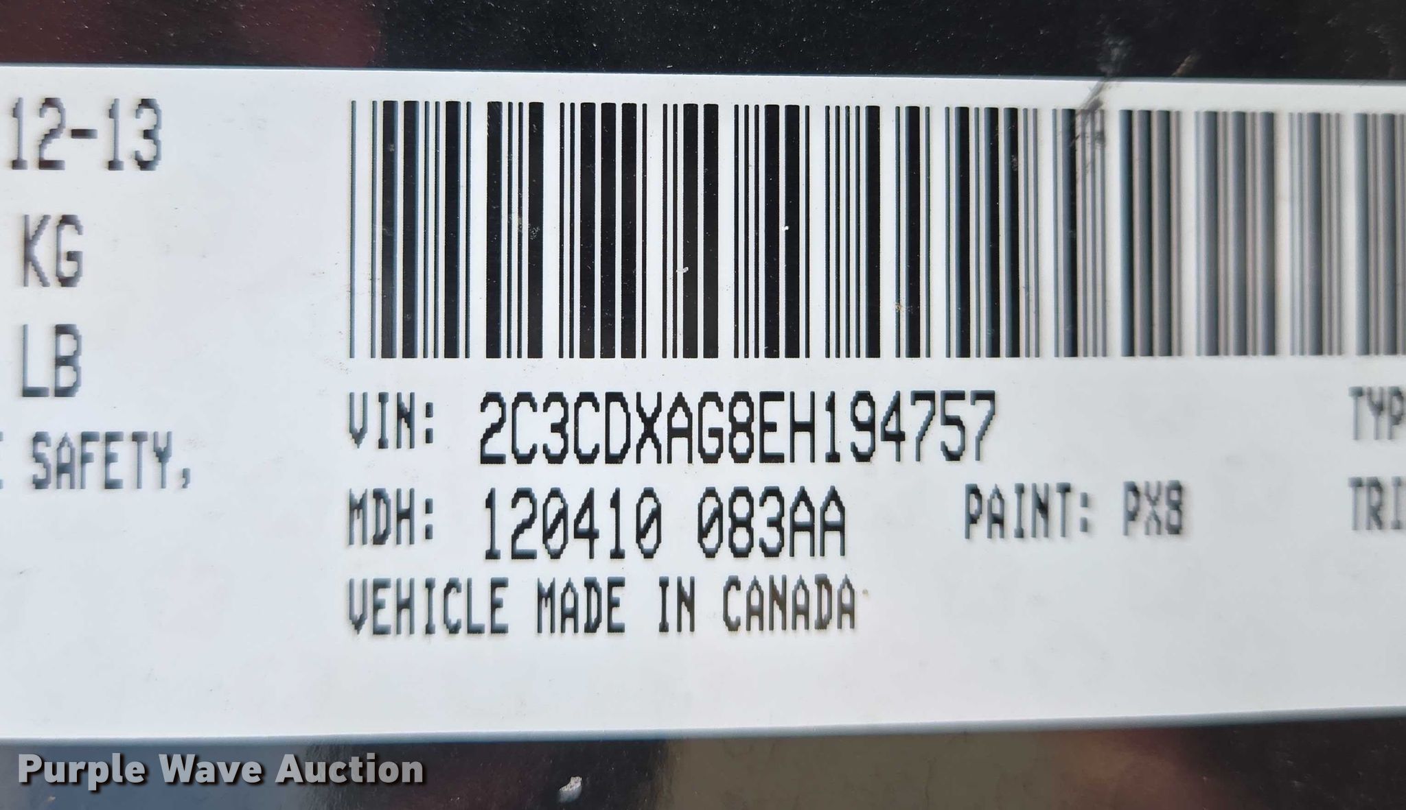 - VIN: 2C3CDXAG8EH194757