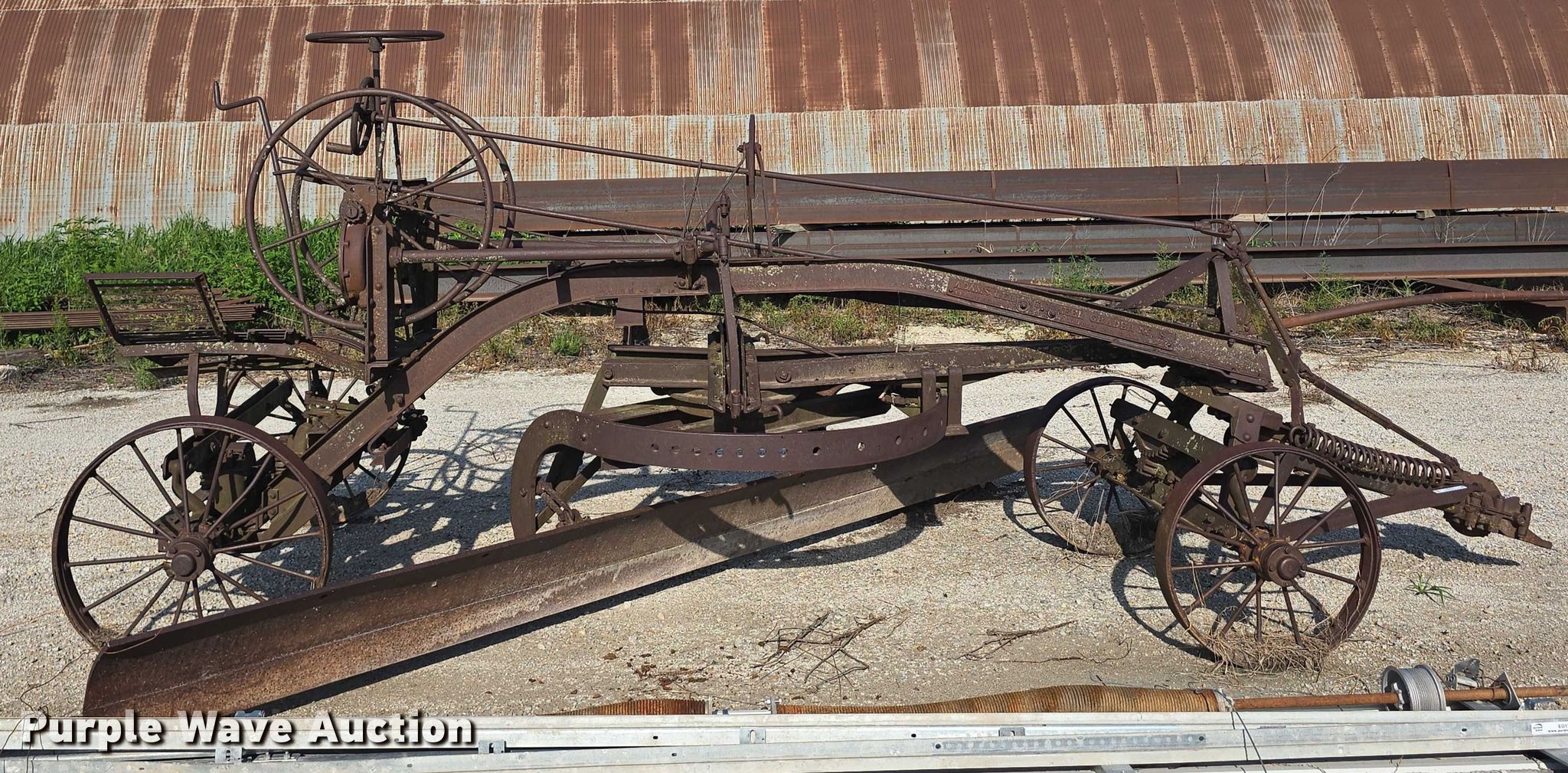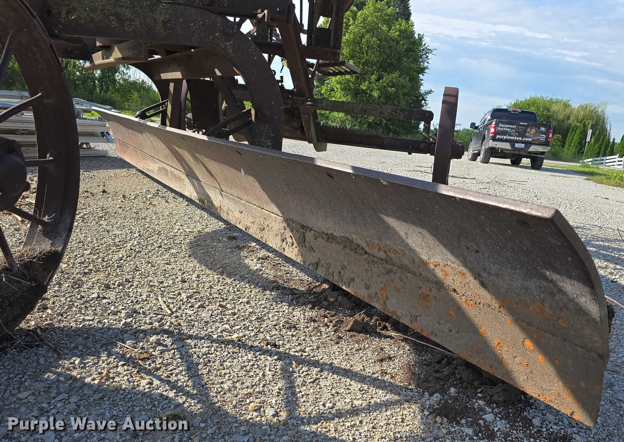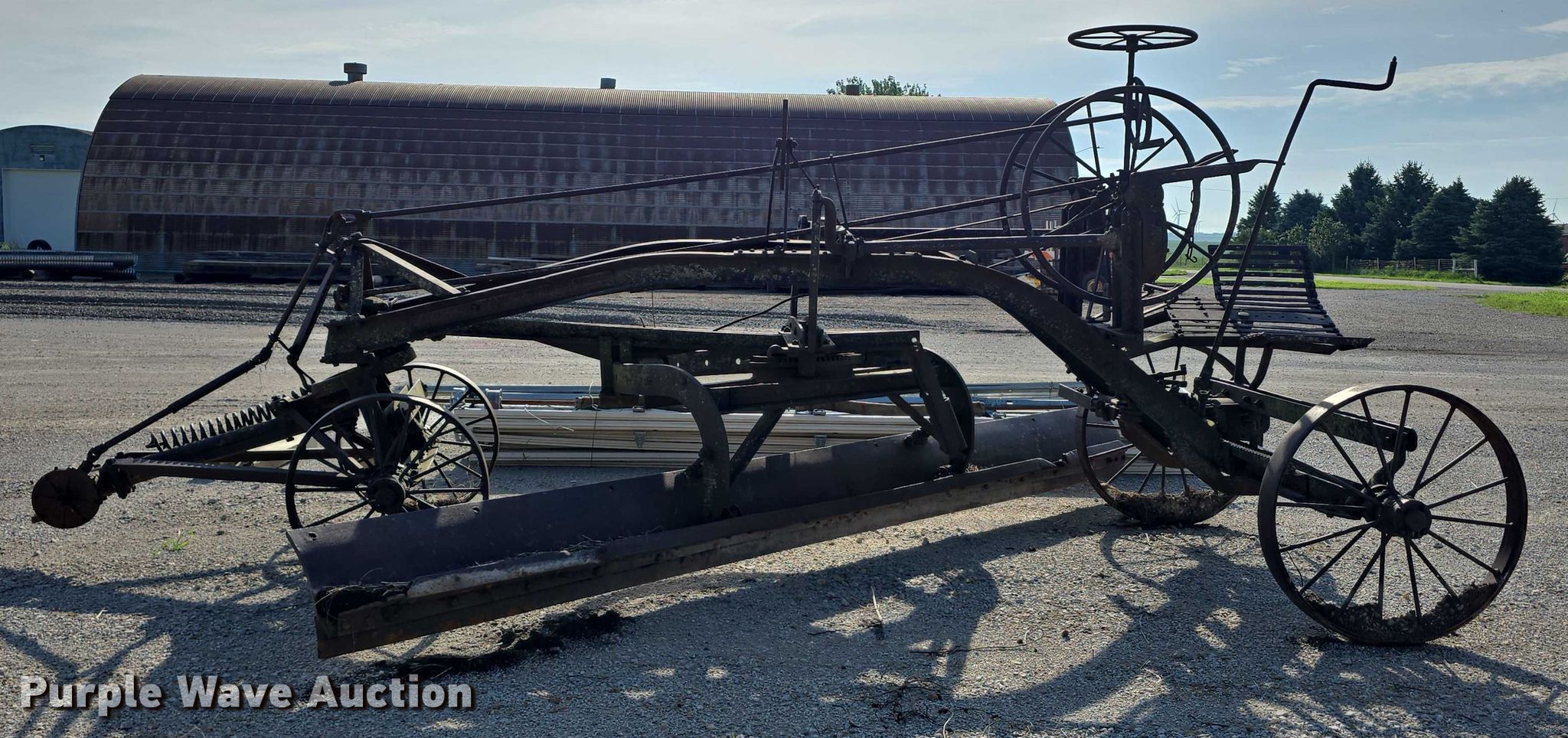 Purple Wave is selling a used Pull Type Scraper in Iowa. This item is a Adams Leaning Wheel Grader No 8 pull type grader with the following: Length: 16', Steel wheels, Unknown operating condition