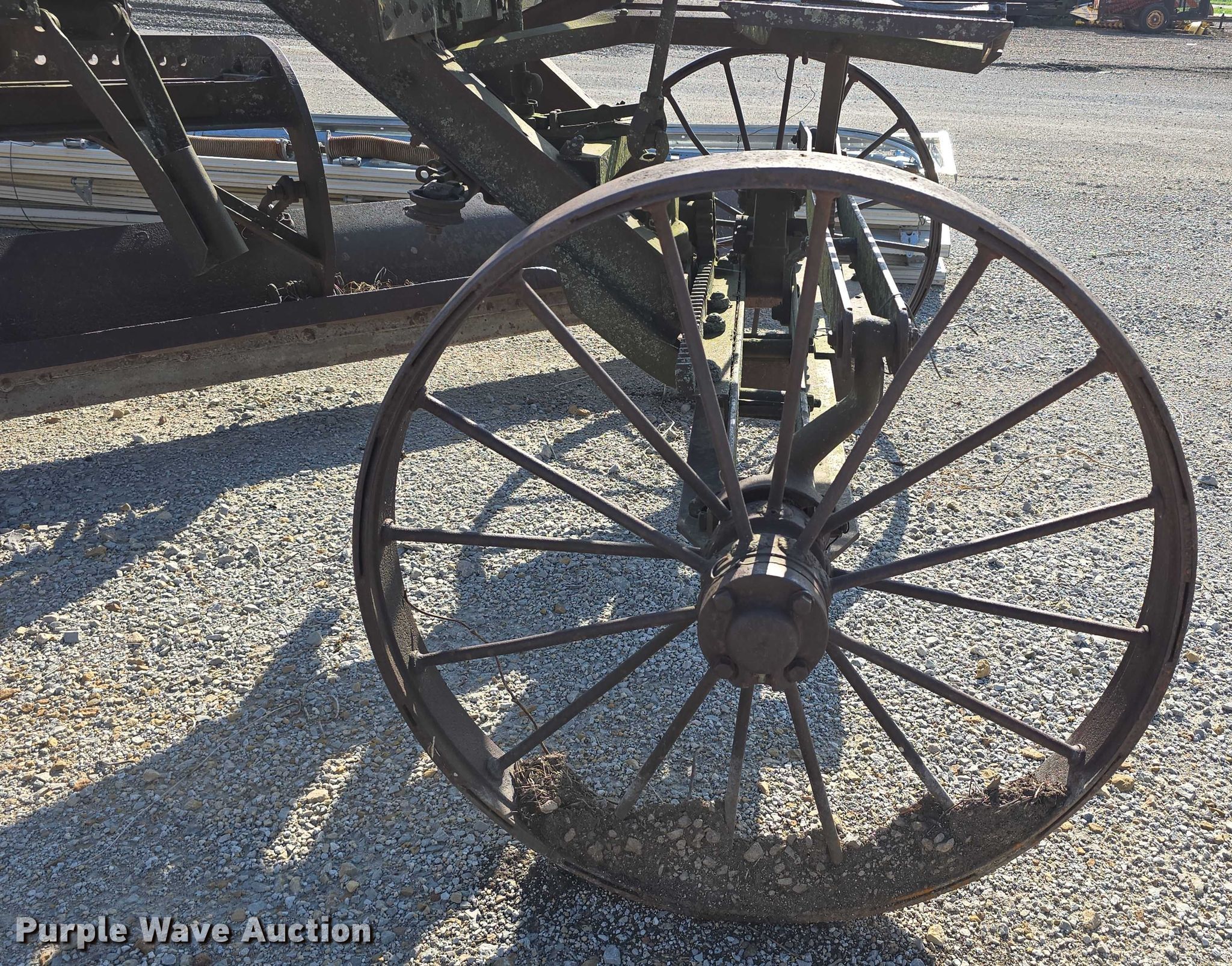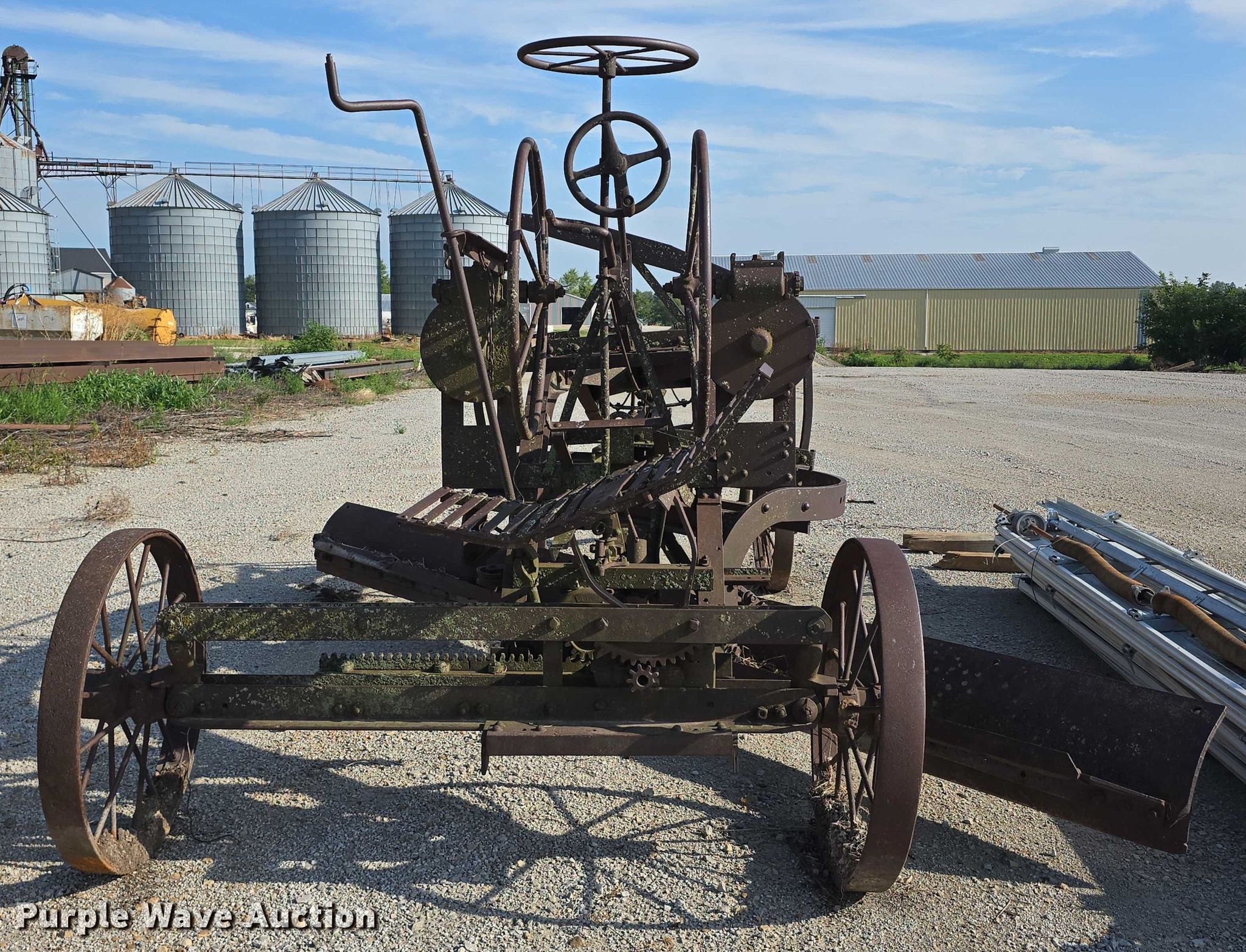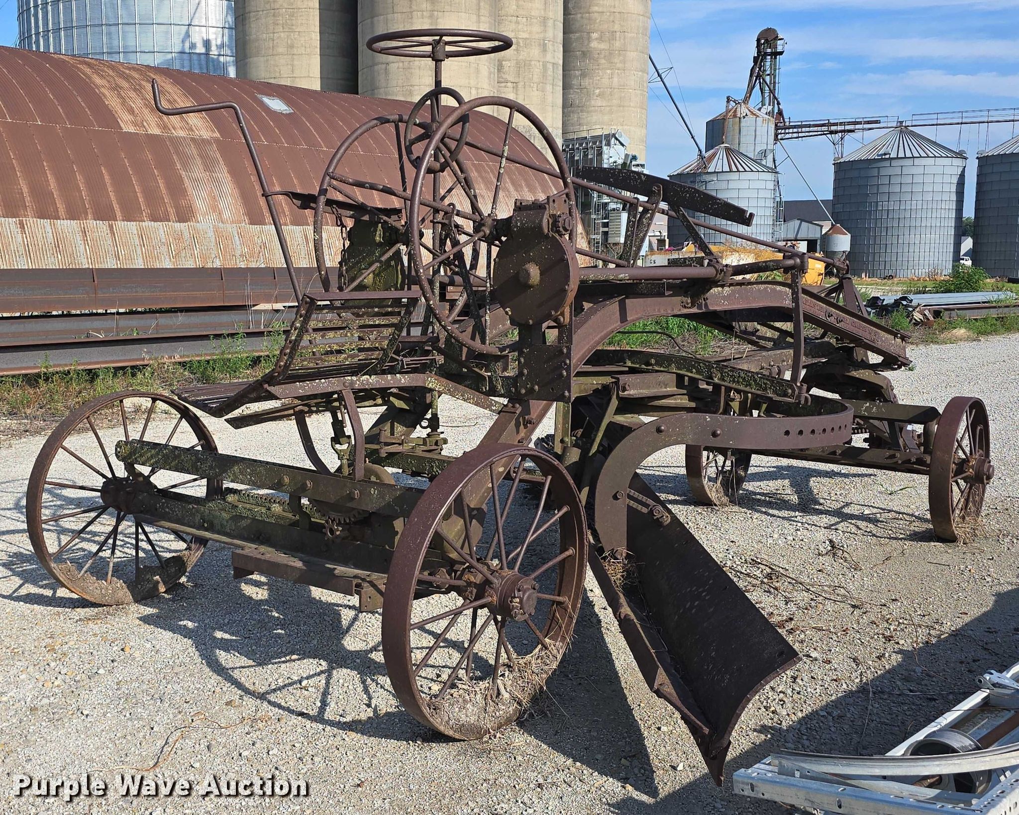 Purple Wave is selling a used Pull Type Scraper in Iowa. This item is a Adams Leaning Wheel Grader No 8 pull type grader with the following: Length: 16', Steel wheels, Unknown operating condition