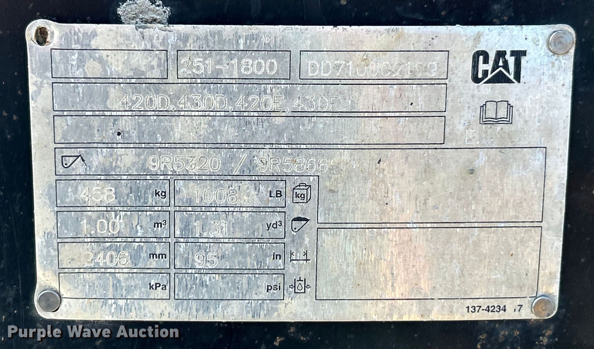 2003 Caterpillar 420D backhoe. Hours: 4,578 on meter, Serial: CAT0420DTBLN05716. Engine Perkins, Displacement: 3.9L, Cylinders: 4, Fuel type: Diesel. Transmission Powershift, 4F - 4R. Chassis Four wheel drive, Differential lock. Operators station Enclosed cab, AC, Heat, Backhoe controls: Pilot control. Features Loader IT Carrier, Auxiliary hydraulics, Bucket Caterpillar, Width: 95", Cutting edge: Bolt-on, Backhoe Extendable stick, Quick coupler: Hydraulic, Auxiliary hydraulics, Bucket Caterpillar, Width: 24", Teeth: 5.. Tires Front: 340/80R18, Rear: 19.5L-24. Notes Hydraulic cylinder leak. City of Waterloo, IL. Waterloo, IL 62298