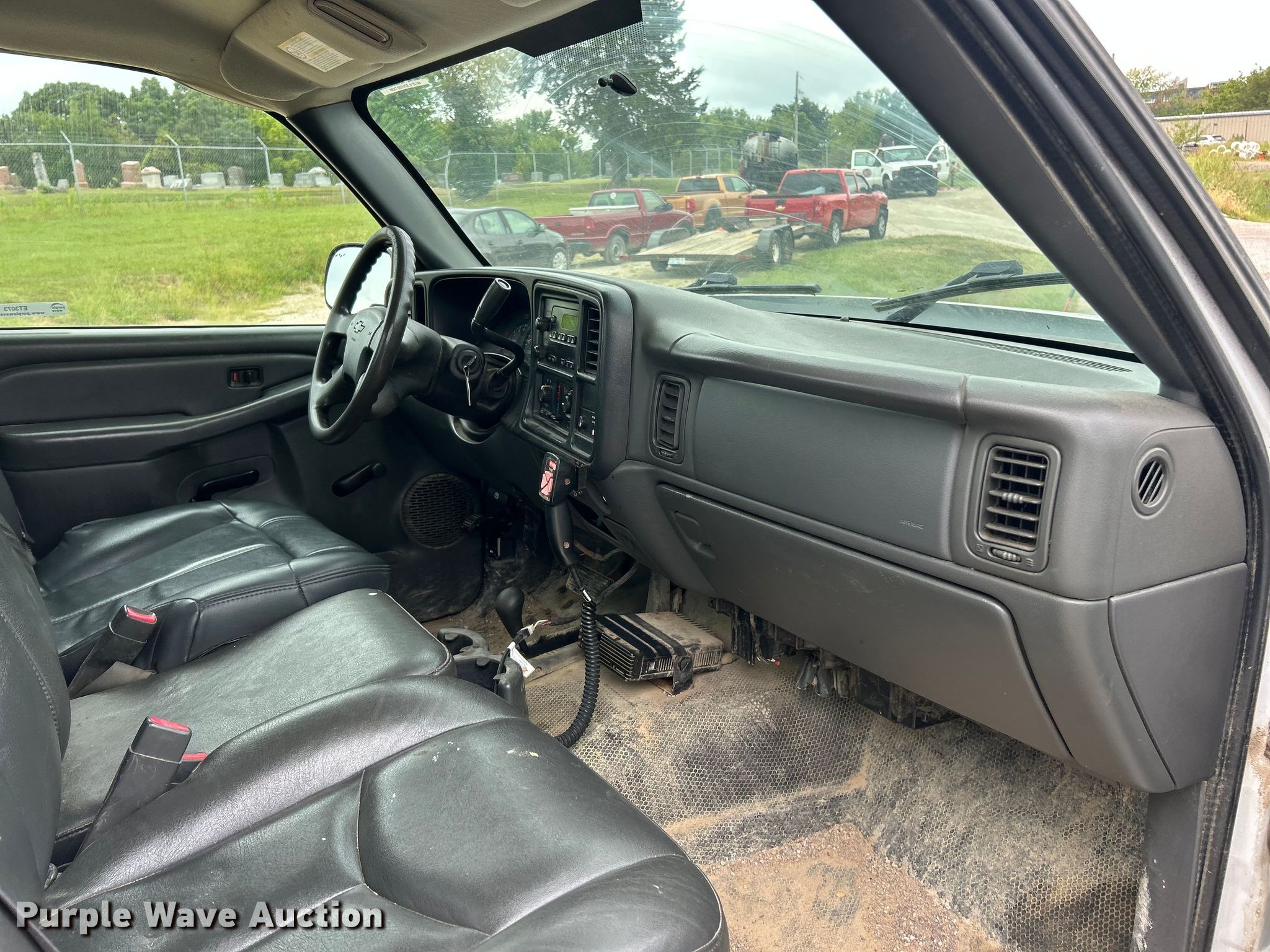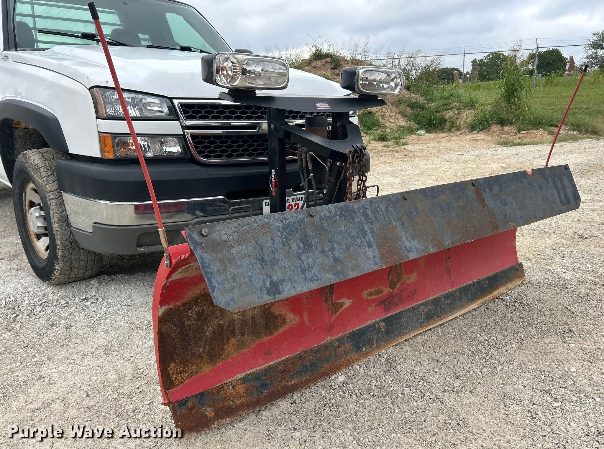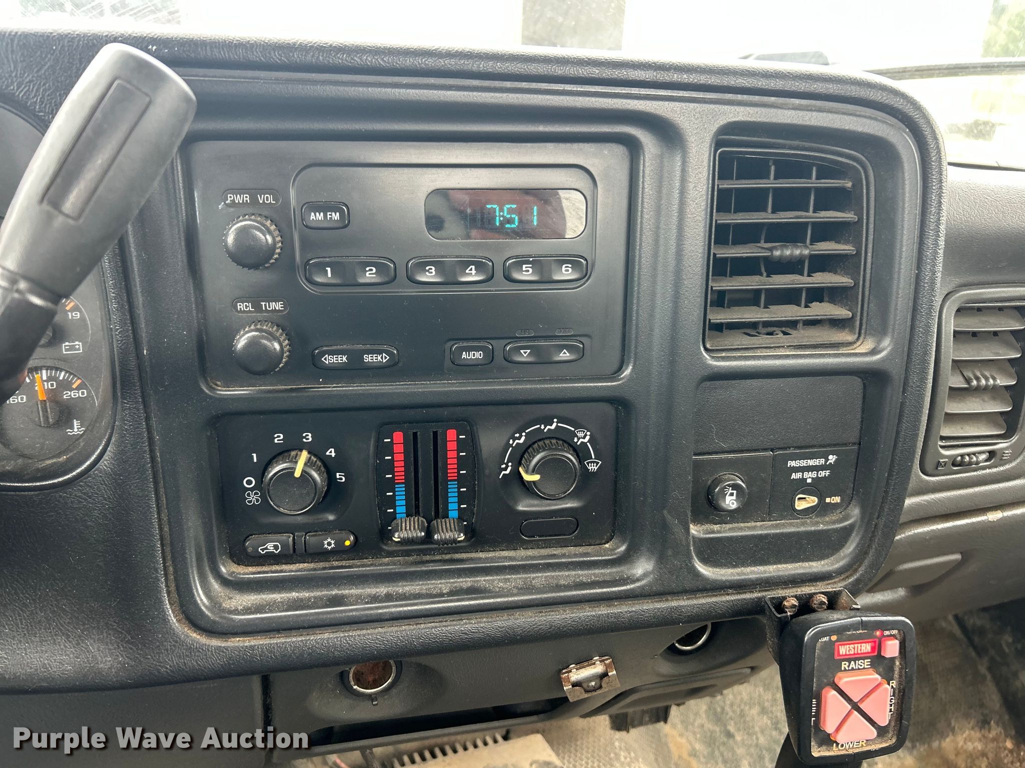2005 Chevrolet Silverado 3500 flatbed pickup truck. Miles: 53,818 on odometer, VIN: 1GCHK34U85E297007. Engine Displacement: 6.0L V8 OHV, Cylinders: 8, Fuel type: Gas. Transmission Automatic, Four wheel drive. Interior AC, Heat. Features Bed Flatbed, CM, Length: 8' 6", Width: 80", Hitch: Gooseneck, Snow plow Western, Width: 90". Tires Size: 265/75R16. Notes Dash warning indicator: Check engine, ABS, Brake, Airbag, Parking brake line damaged, Possible AC issues, may need charged. Missouri title. Title distribution may be delayed up to 14 days from verification of funds. City of St. Clair, MO. Saint Clair, MO 63077