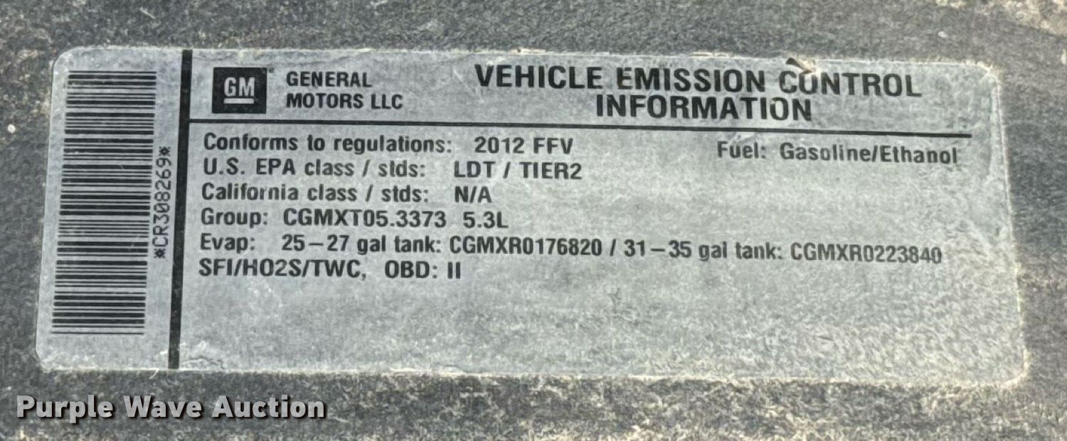 Purple Wave is selling a used Passenger Vehicle in Oklahoma. This item is a 2012 Chevrolet Tahoe Police SUV with the following: Miles: 96,565 on odometer, VIN: 1GNSK2E06CR308269