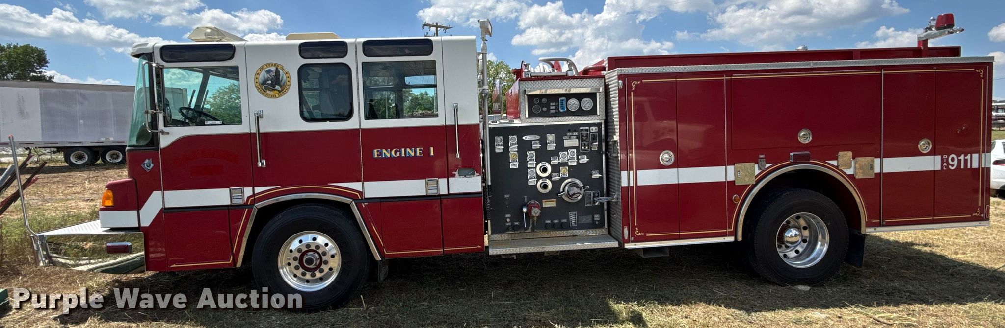 Purple Wave is selling a used Fire Truck or Emergency Vehicle in Oklahoma. This item is a 1997 Pierce Manufacturing Quantum pumper fire truck with the following: VIN: 4P1CT02S6VA000595