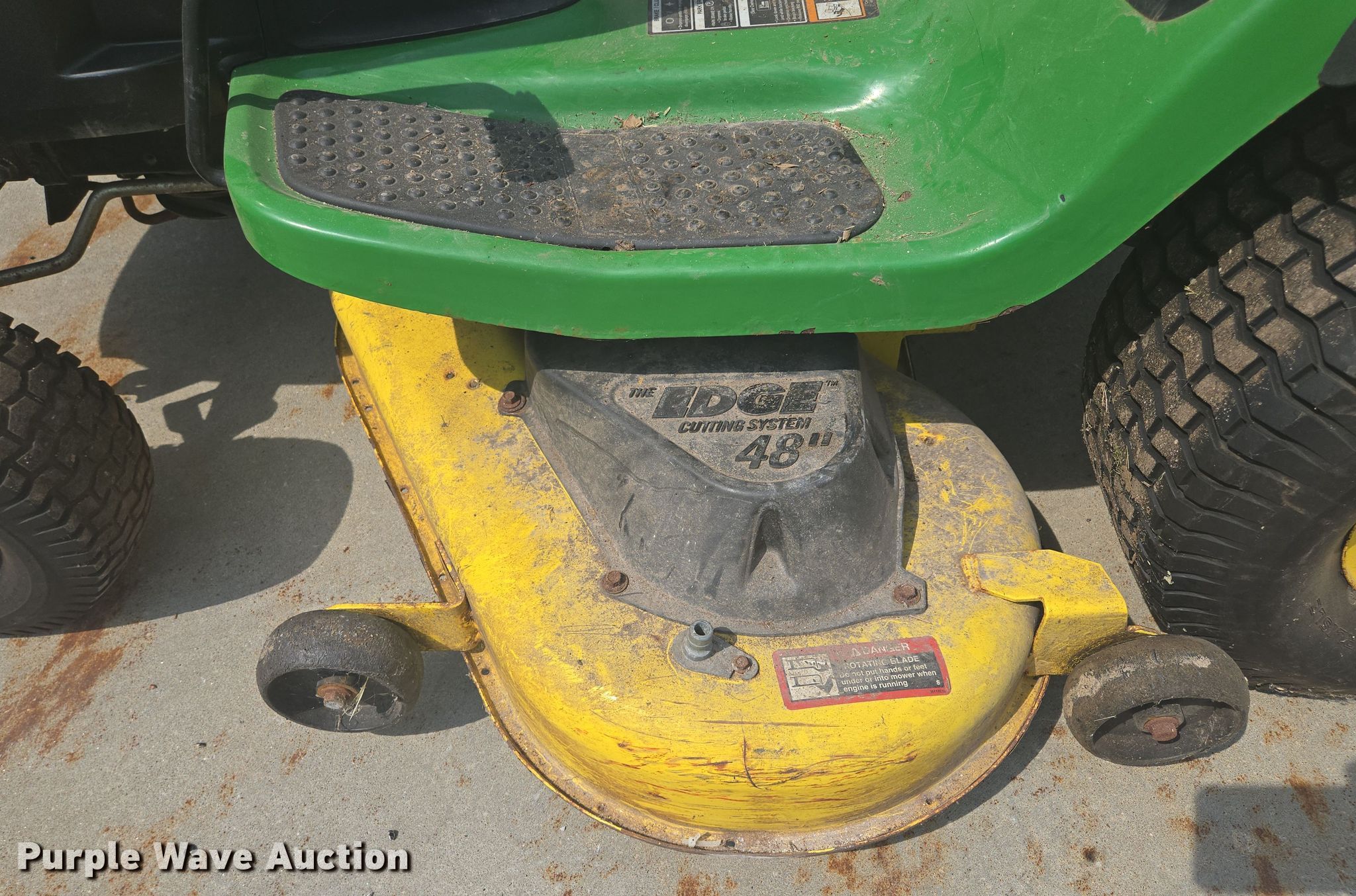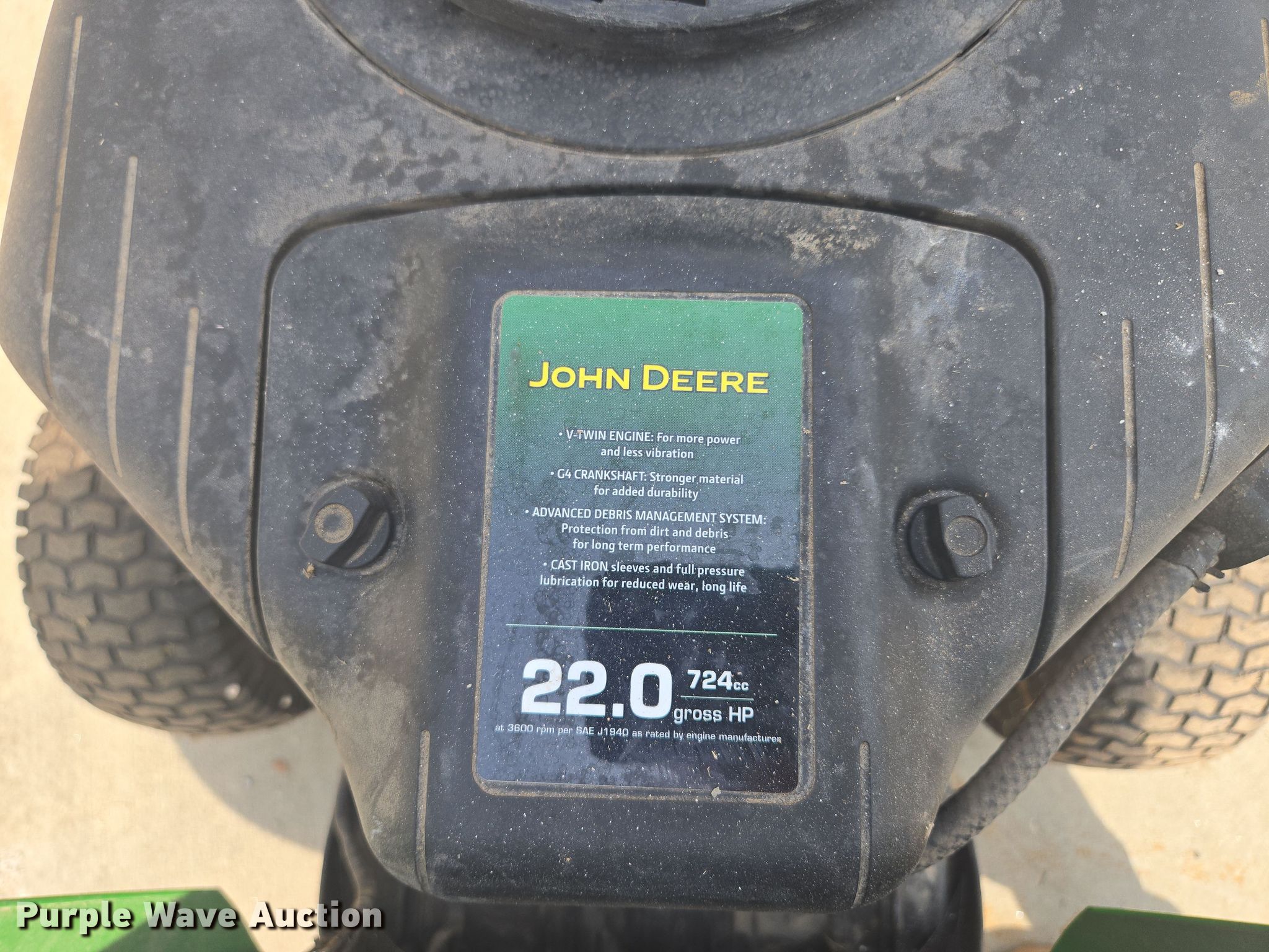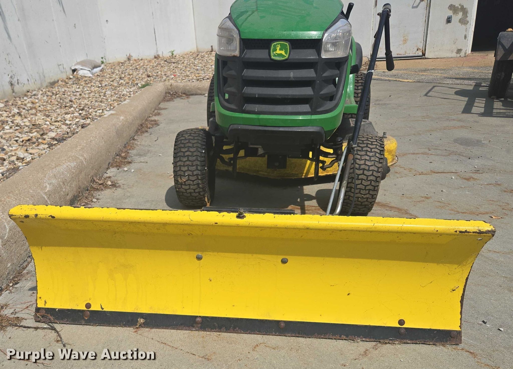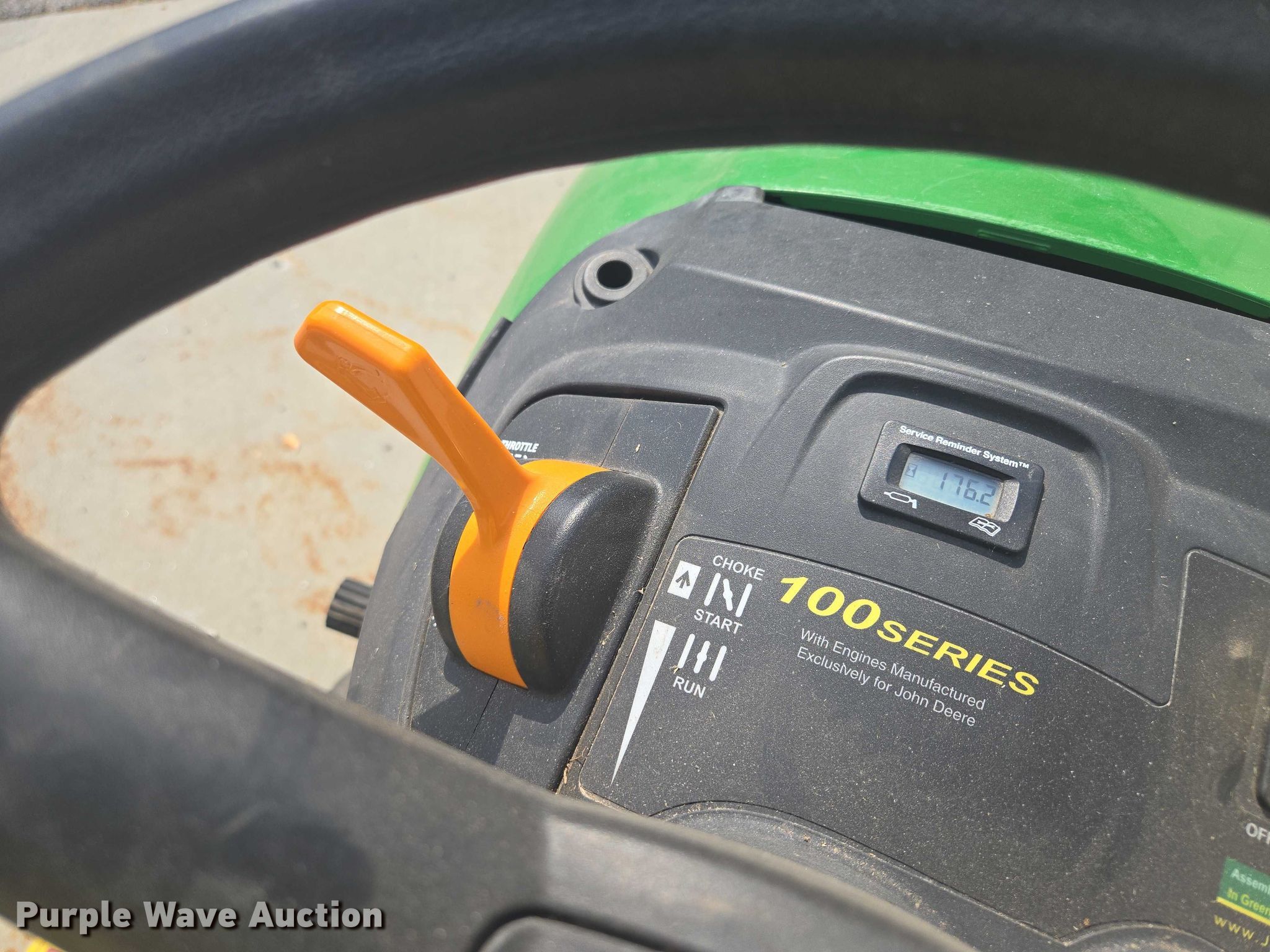 Purple Wave is selling a used Lawn Mower in Kansas. This item is a 2015 John Deere D140 lawn mower with the following: Hours: 176 on meter, Cutting width: 48", Serial: 1GXD140EAFF605970