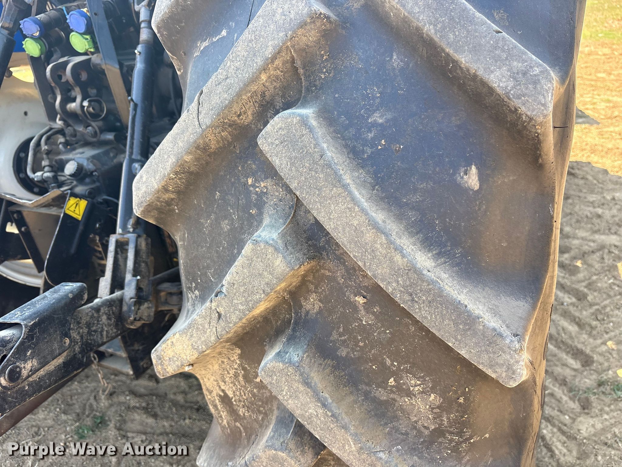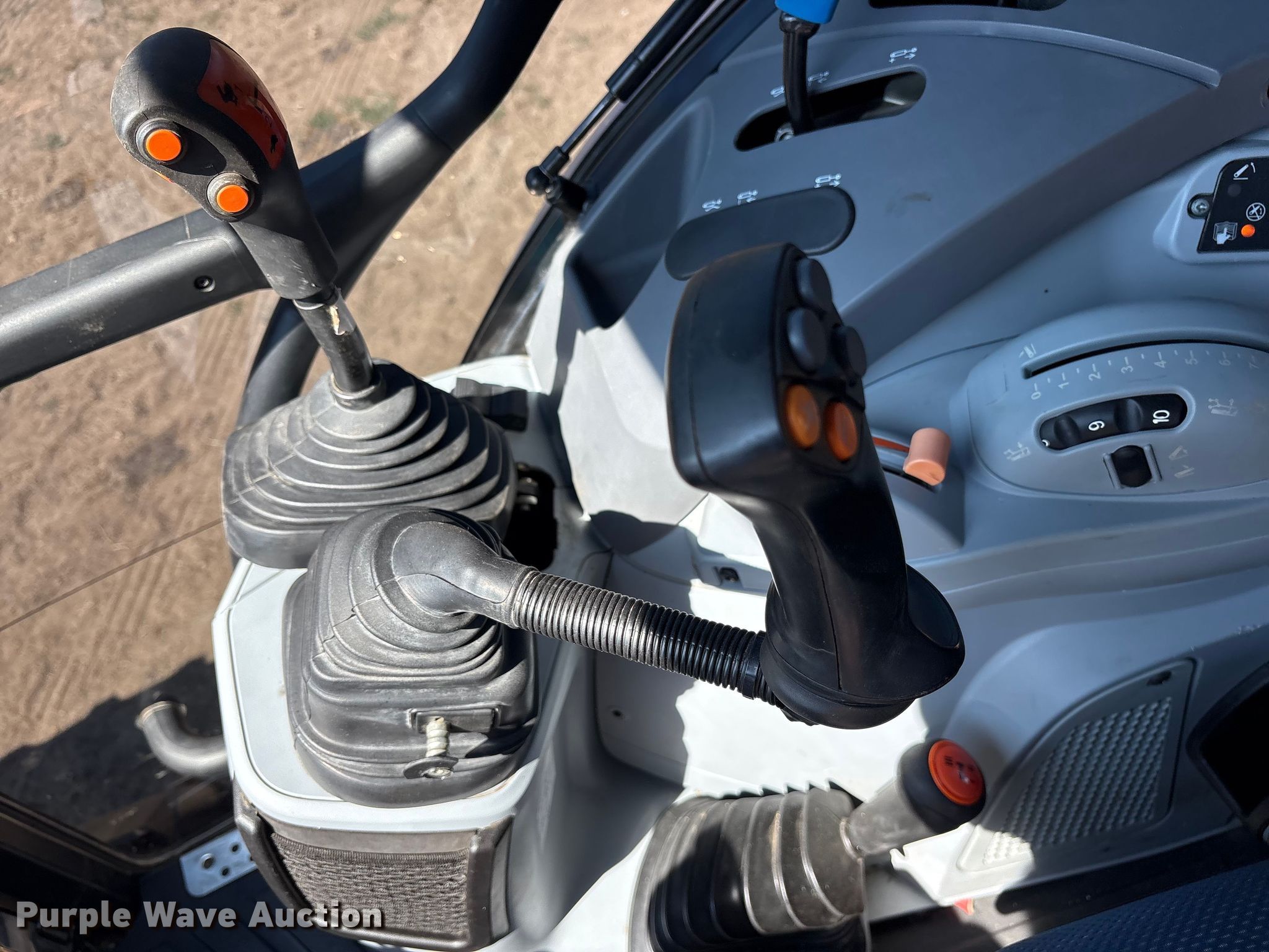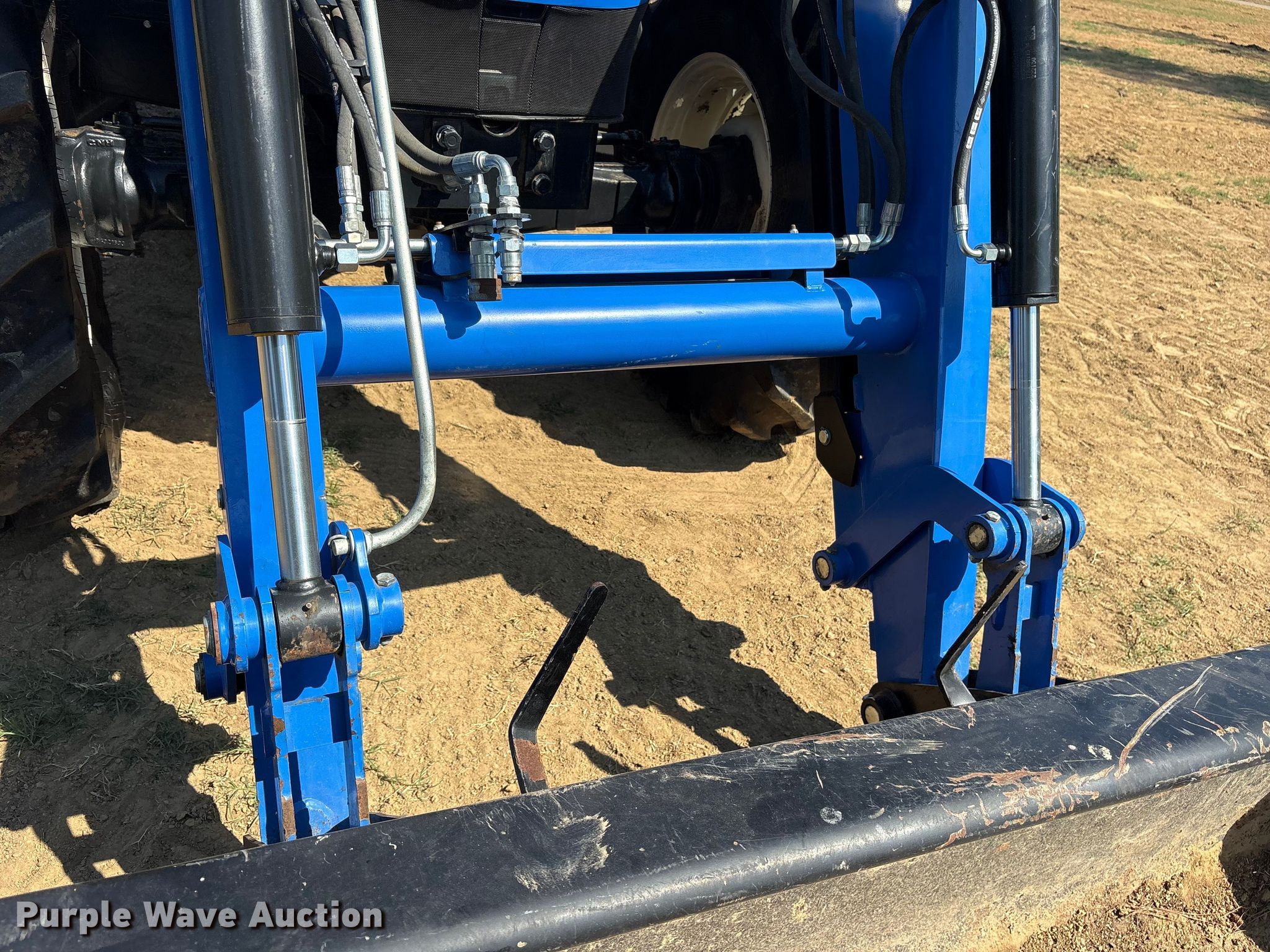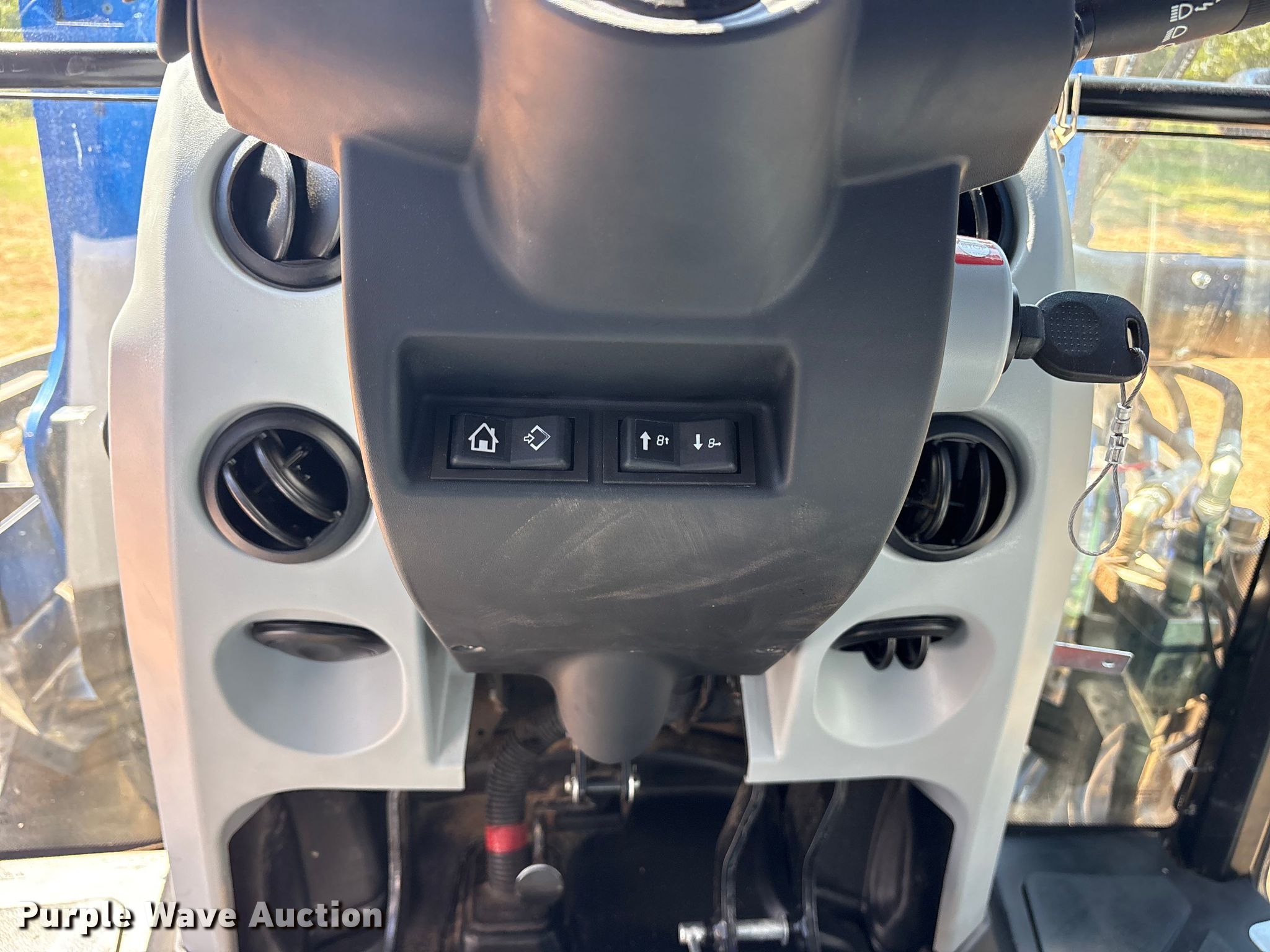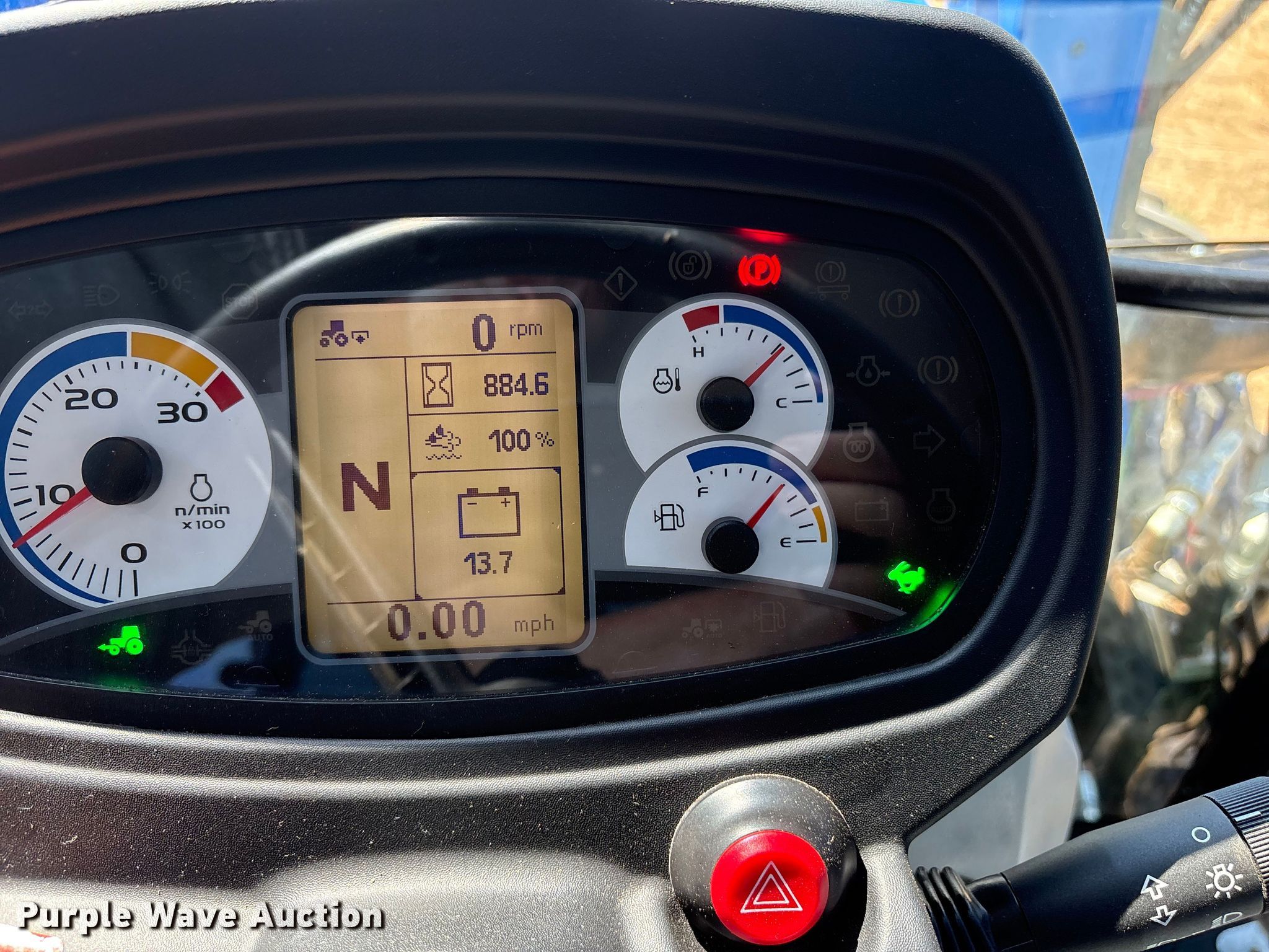 2022 New Holland T5.110 MFWD tractor. Hours: 885 on meter, Miles or hours may vary, unit still in use, Serial: HLRT5110JNL108949. Engine New Holland F5LGL413C, Displacement: 3.6L, Cylinders: 4, Fuel type: Diesel, HP: 99. Transmission Dual power, 24F - 24R, Left-hand reverser, Differential lock. Operators station AC, Heat. Features PTO: 540, 1000, Three point, Seven pin outlet, Hydraulic remote sets Rear: 2, Loader New Holland 720LU, Controls: Joystick, Bucket Width: 85".. Tires Front: 380/85R24, Rear: 460/85R34, Wheel weights: 4. Broken Bow, OK 74728