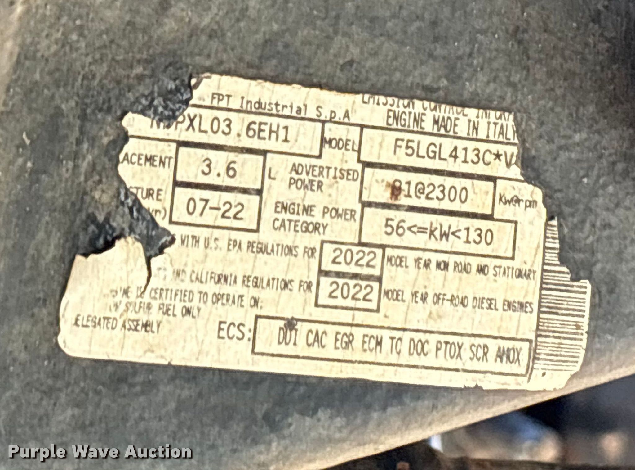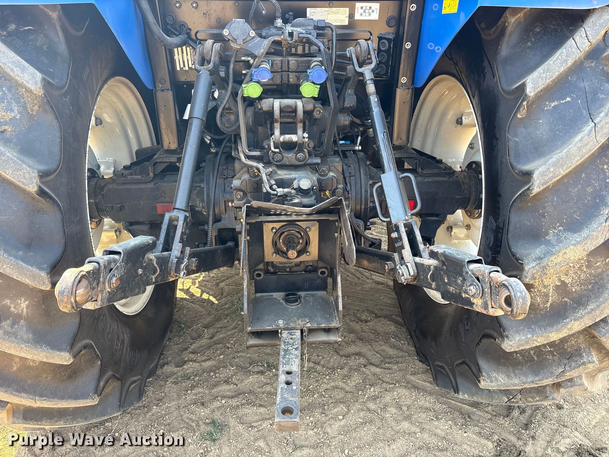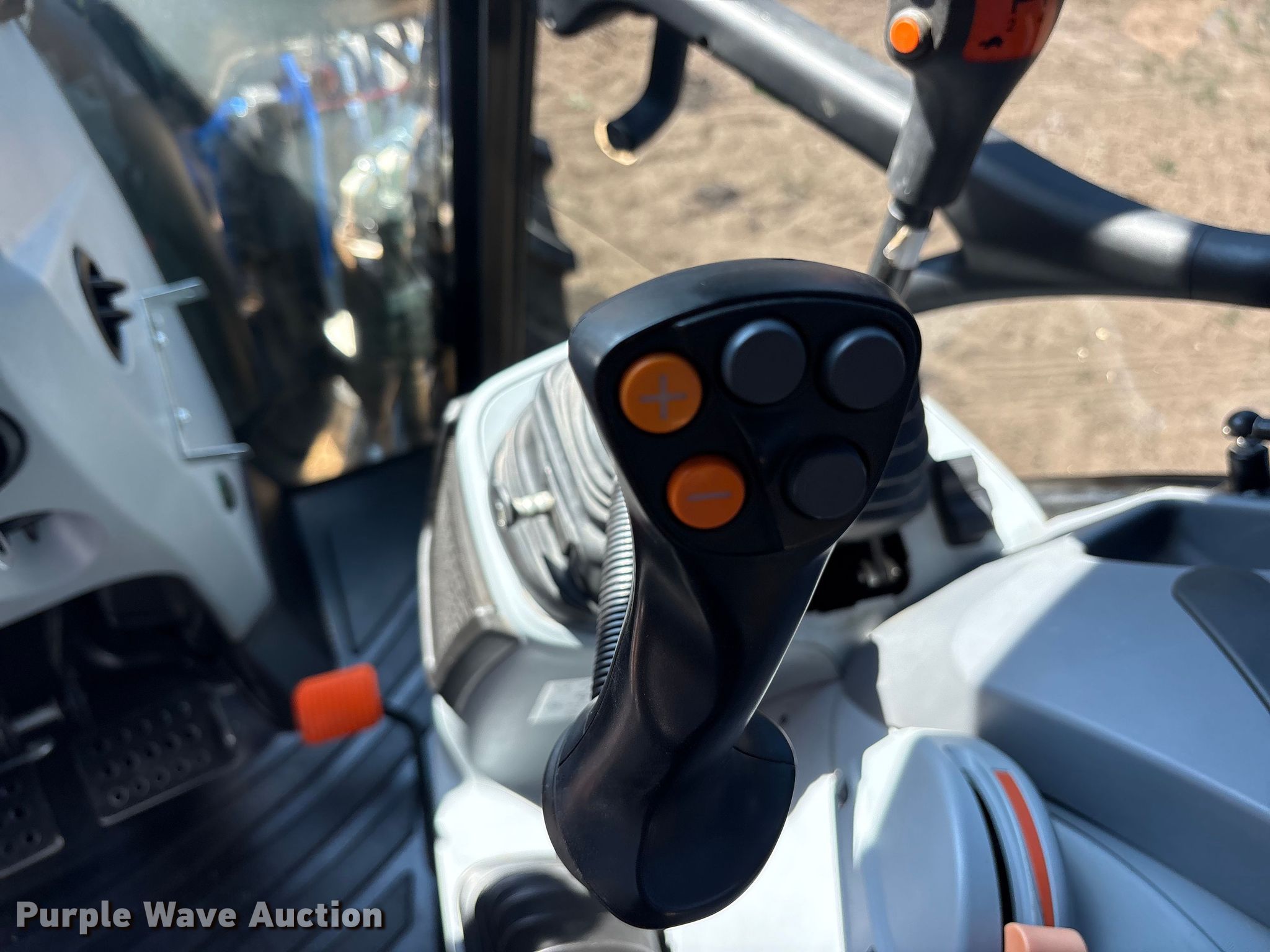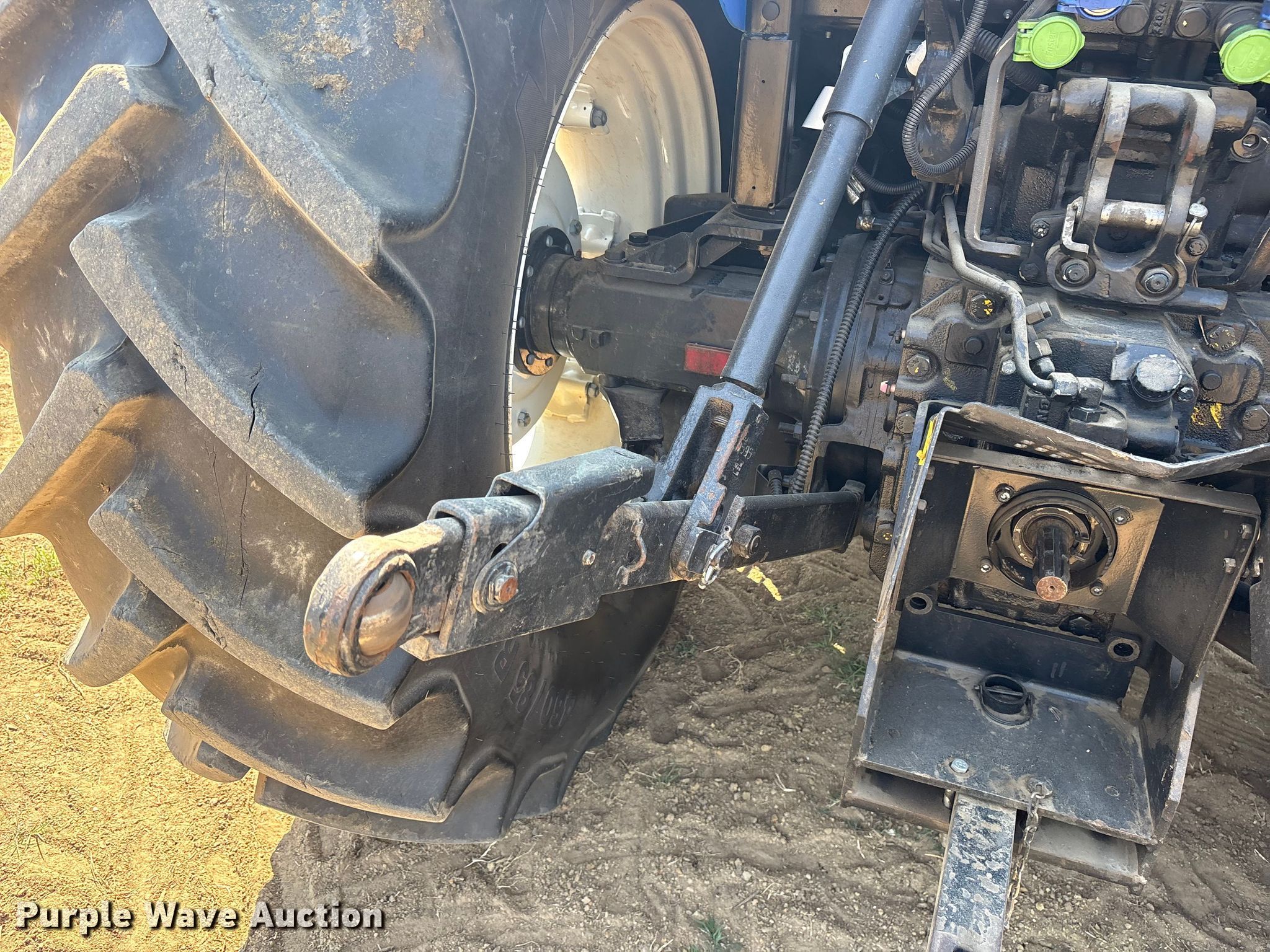 2022 New Holland T5.110 MFWD tractor. Hours: 885 on meter, Miles or hours may vary, unit still in use, Serial: HLRT5110JNL108949. Engine New Holland F5LGL413C, Displacement: 3.6L, Cylinders: 4, Fuel type: Diesel, HP: 99. Transmission Dual power, 24F - 24R, Left-hand reverser, Differential lock. Operators station AC, Heat. Features PTO: 540, 1000, Three point, Seven pin outlet, Hydraulic remote sets Rear: 2, Loader New Holland 720LU, Controls: Joystick, Bucket Width: 85".. Tires Front: 380/85R24, Rear: 460/85R34, Wheel weights: 4. Broken Bow, OK 74728