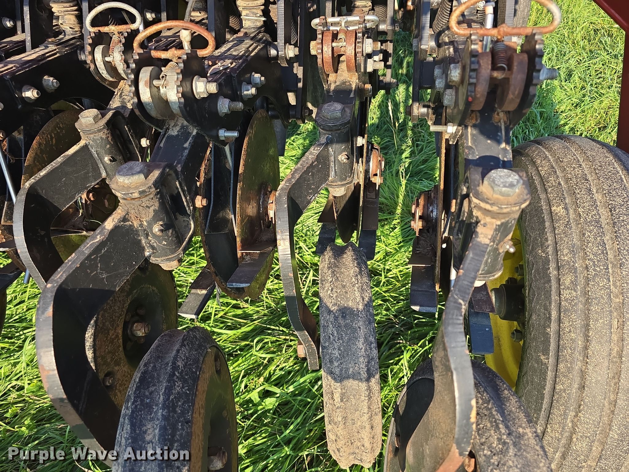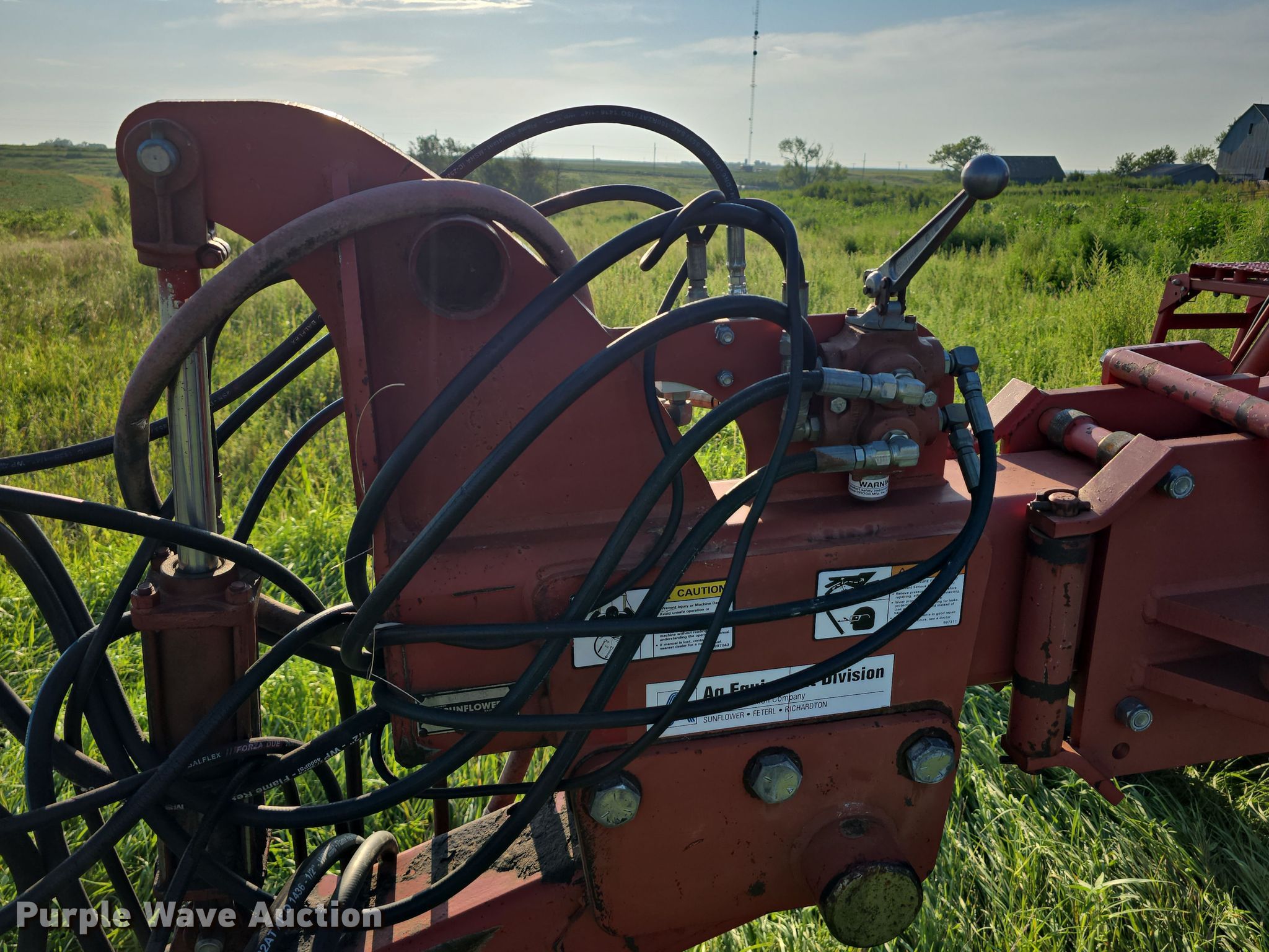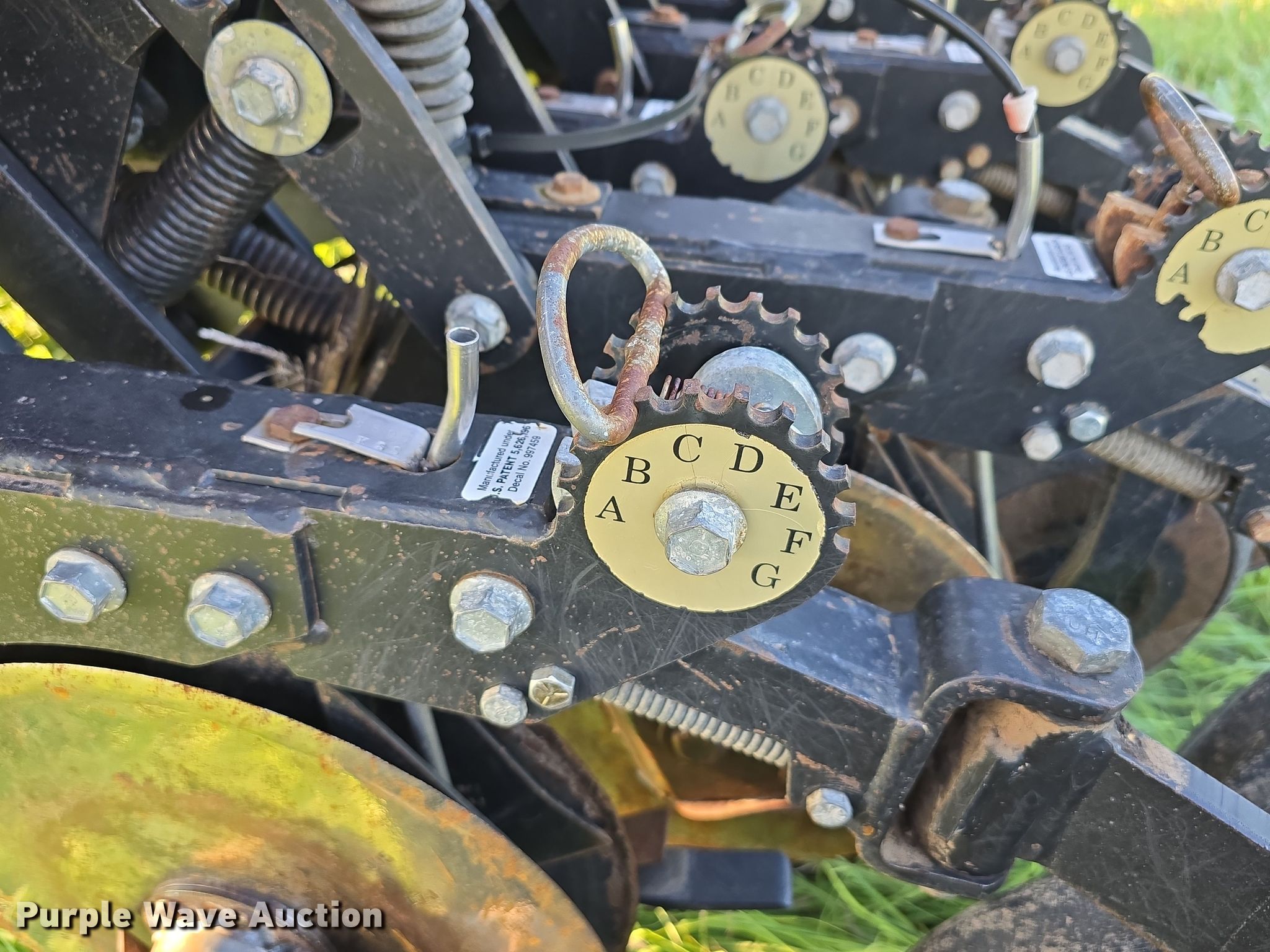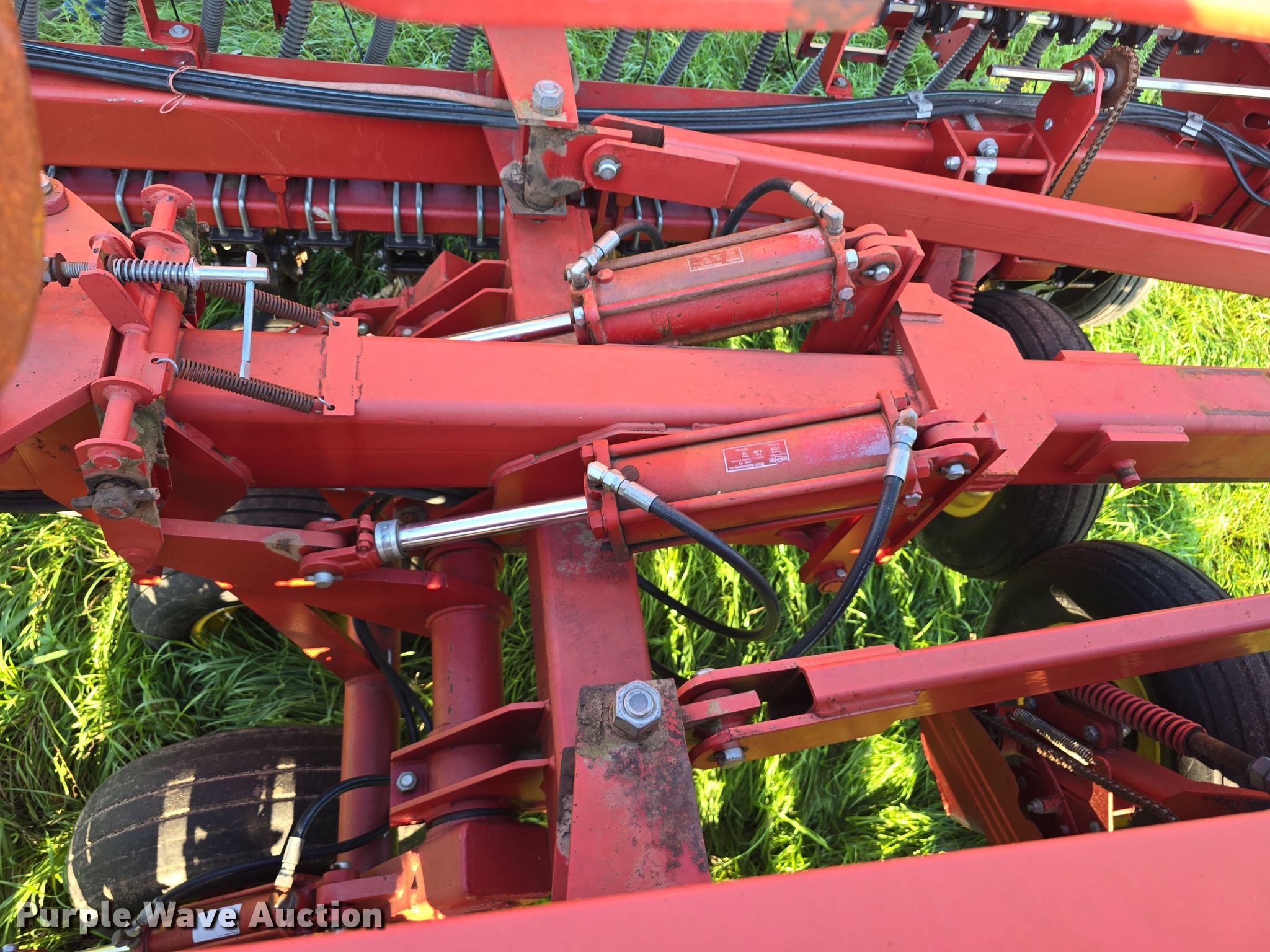 Sunflower 9421-25 grain drill. Width: 25', Row units: 40, Row spacing: 7.5", Serial: 09421B20010007. Features Frame Marker arm, Fold type: Front, Seed delivery Bulk fill system, Row units Meter drive: Ground, Down pressure: Spring, Disk openers: Double, Gauge wheels: Single, Closing system: Single Type: Rubber.. Tires Transport tire size: 11L-15S Quantity: 4, Drive/ outside tire size: 9.5L-15SL Quantity: 6. Notes Marker arm issues, hydraulic leak. Superior, NE 68978