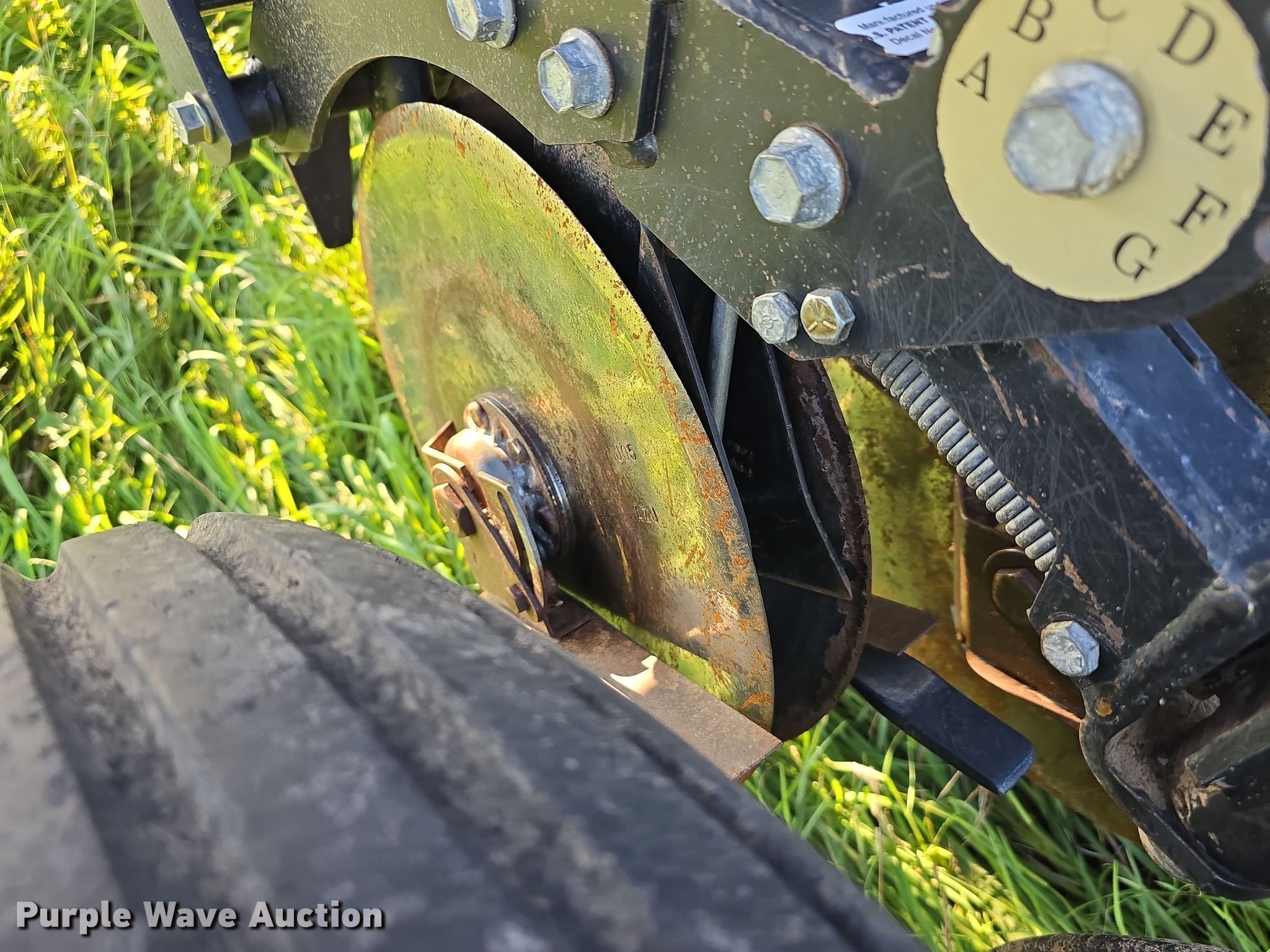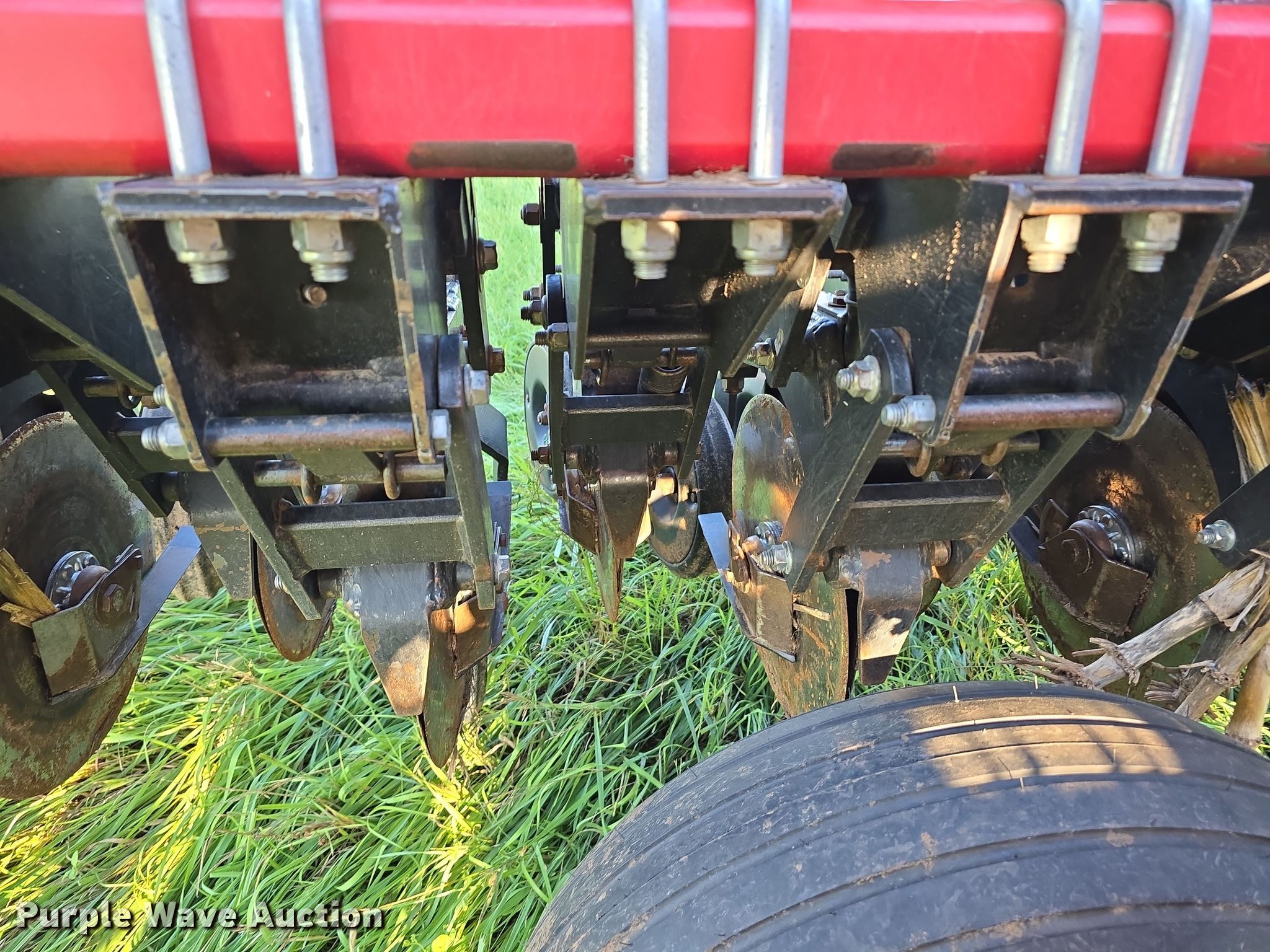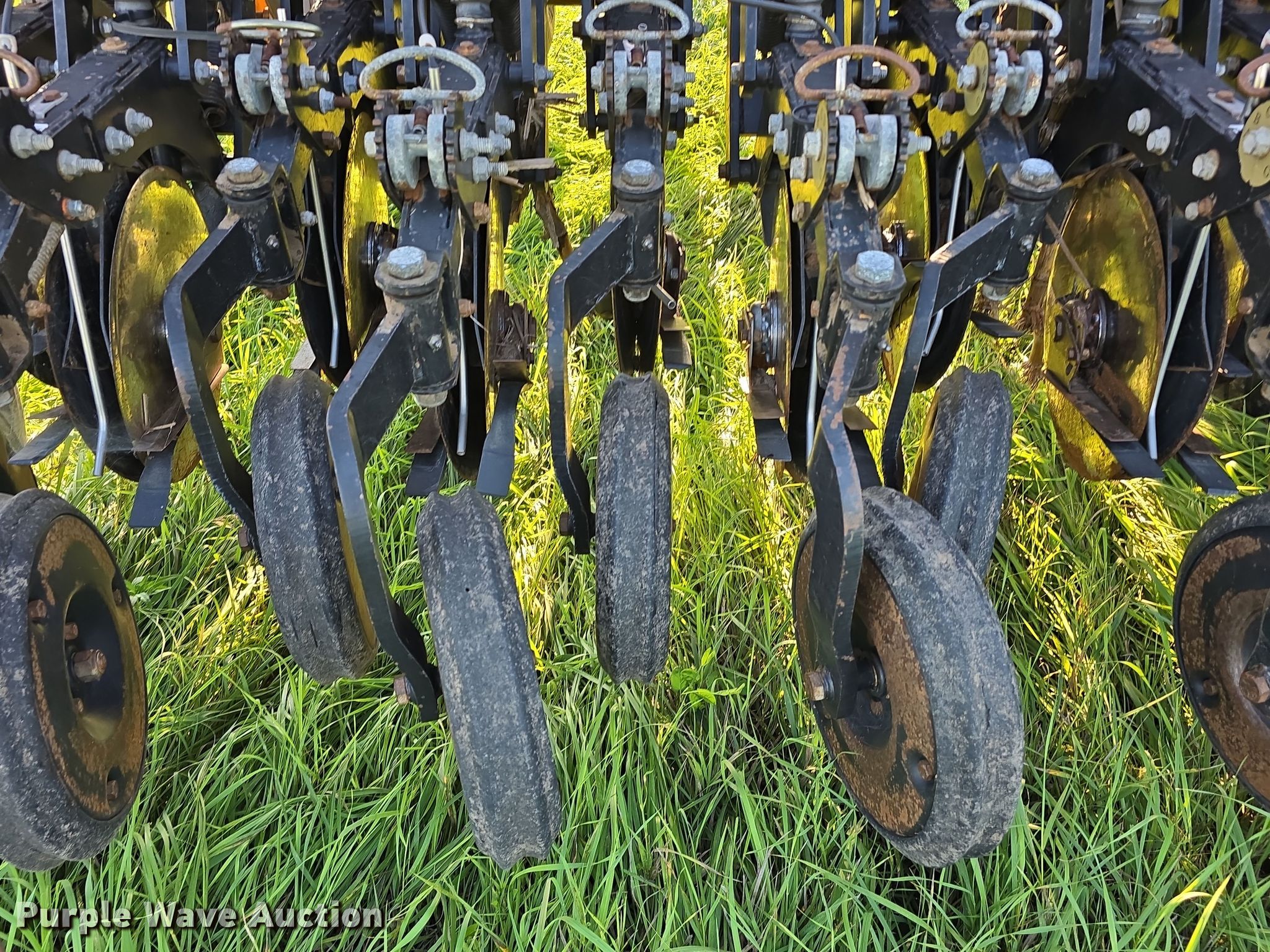 Sunflower 9421-25 grain drill. Width: 25', Row units: 40, Row spacing: 7.5", Serial: 09421B20010007. Features Frame Marker arm, Fold type: Front, Seed delivery Bulk fill system, Row units Meter drive: Ground, Down pressure: Spring, Disk openers: Double, Gauge wheels: Single, Closing system: Single Type: Rubber.. Tires Transport tire size: 11L-15S Quantity: 4, Drive/ outside tire size: 9.5L-15SL Quantity: 6. Notes Marker arm issues, hydraulic leak. Superior, NE 68978