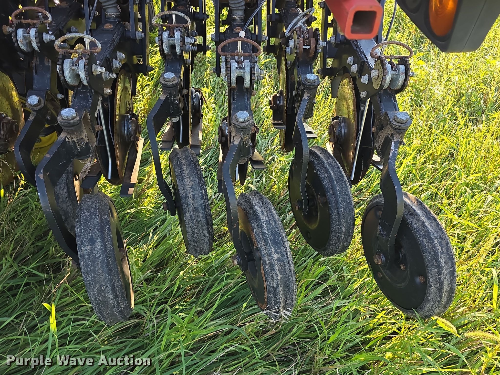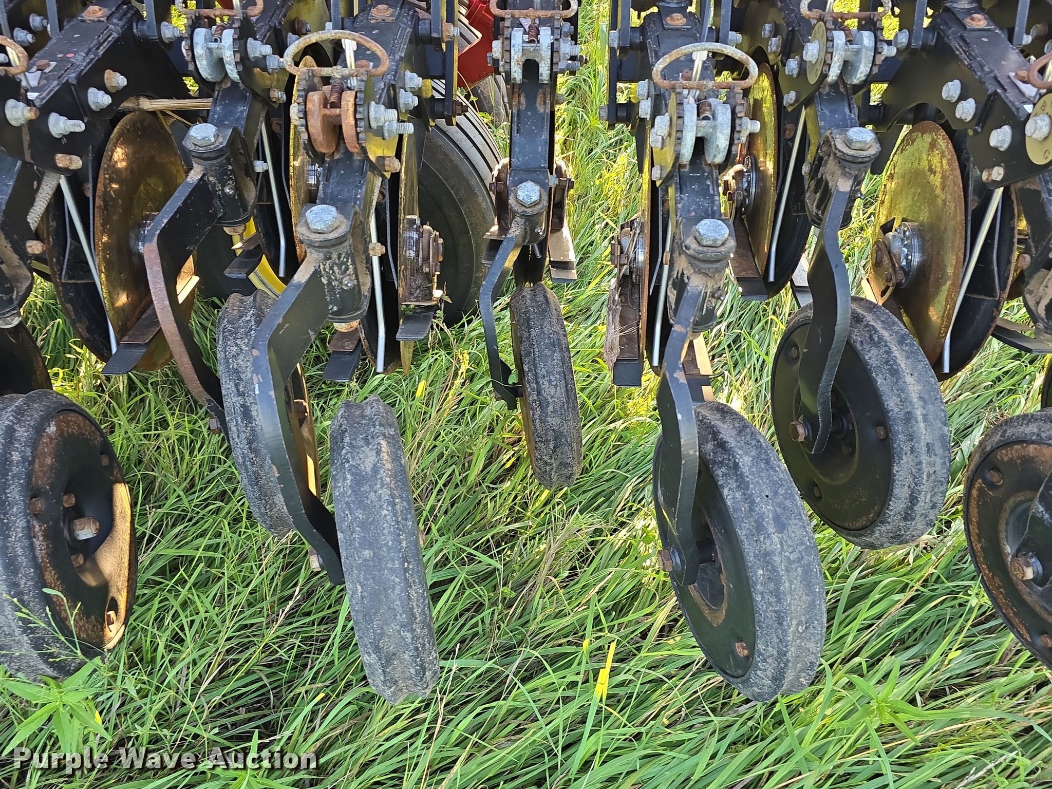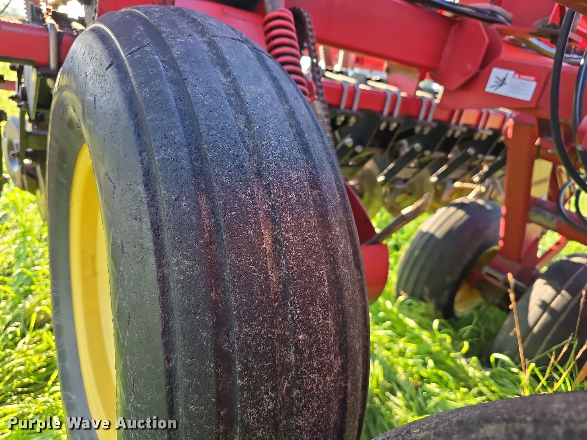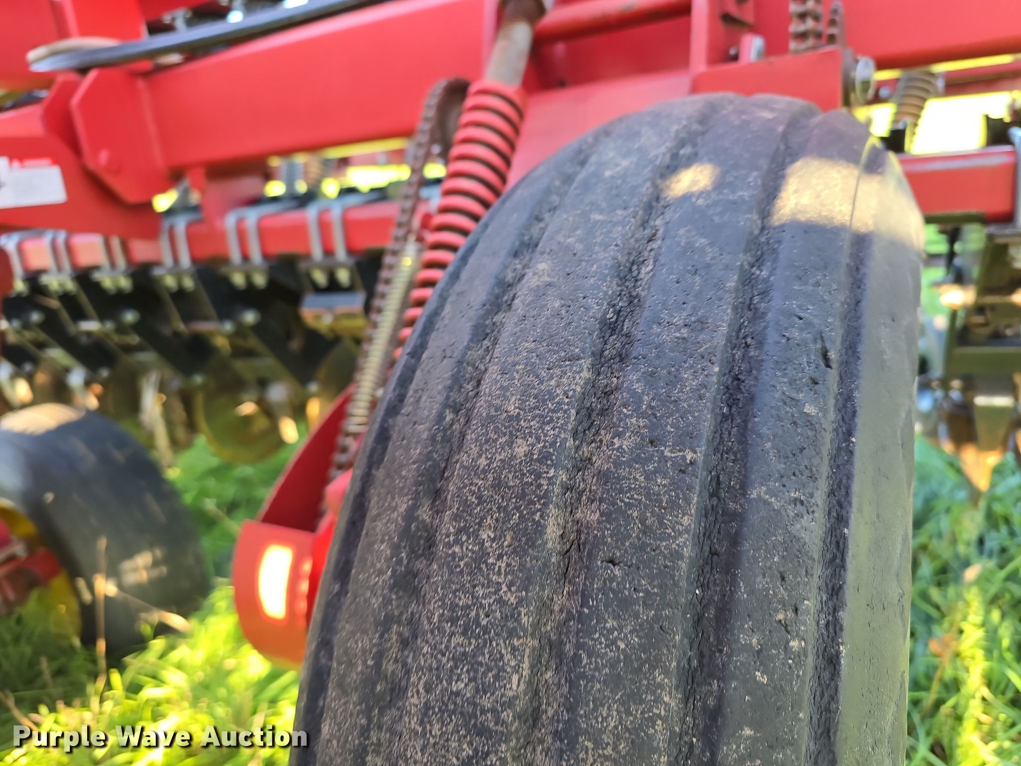 Sunflower 9421-25 grain drill. Width: 25', Row units: 40, Row spacing: 7.5", Serial: 09421B20010007. Features Frame Marker arm, Fold type: Front, Seed delivery Bulk fill system, Row units Meter drive: Ground, Down pressure: Spring, Disk openers: Double, Gauge wheels: Single, Closing system: Single Type: Rubber.. Tires Transport tire size: 11L-15S Quantity: 4, Drive/ outside tire size: 9.5L-15SL Quantity: 6. Notes Marker arm issues, hydraulic leak. Superior, NE 68978