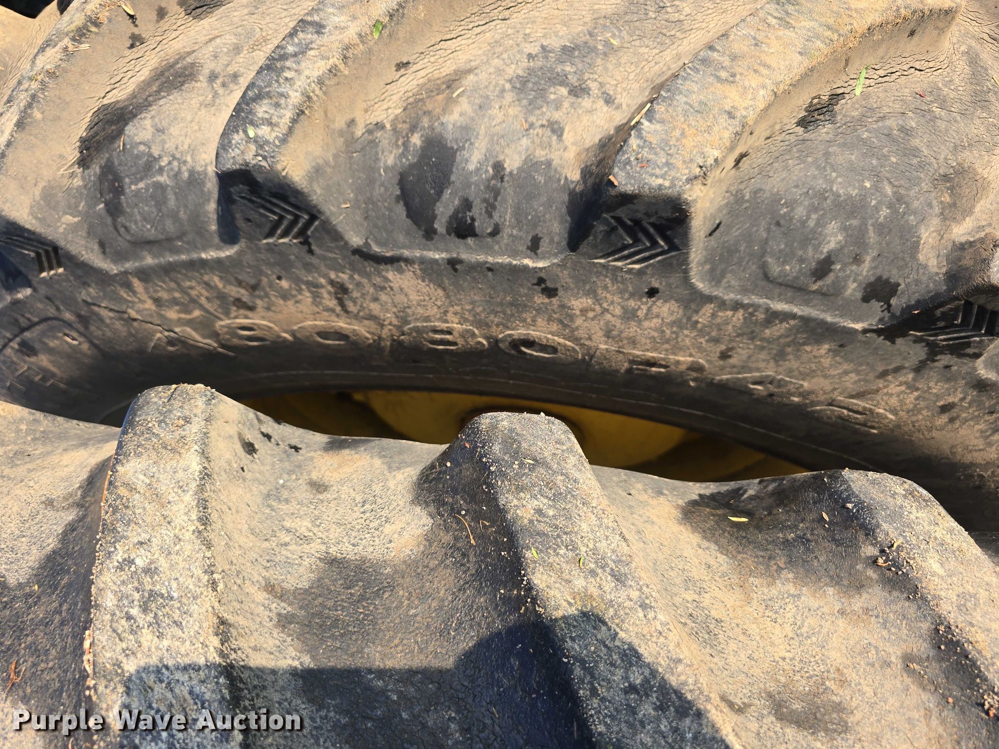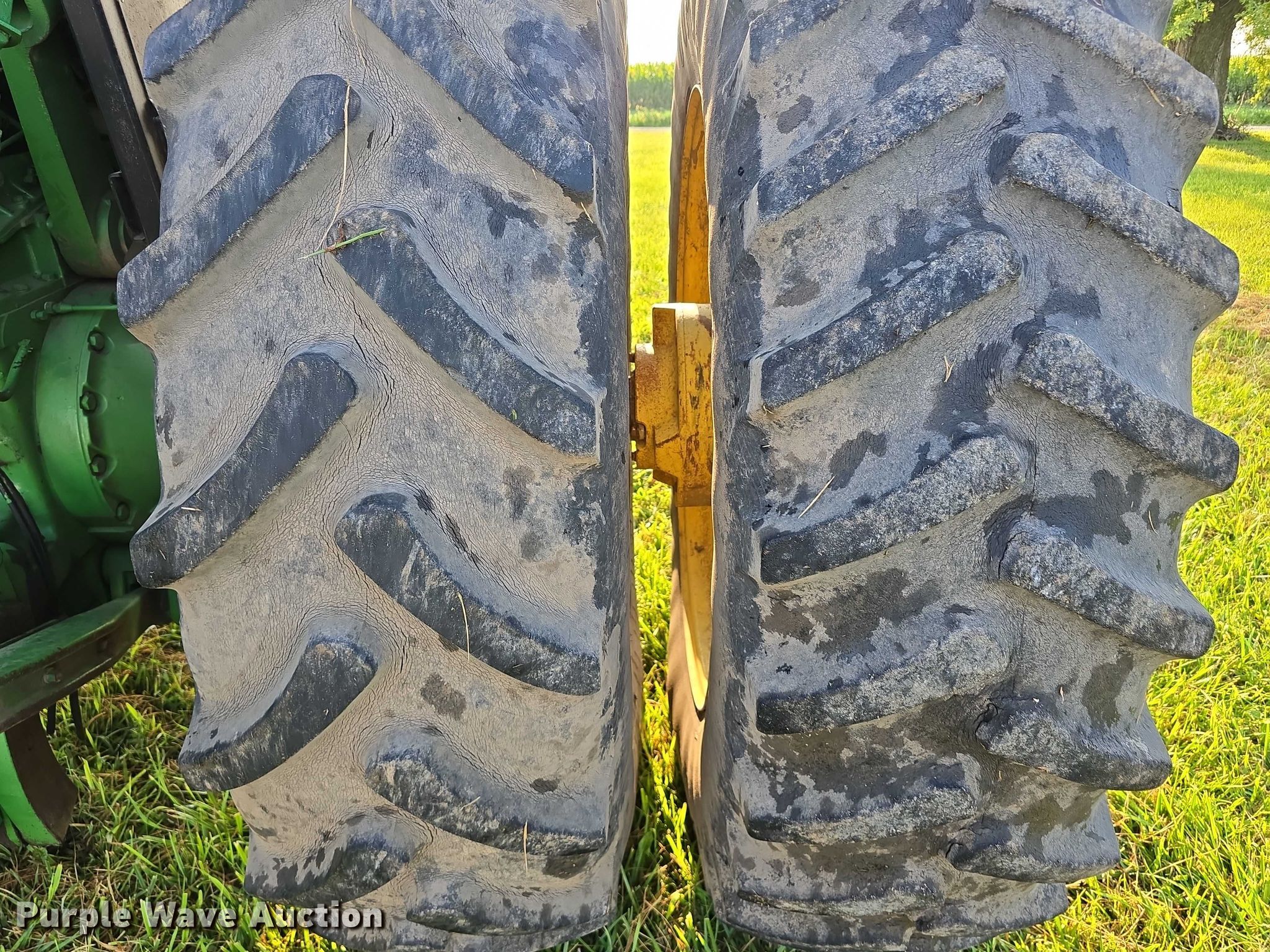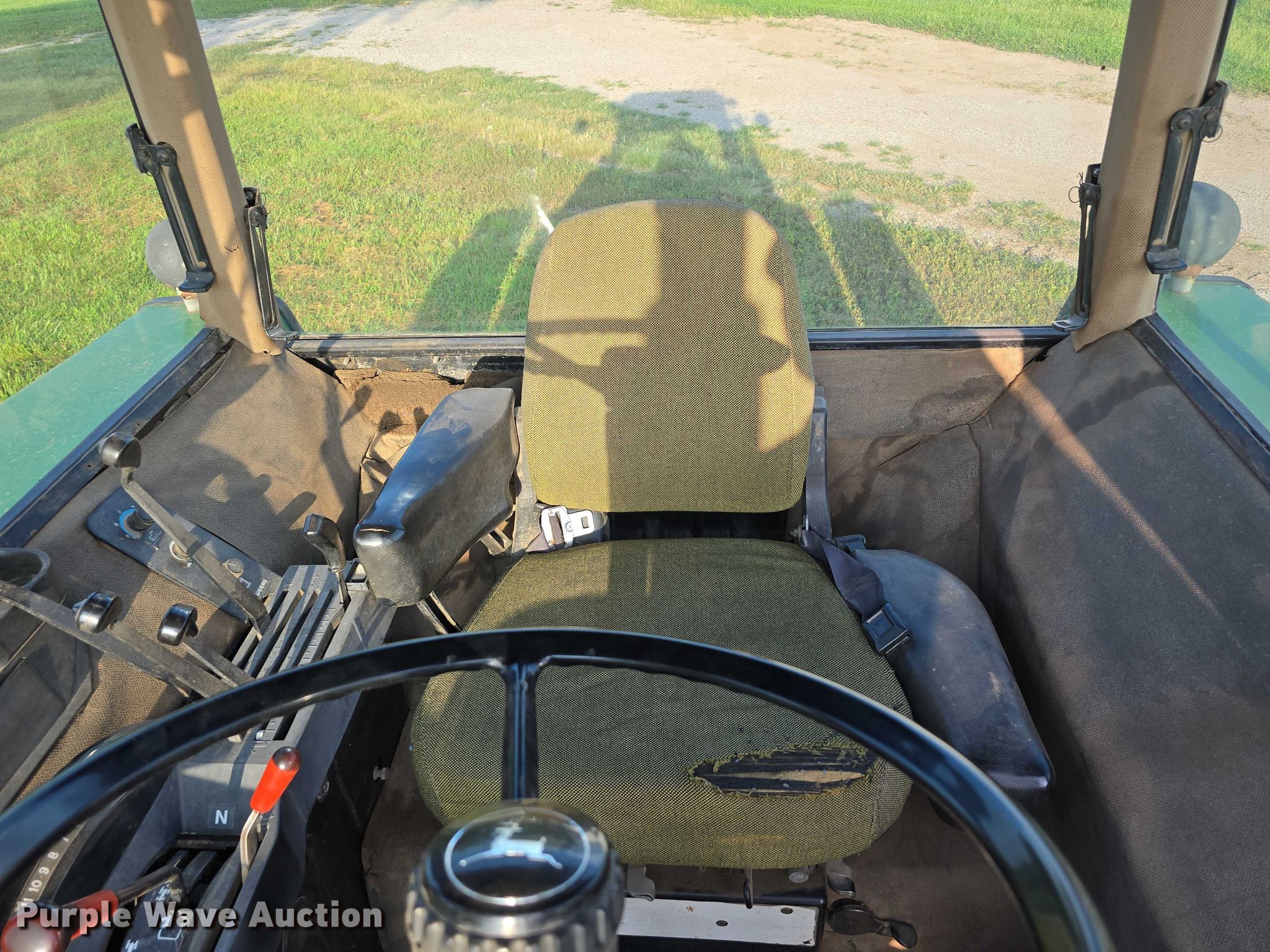 1990 John Deere 4755 MFWD tractor. Hours: 7,680 on meter, Actual hours unknown, Serial: RW4755P003580. Engine John Deere, Cylinders: 6, Fuel type: Diesel. Transmission Powershift, 15F - 4R, Differential lock. Operators station AC, Heat. Features PTO: 1000, Three point Top link, Quick attach, Seven pin outlet, Hydraulic remote sets Rear: 4. Tires Front: 380/85R30, Rear: 480/80R42, Wheel weights: 2, Duals. Notes Hour meter replaced at approx. 7,000 hours, Non-operational AC. View repairs. Vonderschmidt Farms. Robinson, KS 66532