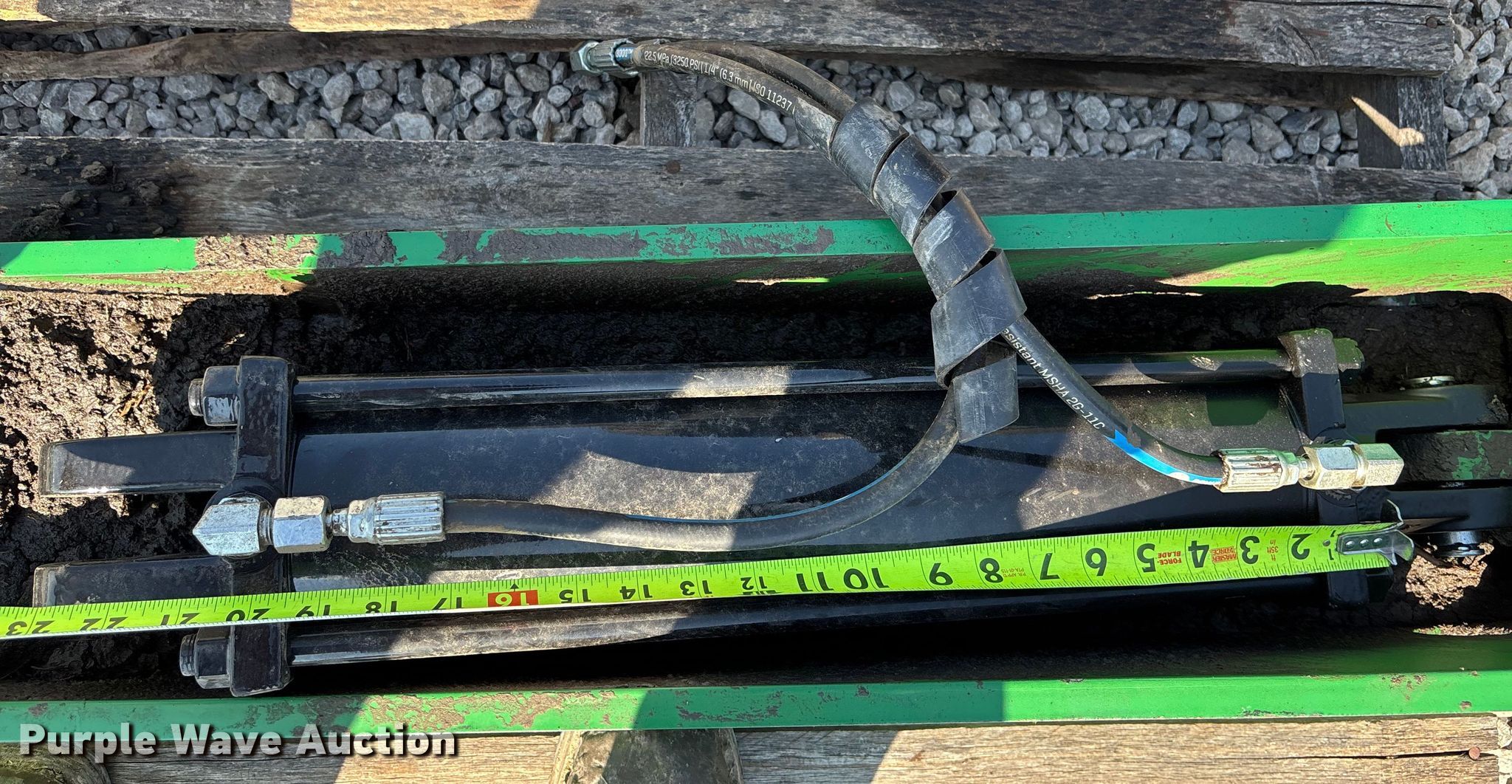 Purple Wave is selling a used Planter or Seeder Attach. in Kansas. This item is a Hydraulic jack with the following: Cylinder: 20", Hoses included, Removed from a Great Plains box drill