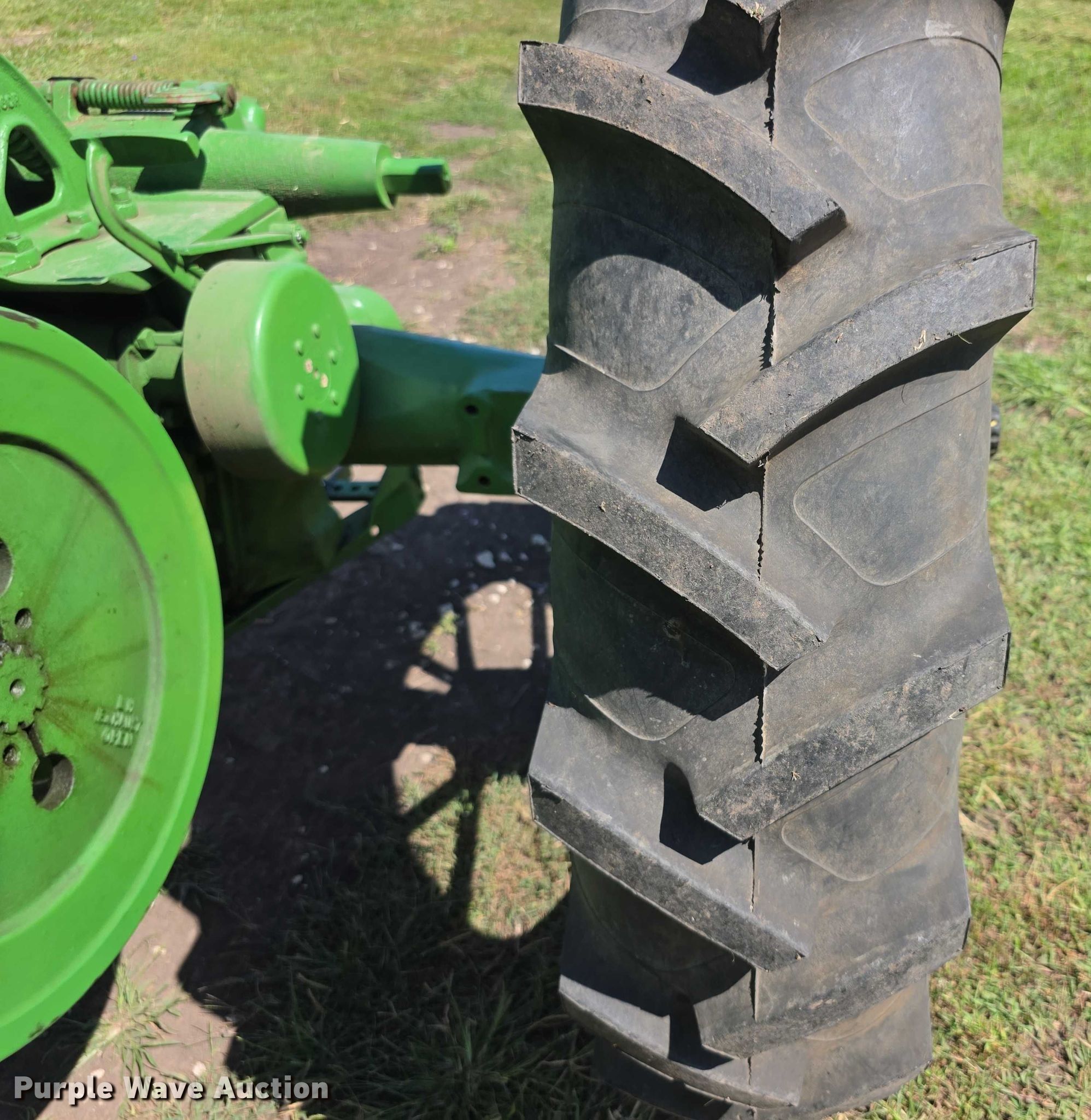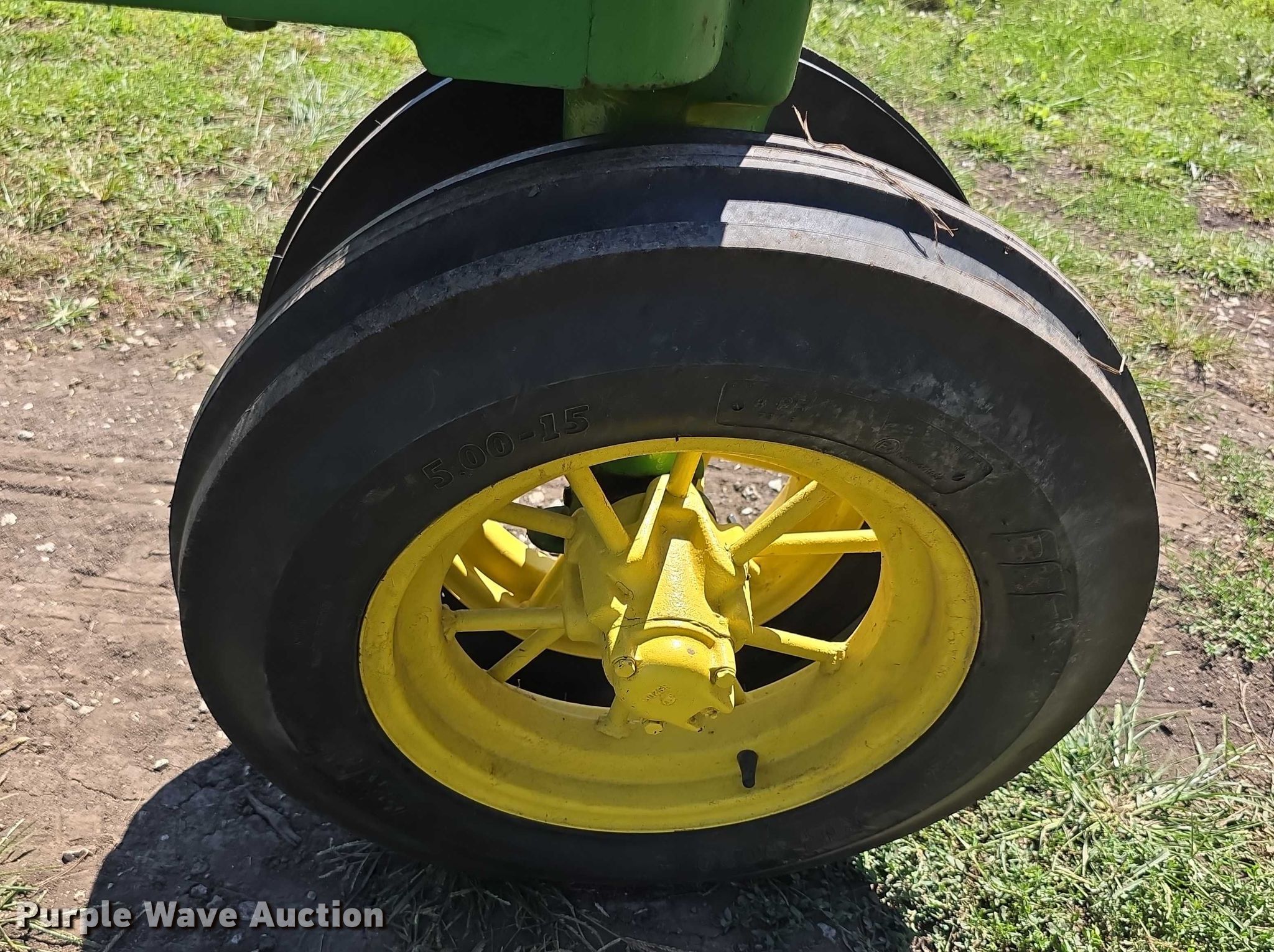 John Deere B tractor. Serial: PLB50963. Engine John Deere, Cylinders: 2, Fuel type: Gas. Transmission Manual, 6F - 1R. Features PTO: 540. Tires Front: 5.00-15, Rear: 11.2-38. Maple Hill, KS 66507
