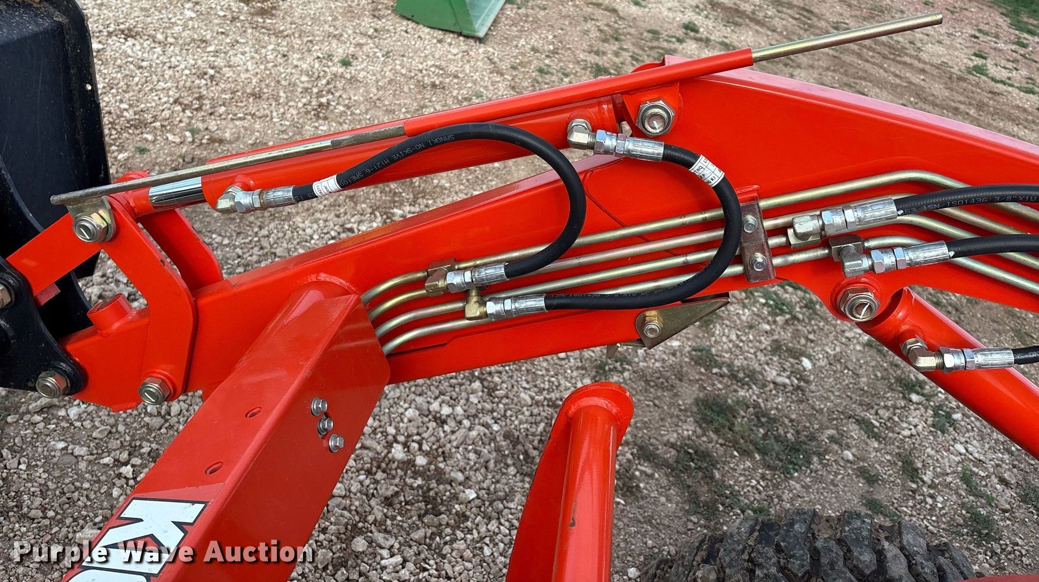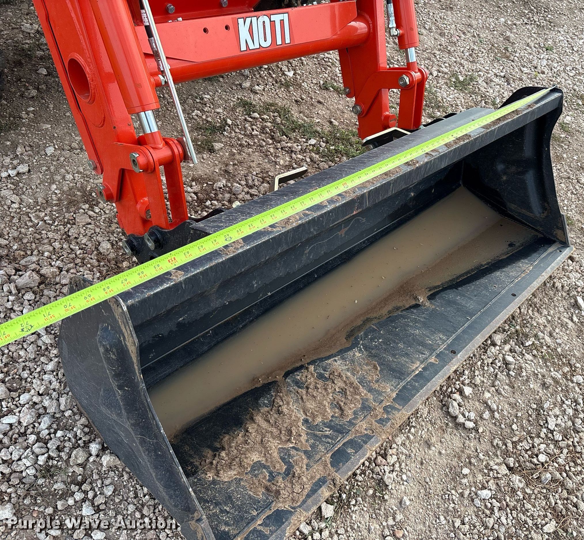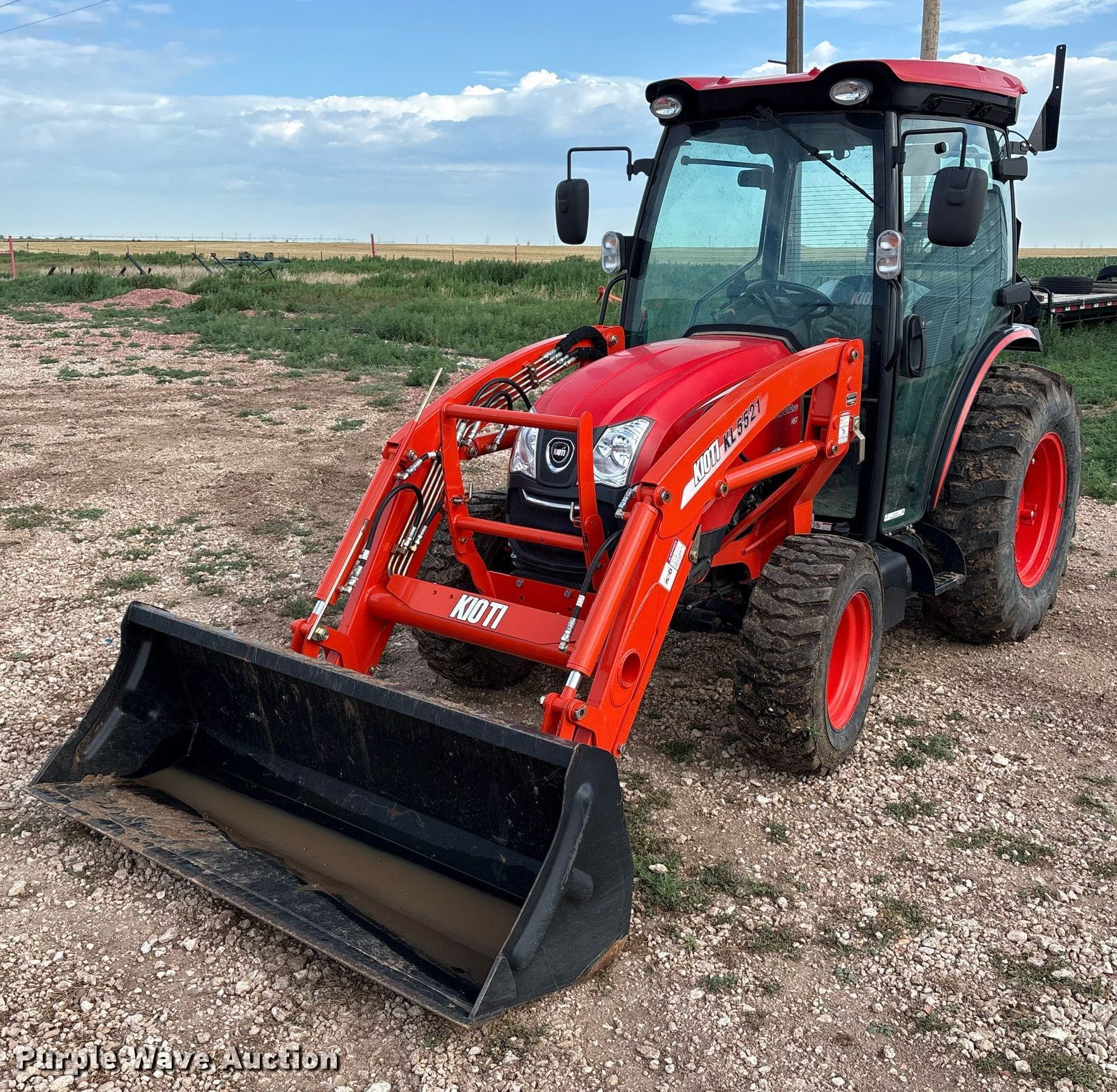 2022 Kioti DK6010 SE MFWD tractor. Hours: 111 on meter, Serial: YFF200165. Engine Cylinders: 4, Fuel type: Diesel, HP: 57. Transmission Hydrostatic, 3F - 3R, Differential lock. Operators station AC, Heat. Features PTO: 540, Three point Top link, Hydraulic remote sets Rear: 1, Loader Kioti KL5521, Controls: Joystick, Bucket Width: 68".. Tires Front: 10-16.5, Rear: 14.9-24. Impavid truck lines. Dumas, TX 79029