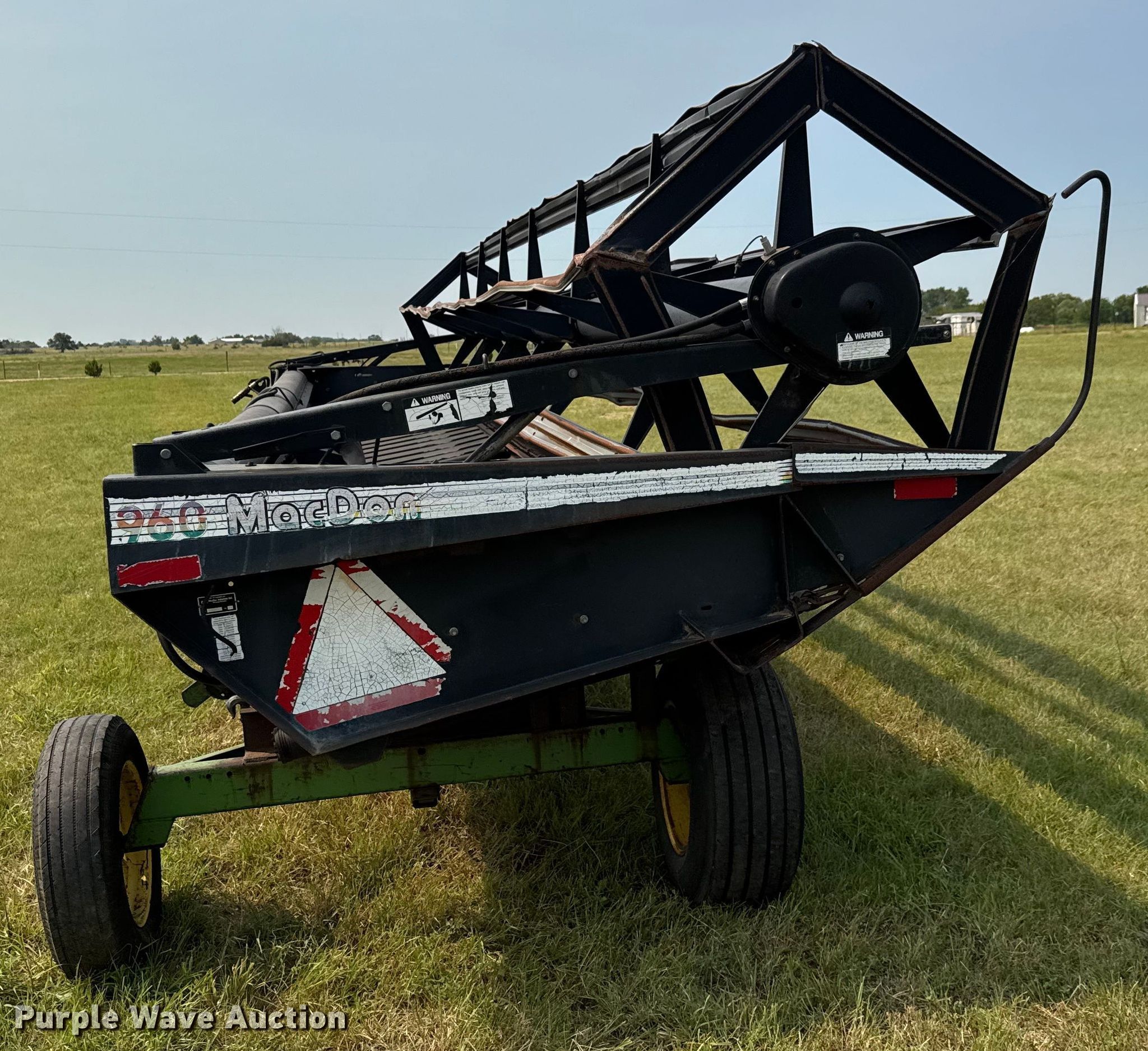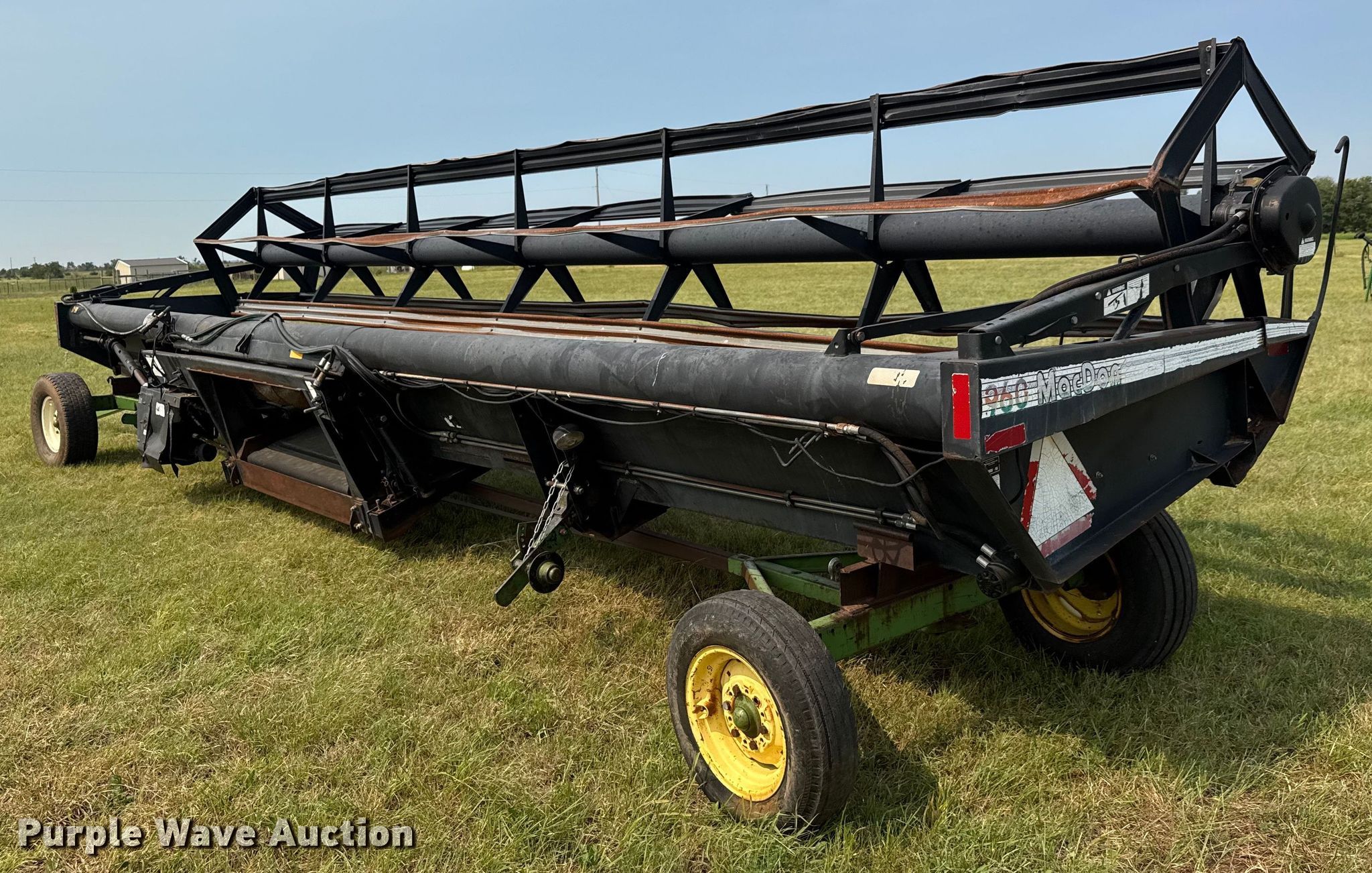 Purple Wave is selling a used Platform or Stripper Head in Kansas. This item is a 1993 MacDon 960 draper head with the following: Width: 30', Reel: Bat, Hydraulic reel height control, Skid plates: Steel, Drivelines: Single, Width: 30'