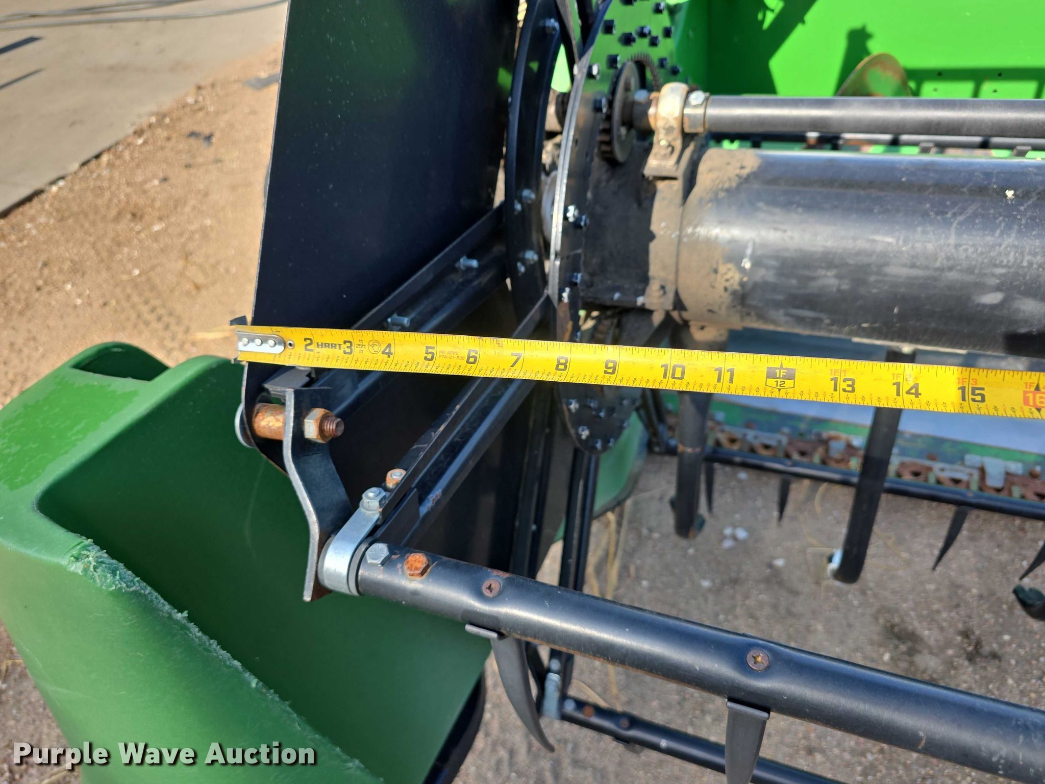 John Deere 930F flex head. Serial: H00930F687572. Features Width: 30', Reel: Finger Hydraulic fore/aft, Hydraulic reel height control, Skid plates: Poly, Single point coupler, Drivelines: Single. Notes PTO half shaft missing, Frame bent at connection point. Stromsburg, NE 68666