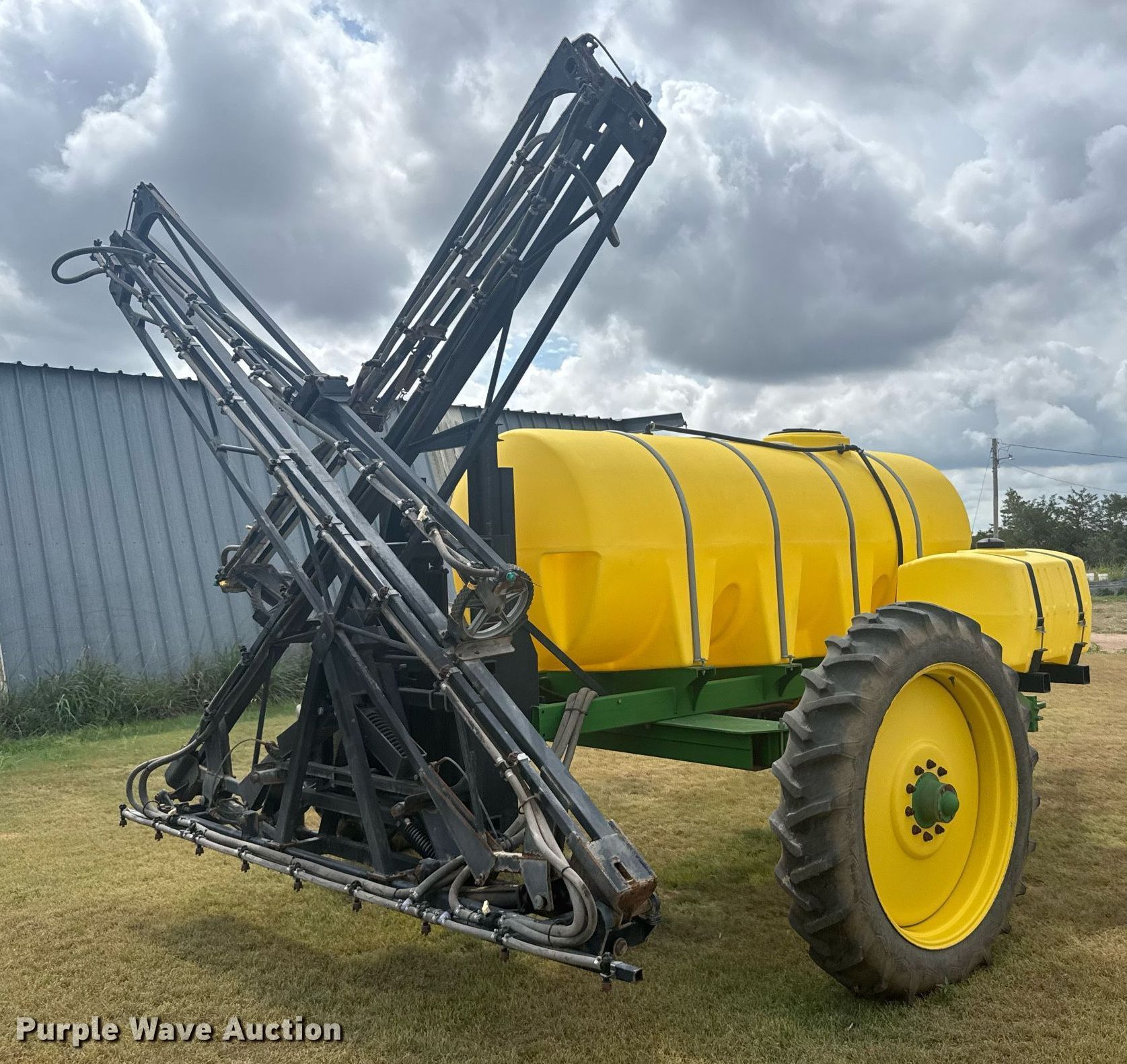Schaben sprayer trailer. Features. Solution tank Capacity: 1,000 gallons, Type: Poly, Chemical eductor Type: Poly, Rinse tank Capacity: 100 gallons, Boom Width: 60', Sections: 5, Hydraulic fold, Hydraulic height control, Nozzles Spacing: 18", Nozzle bodies: Single, Fence row nozzles, Electronics Spray controls Teejet 854.. Tires Size: 12.4-42, Row crop tires. C&K Cattle LLC. Dresden, KS 67635
