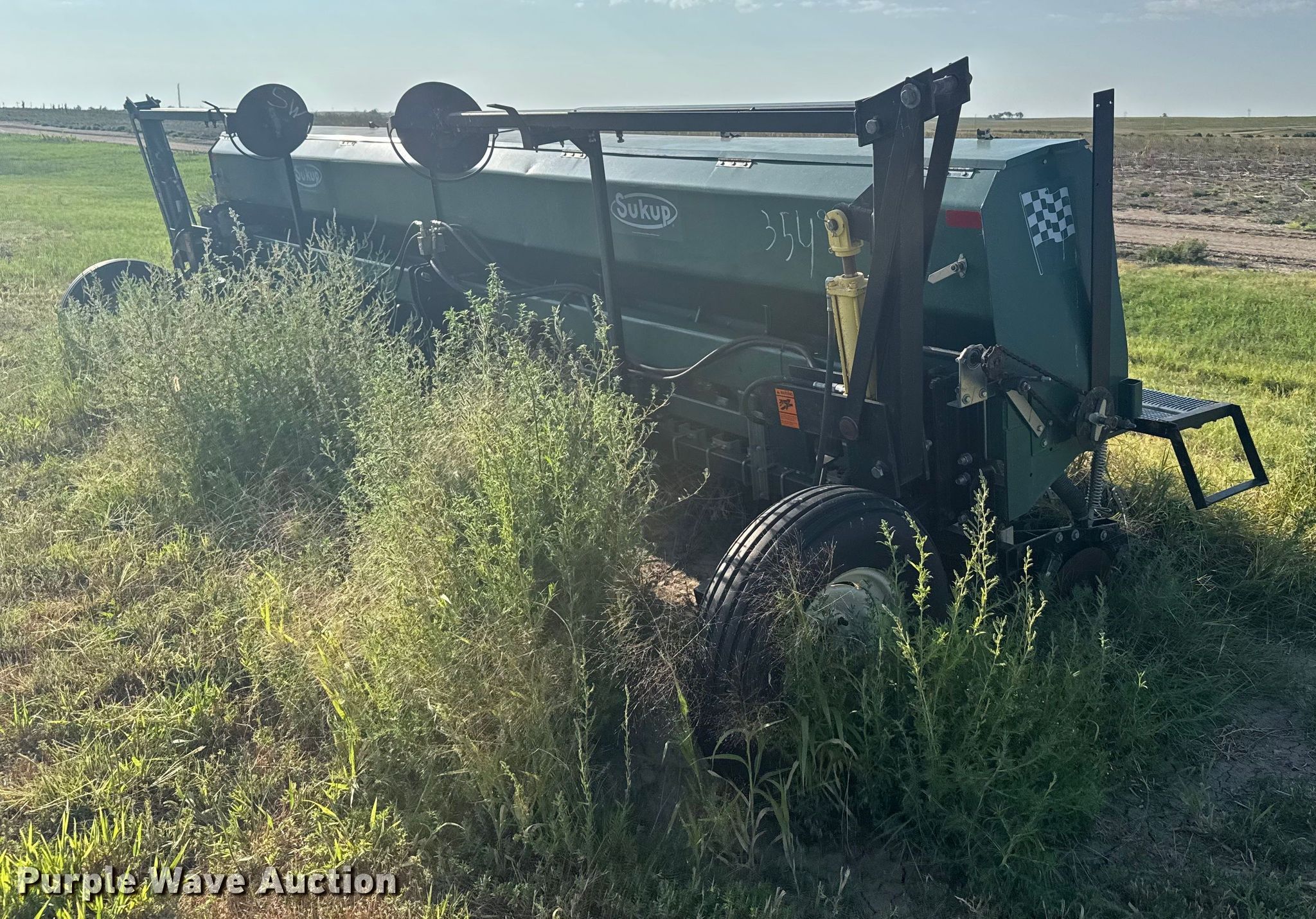 Marliss grain drill. Width: 20', Row units: 32, Row spacing: 7". Features Frame Hitch: Three point, Marker arm, Seed delivery Bulk fill system, Row units Meter drive: Ground, Down pressure: Spring, Disk openers: Double, Gauge wheels: Single, Type: Rubber, Acres: 4,404 on meter. Tires Transport tire size: 9.5-15. Ness City, KS 67560