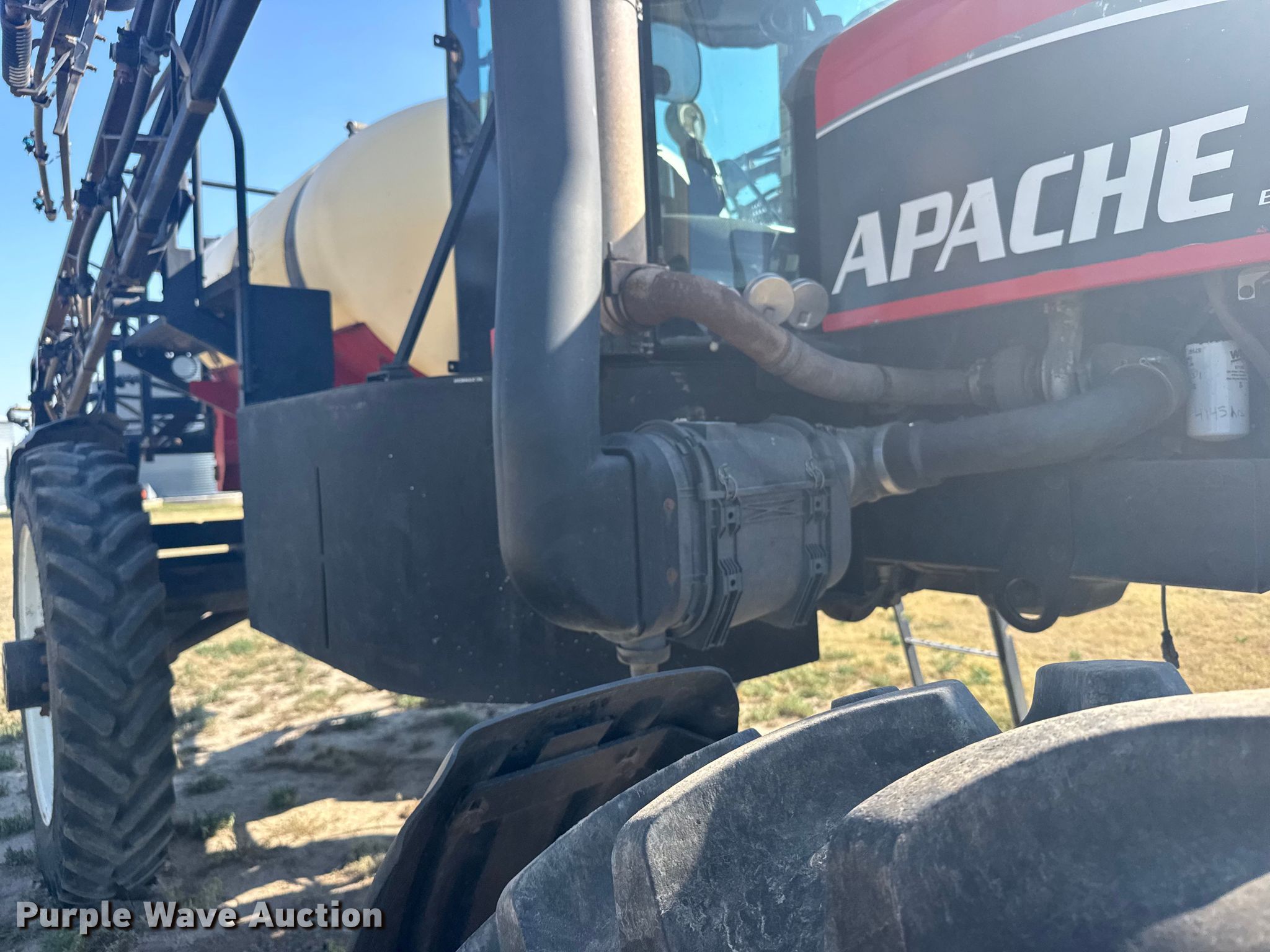 2010 Apache AS1010 sprayer. Engine hours: 4,153 on meter, Serial: 9100350. Engine Cylinders: 6, Fuel type: Diesel. Transmission Hydrostatic. Operators station AC, Heat. Features Hydraulic ladder, Solution tank Capacity: 1,000 gallons, Type: Poly, Chemical eductor Type: Poly, Rinse tank, Boom Width: 100', Sections: 5, Boom breakaway, Hydraulic boom fold, Hydraulic height control, Automatic height control, Nozzle Spacing: 30", Nozzle bodies: 3-way, Electronics GPS monitor Raven, GPS receiver Raven, Spray controls Raven, Auto steer. Tires Front: 380/80R38, Rear: 380/90R46, Row crop tires. Notes Windshield chipped or cracked. Ness City, KS 67560